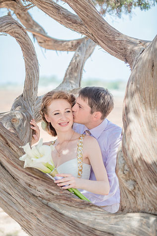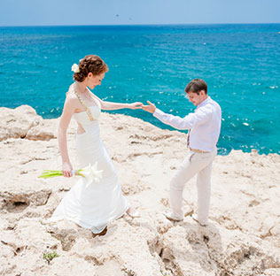Сохранить 1 При нажатии на кнопку,статья сохранится в разделе"Закладки" в личном кабинете. Поделиться: Сохранить 1 При нажатии на кнопку,статья сохранится в разделе"Закладки" в личном кабинете. Свадьбы Надежда и Альберт: камерная свадьба на Кипре 11 января 2014 5945 0 Стиль Современная Цвет Белый, Золотой Сезон Лето Место Торжественный зал, Улица Стиль Современная Цвет Белый, Золотой Сезон Лето Место Торжественный зал, Улица Надежда и Альберт с самого начала решили, что у них будет небольшая выездная свадьба. Сначала они собирались уехать только вдвоём, но в итоге в ним всё-таки присоединились их сёстры и близкие друзья. Мы задумались о том, чтобы пожениться за границей, еще до того, как начали обсуждать нашу свадьбу. Просто пришли к мысли, что было бы здорово уехать ото всех и устроить только наш праздник. Плюс экономия: два мероприятия — регистрация и свадебное путешествие — по цене одного:) Всего на свадьбу мы потратили примерно 250 тысяч рублей. Образ невесты: длинное, облегающее платье в греческом стиле с золотистыми цепочками в качестве бретелей. Платье Надежда заказывала в Интернет-магазине. Образ жениха: белая рубашка, светло-бежевые брюки, галстук с коричневыми и бежевыми полосками. Букет невесты: белые каллы. Кипр был выбран молодожёнами по многим причинам: красивая природа, низкие, по сравнению с другими странами, цены на проведение церемонии бракосочетания, возможность въезда без оформления Шенгенской визы. Подбробнее почитать о том, какие документы вам необходимо оформить для организации свадьбы зы границей, вы можете почитать в нашей статье: «Свадьба за границей: советы и предостережения». Организацию свадьбы и подбор исполнителей (визажист, парикмахер, фотограф) Надежда и Альберт полностью поручили свадебному агентству. Молодожёны только высказывали свои пожелания. Церемония бракосочетания прошла в мэрии. Можно было организовать регистрацию, например, на пляже, но это обошлось бы дороже. А вот на фотосессии молодожёны смогли полностью насладиться великолепием пляжных видов Кипра. Все прошло чудесно, но очень быстро:) Мы с Альбертом счастливы, что наш праздник был таким, как мы хотели. Сохранить 0 При нажатии на кнопку,фото сохранится в коллекциив личном кабинете. Показать описание Сохранить 0 При нажатии на кнопку,фото сохранится в коллекциив личном кабинете. Показать описание Сохранить 0 При нажатии на кнопку,фото сохранится в коллекциив личном кабинете. Показать описание Сохранить 0 При нажатии на кнопку,фото сохранится в коллекциив личном кабинете. Показать описание Сохранить 0 При нажатии на кнопку,фото сохранится в коллекциив личном кабинете. Показать описание Сохранить 1 При нажатии на кнопку,фото сохранится в коллекциив личном кабинете. Показать описание Сохранить 0 При нажатии на кнопку,фото сохранится в коллекциив личном кабинете. Показать описание Сохранить 1 При нажатии на кнопку,фото сохранится в коллекциив личном кабинете. Показать описание Сохранить 0 При нажатии на кнопку,фото сохранится в коллекциив личном кабинете. Показать описание Сохранить 0 При нажатии на кнопку,фото сохранится в коллекциив личном кабинете. Показать описание Сохранить 0 При нажатии на кнопку,фото сохранится в коллекциив личном кабинете. Показать описание Сохранить 0 При нажатии на кнопку,фото сохранится в коллекциив личном к