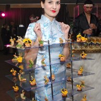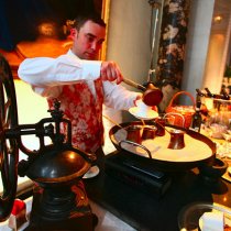 Сохранить 1 При нажатии на кнопку,статья сохранится в разделе"Закладки" в личном кабинете. Поделиться: Сохранить 1 При нажатии на кнопку,статья сохранится в разделе"Закладки" в личном кабинете. Организация свадьбы Необычное свадебное шоу: кулинарный театр 02 июня 2014 9249 0 Вкусная еда — это одно из удовольствий, доступных каждому. А национальная особенность свадеб в России заключается в непременном шикарном банкете, цель которого — вкусно накормить и напоить гостей. Как говорит старшее поколение, «чтобы никто не ушёл голодным». Но современная индустрия развлечений делает настоящее шоу даже из вполне тривиального процесса приготовления пищи и её дегустации. Если вы хотите удивить своих гостей интересными блюдами и вовлечь их в небольшое кулинарное представление, то кулинарный театр «Teatro del Gusto» — это то, что вам нужно. Основатель кулинарного театра — Феликс Шультесс — родился в Баварии, где провёл детство и юность, а потом вместе с семьёй переехал в Россию. Здесь Феликс окончил ВГИК, попутно развивая свою страсть к кулинарии. Со временем родилась идея совместить эти два увлечения и сделать шоу из процесса приготовления еды. Испробовав такой вид развлечения на своих друзьях, Феликс основал собственный кулинарный театр, который набирает популярность и даже ездит с гастролями. Создавая кулинарное театральное представление, профессионалы «Teatro del Gusto» стараются сделать что-то оригинальное, подходящее именно к данному торжеству по тематике и стилю. Для них процесс приготовления блюд — это, прежде всего, творчество, поэтому шаблонов в общем-то нет. Есть популярные программы, которые можно трансформировать по желанию конкретной пары. Вот некоторые из них. Приготовление необычных блюд на открытой кухне и их дальнейшая дегустация Вы когда-нибудь видели, как жарят каштаны? Или делают немецкие колбаски в натуральной оболочке? У ваших гостей появится такая возможность, если на вашем торжестве будет одна из программ по приготовлению этих и других, не менее аппетитных блюд: свежевыпеченного хлеба, булочек и пиццы, блюд, приготовленных в воке, конфет ручной работы и многих других. Сезонные представления Некоторые блюда лучше есть в определённое время года, тогда от них получишь наибольшее удовольствие. Для вашей летней свадьбы как нельзя лучше подойдёт «Бар изысканных сорбетов», где мастера на ваших глазах готовят изысканное мороженое, а зимой гостей согреет горячий пунш — программа «Пунш воспламенённый» создана специально для мероприятий, проводимых в холодное время года. Интересная подача Закуски и напитки на свадьбе можно подать очень оригинально, если они будут не просто стоять на столах, а выступят в качестве арт-объекта. К примеру, «Defile de Canape» — это красивые девушки, разносящие красивые канапе на специальных стойках, являющихся частью их костюмов. А «Фруктовая нимфа» сразит гостей своей гостеприимностью, предлагая отведать фрукты и ягоды, которыми усыпан целый остров — владения нимфы. Для мужчин Уверены, мужчинам будет интересен процесс приготовления алкогольных настоек при помощи самого настоящего самогонного аппарата. У этого редкого оборудования внушительный вид и приличный размер, а процесс приготовления алкоголя разложен по полочкам и очень нагляден. Не менее интересный мастер-класс — изготовление кубинских сигар,