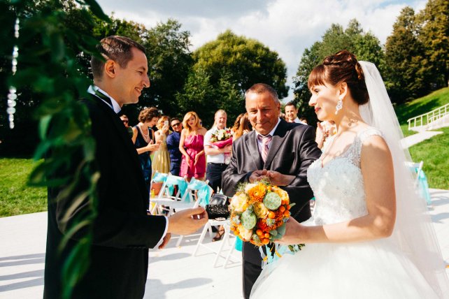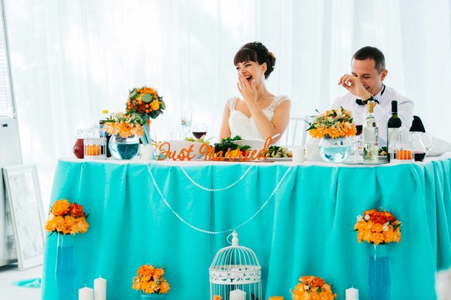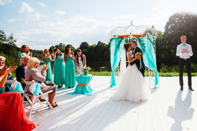 Сохранить 5 При нажатии на кнопку,статья сохранится в разделе"Закладки" в личном кабинете. Поделиться: Сохранить 5 При нажатии на кнопку,статья сохранится в разделе"Закладки" в личном кабинете. Свадьбы Лазурно-оранжевая свадьба Сергея и Кати 18 февраля 2016 4470 0 Цвет Бирюзовый Стиль Современная Сезон Лето Место Москва Цвет Бирюзовый Стиль Современная Сезон Лето Место Москва Фотограф:Анна Миронова Ведущий:Андрей Пределин Флорист:Vera Markova Ресторан:Усадьба Валуево , шатер «У Грота» Как познакомились молодожены, и как было сделано предложение? Почему выбрали именно эту дату для свадьбы?Молодожены познакомились в баре, это была любовь с первого взгляда. Они встретились в баре, познакомились и простились, и в тот же вечер, не договариваясь, встретились в ночном клубе и поняли, что это судьба.Почему выбрали такой стиль свадьбы и цветовую палитру?Сергею и Кате очень хотелось больше яркости и элегантности на свадьбе, поэтому в палитру вошли 2 основных оттенка — оранжевый и бирюзовый.Самый любимый/значимый/интересный момент вашей свадьбыУтро невесты проходило в гостинице Novotel Moscow City, которое прошло очень размеренно и спокойно. А самым запоминающимся моментом стала выездная регистрация: когда ребята обменивались клятвами, плакали все, включая всю съемочную группу и регистратора. Катя и Сергей обменялись словами любви, подчеркивая те стороны друг друга, которые они больше всего ценят.Весь банкет пролетел на едином дыхании, благодаря искрометному юмору ведущего и прекрасному настроению гостей.Что для свадьбы было сделано своими руками?Ребята самостоятельно выбирали подрядчиков. А своими руками было сделано несколько фотозон (качели и гирлянды из сердечек).Что было самое сложное при организации?Самое сложное было определиться с локацией. Но когда молодожены побывали в усадьбе Валуево, поняли, что это то самое место, где они хотели бы провести и этот значимый день.Совет невестамСвадьба проходила в воскресение, и это позволило выбрать самых лучших свадебных специалистов, понравившийся ресторан и плюс сэкономить некоторый процент бюджета. Выбирайте для своей свадьбы любой день, ведь самые родные и близкие все равно смогут быть с вами! Сохранить 0 При нажатии на кнопку,фото сохранится в коллекциив личном кабинете. Анна Миронова Фотографы Сохранить 0 При нажатии на кнопку,фото сохранится в коллекциив личном кабинете. Лазурно-оранжевая свадьба Сергея и Кати Показать описание Фотограф: Анна Миронова Ведущий: Андрей Пределин Флорист: Vera Markova Ресторан: Усадьба Валуево , шатер «У Грота» Сохранить 0 При нажатии на кнопку,фото сохранится в коллекциив личном кабинете. Анна Миронова Фотографы Сохранить 0 При нажатии на кнопку,фото сохранится в коллекциив личном кабинете. Лазурно-оранжевая свадьба Сергея и Кати Показать описание Фотограф: Анна Миронова Ведущий: Андрей Пределин Флорист: Vera Markova Ресторан: Усадьба Валуево , шатер «У Грота» Сохранить 0 При нажатии на кнопку,фото сохранится в коллекциив личном кабинете. Анна Миронова Фотографы Сохранить 0 При нажатии на кнопку,фото сохранится в коллекциив личном кабинете. Лазурно-оранжевая свадьба Сергея и Кати Показать описание Фотограф: Анна Миронова Ведущий: Андрей Пределин Флорист: Vera Markova Ресторан: Усадьба Валуево , шатер «У Грота» Сохранить 1 При нажатии на кнопку,фото сохранится в коллекциив личн