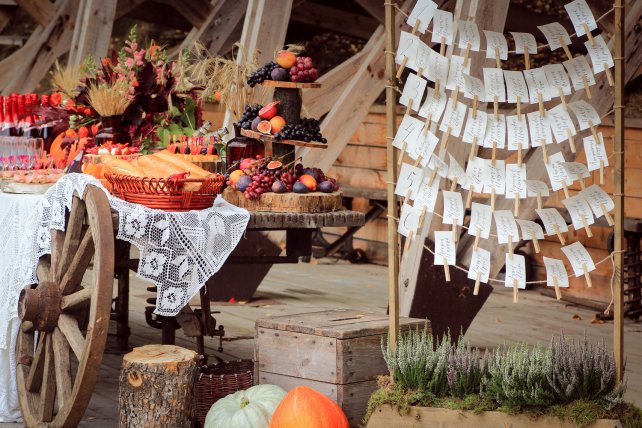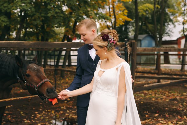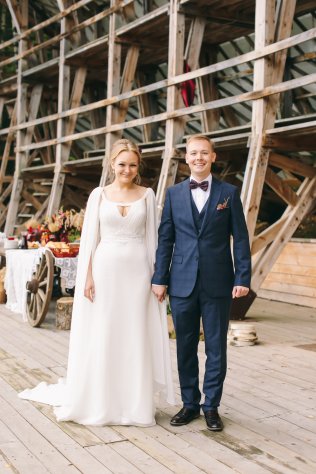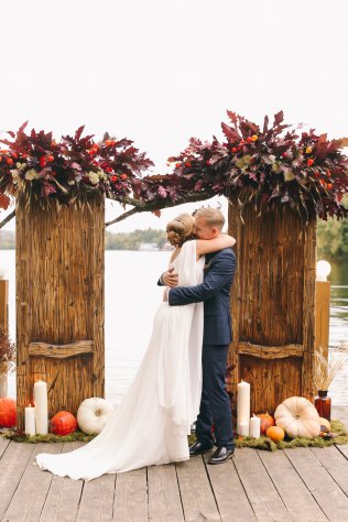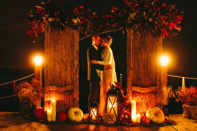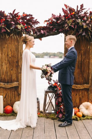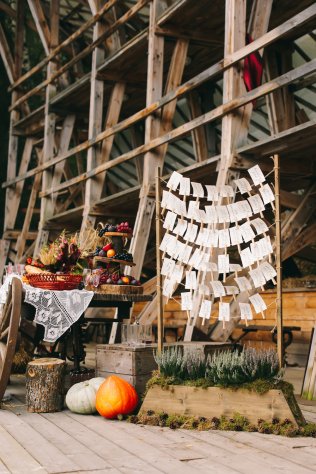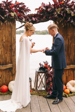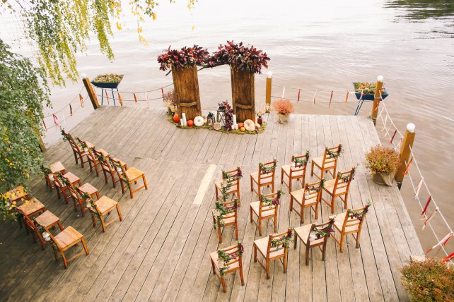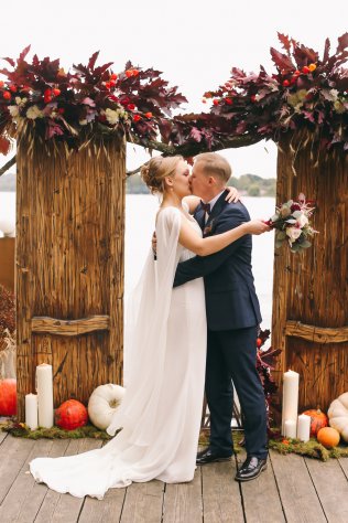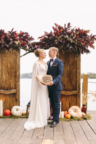 Сохранить 11 При нажатии на кнопку,статья сохранится в разделе"Закладки" в личном кабинете. Поделиться: Сохранить 11 При нажатии на кнопку,статья сохранится в разделе"Закладки" в личном кабинете. Свадьбы Осенняя свадьба Леши и Тани в стиле рустик у воды 26 мая 2016 16507 2 Цвет Бордовый Стиль Рустик Сезон Осень Место Мытищи Цвет Бордовый Стиль Рустик Сезон Осень Место Мытищи Декор:BOTANICA studio Флорист:Елена Русланова Свадебный организатор:CandyDandy Wedding Фотограф:Алексей Чижик Ведущий:Алексей Сухарев Образ невесты:Татьяна Донина Совершенно уникальное и атмосферное место на берегу Пироговского водохранилища очаровало Алексея и Татьяну с первого взгляда. Баржа, понтон, дом, хижина, ресторан на воде… Точное название этому месту мы не подобрали до сих пор. Это целая мини-деревенька, уютный самобытный маленький мирок. Как нам хотелось, чтобы оно заиграло по-новому, вобрав в себя все богатство осенних красок и умиротворение природы этой поры! Тему урожая и деревенского уюта мы дополнили самой модной благородной марсалой под стать жениху и невесте. Тыквы, сено, теплый свет, кленовые листья, калина, георгины, физалис, дерево, пшеница — наши маленькие кирпичики в создании элегантной осенней сказки на воде в этом зачарованном и необычном месте. В связи с его большой территорией указатели были расставлены по всей площади и обеспечили ясное и понятное зонирование. Ни один гость не заблудился, чему мы были очень рады. Хоть бабье лето мы ждали очень сильно, сентябрьский денек не обещал быть теплым, поэтому Леша и Таня решили подстраховаться и совершенно не зря. Все гости получили в подарок пледы с именными табличками, которые уже совсем вскоре использовали по назначению. Вопрос скрепления табличек и пледов Таня взяла на себя, купила пряжу, скрепки специальный дырокол и другие необходимые инструменты. Благодаря такому ответственному и трепетному подходу пледы выглядели очень красиво и эстетично. Еще одной удачной и оригинальной идеей, оцененной гостями, стали лимонады, размещенные в тыквах.Зона выездной регистрации расположилась на пирсе с красивым видом на Пироговское водохранилище. Время от времени гости наблюдали неторопливо проплывавшие мимо яхты. После проведения церемонии пирс превратился в зажигательный танцпол.Идея сделать фамильное дерево в качестве символа преемственности между поколениями и знака уважения к родителям, бабушкам и дедушкам появилась в процессе разработки концепции оформления свадьбы Леши и Тани. Результат получился трогательным и душевным. Сохранить 1 При нажатии на кнопку,фото сохранится в коллекциив личном кабинете. BOTANICA studio Декор свадьбы Сохранить 1 При нажатии на кнопку,фото сохранится в коллекциив личном кабинете. Осенняя свадьба Леши и Тани в стиле рустик у воды Показать описание Декор: BOTANICA studio Флорист: Елена Русланова Свадебный организатор: CandyDandy Wedding Фотограф: Алексей Чижик Ведущий: Алексей Сухарев Образ невесты: Татьяна Донина Сохранить 0 При нажатии на кнопку,фото сохранится в коллекциив личном кабинете. BOTANICA studio Декор свадьбы Сохранить 0 При нажатии на кнопку,фото сохранится в коллекциив личном кабинете. Осенняя свадьба Леши и Тани в стиле рустик у воды Показать описание Декор: BOTANICA studio Флорист: Елена Русланова Свадебный организатор: CandyDandy Wedding Фотограф: Алексей Чижик Ведущий: Алексей Сухарев Образ невест