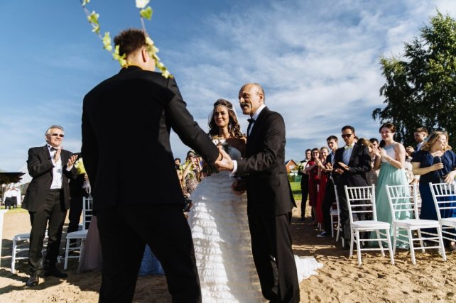 Сохранить 5 При нажатии на кнопку,статья сохранится в разделе"Закладки" в личном кабинете. Поделиться: Сохранить 5 При нажатии на кнопку,статья сохранится в разделе"Закладки" в личном кабинете. Свадьбы Самая «Абишная» свадьба на песке: Рафаэль и Анна 28 июня 2016 4384 0 Цвет Бежевый Стиль Современная Сезон Лето Место Москва Цвет Бежевый Стиль Современная Сезон Лето Место Москва Свадебный организатор:Feerique Event & Emotions Концепция:Feerique Event & Emotions Декор:Feerique Event & Emotions Флорист:Feerique Event & Emotions Фотограф:Игорь Цаплин Видеооператор:3avideo Ведущий:Андрей Пределин Развлечения (фотобудки):The Box Другие:Therr Maitz Своими впечатлениями поделилась невеста Анна:«Мы познакомились настолько давно, что, кажется, это было в другой жизни. Мы не учились в одном институте, у нас не было общей компании, но все же звезды так сложились, что мы встретились. Это не была классическая история любви из серии — я увидела его, он увидел меня, и мы поняли, что созданы друг для друга. Моей первой мыслью, когда я увидела своего будущего мужа, была: «Господи, какой же «приторный» мальчик». Когда я узнала, что его зовут Рафаэль, картинка сложилась. «Руфинад» называли мы его с подругой между собой и смеялись.И все же мы стали встречаться, пронеслись 6 счастливых лет вместе. Когда ответы на вопросы близких «Ну скоро свадьба?» закончились, случилось самое важное событие в моей жизни. В качестве подарка на День святого Валентина Рафаэль сделал мне предложение.В тот день у меня было необъяснимое предчувствие, а интуиция меня раньше никогда не подводила. На праздничный день у нас была запланирована большая программа: полетать на тренажере «Боинга», нарисовать картину Ван Гога на 60-м этаже в «Москва-Сити», поужинать в ресторане Sixty на 62-м. Мой папа никогда не умел хранить секреты, и, когда я собиралась дома на наше с Рафаэлем свидание, он посмотрел на меня, загадочно улыбнулся и сказал: «Сегодня будет особенный день». Тут мои догадки и отпали — пришло четкое понимание, что меня ждет....Поздний вечер, мы садимся за столик в ресторане с потрясающим видом на Москву. В тот день открывали окна, и было невероятно атмосферно. Вместе с первым блюдом официант принес мне открытку, в которой было написано: «Эти 6 лет стали лучшими в моей жизни...». Следующая открытка была уже к тирамису: «Надеюсь и в твоей тоже! И я не хочу, чтобы это заканчивалось, поэтому съешь десерт». По сценарию, кольцо должно было лежать именно в нем. Рафаэль даже снял видео, на котором они совместно с Карло Греку (знаменитый итальянский шеф-повар. — прим. ред.) готовят вместе якобы этот тирамису и добавляют туда «секретный ингредиент». Но если бы я случайно съела кольцо или подавилась им, то красивая история превратилась бы в недорогую американскую комедию. Поэтому сразу после того, как я доела десерт, Рафаэль достал красивую синюю коробочку, в которой и лежало помолвочное кольцо.Описать свои эмоции, которые я испытывала в этот момент, сложно. Даже с учетом того, что я была к этому готова, внутри все перевернулось. Хотя нет, наверное, я не до конца осознавала, что это произойдет.Нашим главным условием при разработке свадебной концепции стал отказ от любых традиций и примет. Никаких караваев, соли, сахара, выкупа, голубей, и даже в загс мы сходили (именно сходили) за день до торжества, с семьей и нашим лучшим другом. В день свадьбы для сборов мы сняли люкс 