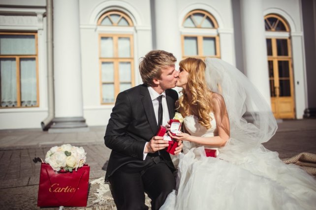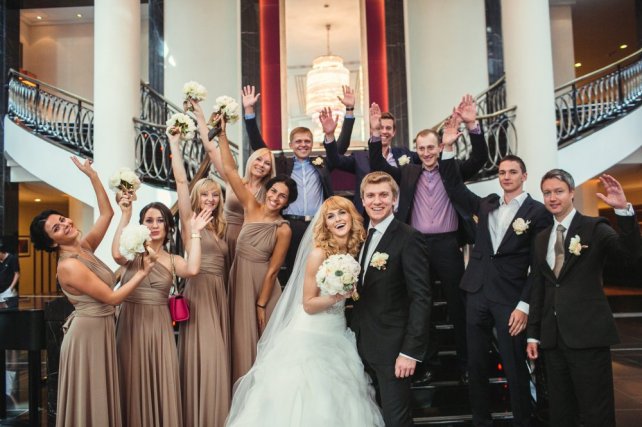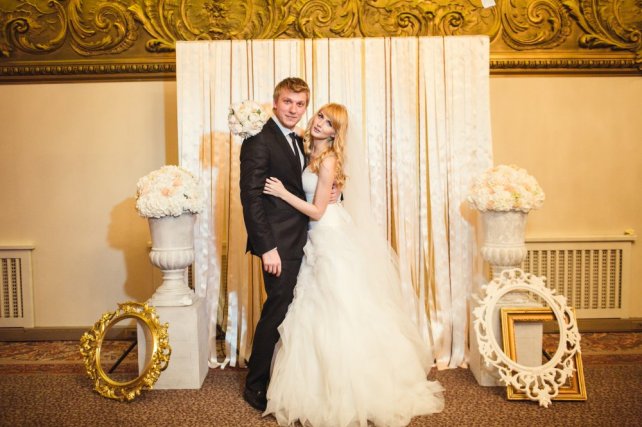 Сохранить 1 При нажатии на кнопку,статья сохранится в разделе"Закладки" в личном кабинете. Поделиться: Сохранить 1 При нажатии на кнопку,статья сохранится в разделе"Закладки" в личном кабинете. Свадьбы Свадьба Сережи и Кати в Санкт-Петербурге 01 июля 2016 4528 0 Цвет Золотой Стиль Современная Сезон Лето Место Санкт-Петербург Цвет Золотой Стиль Современная Сезон Лето Место Санкт-Петербург Свадебный организатор:Студия Ольги Купцовой Фотограф:Ольга Андрияш Флорист:Flowerbureau Мы искренне верим в то, что многие встречи предопределены судьбой. Познакомились с невестой мы давным-давно, а благодаря социальным сетям, к счастью, не потерялись в тесной Москве. Однажды Катя наткнулась на отчет со свадьбы, которую организовала наша команда, и, как она уверяет, сразу поняла, кто будет организатором ее торжества.Мы приступили к планированию праздника весной. В качестве места для проведения свадьбы искали красивые Подмосковные локации и ужезапланировали посмотреть несколько мест, но выезд пришлось перенести из-занаступающих продолжительных майских праздников. Нашему плану была не судьба состояться, потому что после весенних каникул в Санкт-Петербурге ребятавернулись и заявили нам: «Мы подали заявление в Питере, свадьба через двамесяца, регистрация в 20:00. Вы с нами?». Конечно, мы остались с ребятами иоперативно начали готовить праздник в Северной столице. Сложностей быломного... сжатые сроки, ЗАГС в восемь часов вечера... Но мы все придумали, иитогом стал замечательный свадебный день очень красивой пары, подробностикоторого мы описываем ниже.Утро началось с веселых сборов невесты в окружении ее близких подруг. Смех, улыбки и свежая клубника, утопающая в бокале с искрящимся шампанским, — самое правильное начало свадебного дня. А потом эффектная и одновременно нежная встреча жениха и невесты в нарядном холле отеля.До торжественной церемонии бракосочетания, которая была назначена на вечер в потрясающем по красоте ЗАГСе на Английской набережной, оставалась еще масса времени, и мы постарались спланировать день так, чтобы не потерять его даром. Итак, Катя с Сережей и их друзья отправились на насыщенную прогулку, во время которой состоялась свадебная фотосессия с фотографом ОльгойАндрияш. Нам всегда мечталось, что когда-нибудь Оля сделает для нашей парыпрекрасные снимки — и этот день настал! Одни из самых красивых и волшебныхфотографий получились на острове Елагин. Это чудесное место помогла найти наша цветочная фея Оля Нарижная. Ее команда из Flowerbureau навела красоту на празднике и украсила лодочку специально для фотосессии ребят. Эффектные фотографии в роскошных интерьерах снимали в отеле "Коринтия Санкт-Петербург".После выбора места для проведения свадьбы, а им стал легендарный ресторан с богатой историей «Палкинъ» на Невском проспекте, мы утвердили палитру свадьбы, основным цветом которой стал цвет кофе с молоком. При создании свадебного оформления декораторы учли все пожелания невесты и специфику зала. Итогом стали нежнейшие букетики из пионов для подружек невестыи умилительные бутоньерки для друзей жениха. Букет невесты из отборных пионов был перетянут бархатной лентой в цвет свадьбы и украшен декоративным ключиком — Катя их просто обожает! Центром притяжения внимания на гостевых столах стали восхитительные композиции в высоких вазах, 