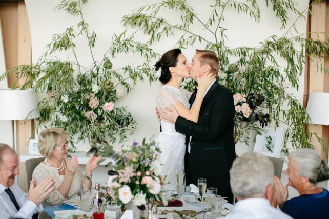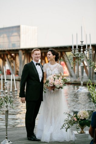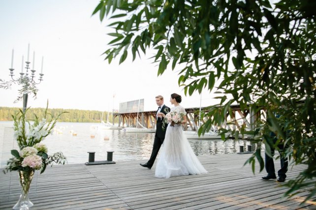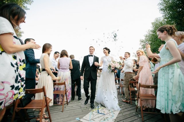 Сохранить 5 При нажатии на кнопку,статья сохранится в разделе"Закладки" в личном кабинете. Поделиться: Сохранить 5 При нажатии на кнопку,статья сохранится в разделе"Закладки" в личном кабинете. Свадьбы Когда не нужны слова. Свадьба Кати и Макса 11 октября 2016 4773 1 Цвет Серый Стиль Классика Сезон Лето Место Москва Цвет Серый Стиль Классика Сезон Лето Место Москва Свадебный организатор:Two People Wedding Фотограф:Дима Горбунов Видеооператор:You And Me Video Ведущий:Андрей Пределин Рассказывает невеста Катя:«Наша история знакомства началась на работе. У нас с Максом был настоящий служебный роман. Мы уже пару лет работали вместе, но не общались и почти не знали друг друга, пока однажды коллеги не позвали нас попрыгать на батутах. Там-то и проскочила искра, и все закрутилось: свидания, кофе вдвоем, прогулки и встречи тайком от коллег. Прошел год, мы решили съездить в Париж, была весна, романтика зашкаливала. За день до моего дня рождения мы пошли гулять вдоль Сены, шагали под многочисленными мостиками, и вдруг Макс попросил какую-то парочку сфотографировать нас, подошел ко мне, встал на колено, достал кольцо... Все было как в сцене из фильма, будто не в моей жизни. Конечно я сказала «ДА». Со свадьбой не торопились, хотели основательно подготовиться к этому мероприятию.В заботах мы почти забыли на год о предстоящем торжестве. Когда до лета оставалось полгода, пришло осознание, что пора что-то делать. Я верю в то, что случайностей не бывает, а все встречи и события происходят неспроста. Обзванивая рестораны и лофты в поисках «нашего» места, я узнала о проходящем буквально через пару дней Wedding Fest и пошла туда за порцией вдохновения. Там и нашла прекрасную Аню из агентства Two People Wedding. Точнее, получила рекомендацию и визитку, так как Аня была в далекой Азии. Просто все сложилось: стильные отчеты, небанальные, дышащие теплотой и любовью фото счастливых людей. Тогда же мы поняли, что нашим фотографом должен стать Дима Горбунов, и никто иной. Аню с Димой мы дождались, и началась работа.Какой мы представляли нашу свадьбу? Обязательно элегантной, с легким французским шиком и дыханием средиземноморской Италии, светлой и классической, чтобы, перебирая фото через 50 лет, по-прежнему видеть вкус и стиль нашего праздника. Тем более и место было найдено подходящее — на берегу водохранилища, светлое, окруженное соснами, пахнущее хвоей и негой.На удивление, из наших невнятных «хочу» Ане удалось сделать именно то, что мы хотели!Процесс подбора декора и флористики был, наверное, самым сложным из всех. Нам хотелось легкости, душевности, без единой нотки помпезности и тяжелых деталей, ведь праздник мы делали для самых близких и хотелось уйти из рамок светского мероприятия. Аня и ее команда флористов смогли сделать то, что мы хотели: легкие, будто парящие в воздухе белоснежные букеты, невесомые канделябры, много света.В наш день все переживания и бури эмоций от подготовки просто исчезли, благодаря профессионализму Two People и их команде. Помню, самым ярким воспоминанием стал момент, когда Аня принесла букет. Я не могу передать словами аромат, но он навеивал воспоминания из детства, он пах розовым вареньем и им хотелось дышать. Букет превзошел все мои ожидания. Ну а самым эмоциональным моментом нашей свадьбы был мой выход на лодке и встреча с папой. Я не помню слов ведущего, я до сих пор вижу гл