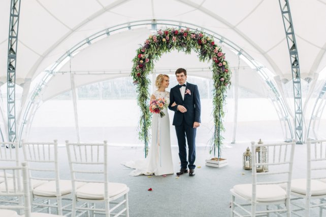 Сохранить 0 При нажатии на кнопку,статья сохранится в разделе"Закладки" в личном кабинете. Поделиться: Сохранить 0 При нажатии на кнопку,статья сохранится в разделе"Закладки" в личном кабинете. Свадьбы Geometry Wedding. Ирина и Андрей 11 ноября 2016 4408 0 Цвет Фиолетовый Стиль Современная Сезон Лето Место Москва Цвет Фиолетовый Стиль Современная Сезон Лето Место Москва Свадебный организатор:Marmelad Wedding Декор:Tandem Ведущий:Иван Скотч Фотограф:Таня Волкова Торт:Тортик Аннушка Ресторан:Radisson Resort Zavidovo Андрей и Ирина — пара, которая абсолютно осознанно пришла к решению о браке, ведь у каждого за плечами своя жизненная история. Разные, но дополняющие друг друга, они нашли совместное счастье. Она — веселая и активная. Он — с виду довольно строгий, скромный, но при этом очень добрый и жизнерадостный. Их встреча была не случайна, а чувства переросли в создание семьи.Почти всей подготовкой к свадьбе занималась Ирина. К этому вопросу она подошла с «холодной» головой и четко знала, чего хочет. Плодотворные встречи, быстрые принятия решений и утверждения подрядчиков радовали нас на протяжении всего времени и помогали эффективно двигаться к цели. Андрей полностью доверял Ирине, но иногда мог перевернуть все с ног на голову! Например, увидев уже купленное свадебное платье Ирины, он настоял на другом варианте. Пришлось купить второе платье, но зато теперь и Андрей, и Ирина были довольны.Андрей и Ирина решили разбить церемонию бракосочетания и основное торжество на два дня. Минуя все очереди и пробки, пара расписалась в середине недели в усадьбе Коломенское. Далее мы планировали фотосессию на природе, но черные тучи и дождь «решили» за нас все. Ирина и Андрей отправились в фотостудию, о чем потом ни разу не пожалели. Мы очень переживали за настроение невесты, но Ирина, впрочем как и всегда, шутила и улыбалась. Она была счастлива в этот день, ведь рядом с ней любимый и любящий ее человек. Поэтому погода никак не повлияла на настрой наших молодых. Фотосессия получилась замечательная!Основное торжество проходило в ресторане отеля Radisson Resort Zavidovo. Площадку ребята выбирали сами, так как с Завидово у них многое связано. Они забронировали ресторан и внесли предоплату, даже не посмотрев его «вживую». Конечно, на совместной встрече уже на площадке выяснилось много нюансов. Ирина и предположить не могла, что просьба вынести лишние 2-3 стола из зала, обернется целой чередой согласований! И таких мелочей был целый список. Но мы всегда максимально отстаиваем интересы нашей пары и «сражаемся» до конца, чтобы в день свадьбы ничто их не могло огорчить.Красивая территория отеля предоставляла нам возможности для проведения выездной церемонии у воды. Мы сразу зацепились за эту идею, тем более на официальной росписи присутствовали только близкие подруги Ирины. Это было бы очень логичным началом свадебного торжества. Мы выбрали красивую локацию под открытым небом, но, увы, погода опять внесла свои коррективы. Экстренно был воплощен план «Б», и было принято решение перенести зону церемонии и welcome в шатер. Мы заранее предусмотрели зонтики для гостей, чтобы они могли переместиться в банкетный зал, не намокнув.Гости искренне поздравляли Ирину и Андрея, фотографировались на фоне чудесной арки, а затем от души танцевали и участвовали в активностях от ведущего. Главным сюрпризом стал свадеб