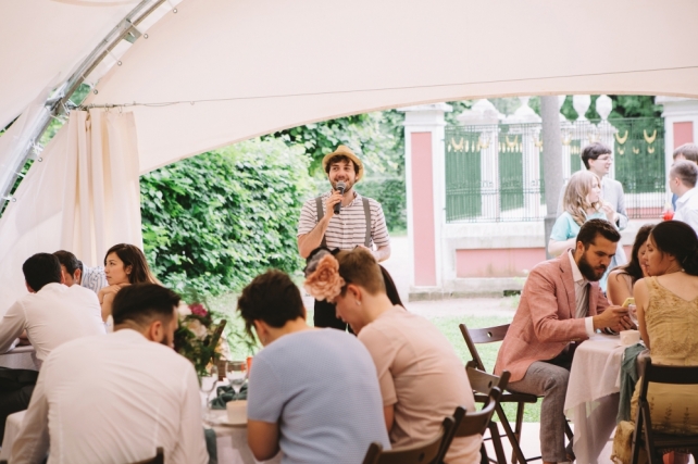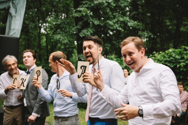 Сохранить 2 При нажатии на кнопку,статья сохранится в разделе"Закладки" в личном кабинете. Поделиться: Сохранить 2 При нажатии на кнопку,статья сохранится в разделе"Закладки" в личном кабинете. Свадьбы Свадьба «Ретро-дача» для Лены и Максима 17 февраля 2017 3205 0 Цвет Фуксия Стиль Ретро Сезон Лето Место Москва Цвет Фуксия Стиль Ретро Сезон Лето Место Москва Фотограф:Катя Труш Свадебный организатор:Ирина Соколянская Ведущий:Дуэт TwinBrothers Елена и Максим живут в Ирландии, но праздновать свадьбу решили в Москве, где живут родители и часть друзей. Другую часть друзей планировалось приглашать из разных уголков планеты. А с учетом специфики работы пары (Елена работает в компании Google, Максим — известный видеоблогер), то и круг общения ребят явно был далек от общепринятых рамок. Поэтому и свадьба должна была быть не совсем стандартной, а такой, чтобы на ней всем было комфортно.Один из моих любимых свадебных форматов — свадебный фуршет — был предложен самими ребятами. Для тех, кто не в курсе, свадебный фуршет — это не значит, что все обязательно будут стоять. Нет! На таком празднике делается грамотное зонирование, где обязательно есть и столы, и стулья, и лаунж-зоны, и фотозоны. Но специальной привязки к стульям-столам и номеркам столов нет. Ходи, пей, ешь, общайся, танцуй, веселись в свободном формате без «сели-встали-тосты-конкурсы».Лена и Максим для свадебного торжества выбрали один из самых красивых парков Москвы — Кусково. Свадьба в Кусково хороша тем, что в усадьбе есть шикарный парк для прогулки и фотосессии, а также возможность провести официальную роспись брака. Именно сама усадьба и натолкнула Елену выбрать стиль свадебного торжества — ретро-дача. Этакий выезд бомонда на дачу с целью отметить свадьбу. На одной из полян парка был установлен шатер, было сделано зонирование как в шатре, так и за его пределами: фотозона, танцпол, сладкий бар, бар с напитками, лаунж-зона, зона для торжественных моментов, зона для банкета. Для соблюдения концепции ретро-дачи для каждой зоны декораторы подбирали все, начиная от столов и стульев и заканчивая ложечками и салфетками. А для барной стойки с напитками изготовили деревянную ширму в ретро-стиле. Надо отдать должное Елене: свадьба в стиле ретро-дачи была продумана ею самой в тандеме с декораторами, а многие организационные моменты мы решали с невестой сообща. В данном случае я как свадебный организатор частично помогала организовать это торжество.В день проведения со мной работала команда координаторов, так как логистика свадьбы была сложной, да и гостей более 70 человек. Практически вся подготовка к свадьбе у нас велась в режиме телефон-skype-whatsapp-facebook, что очень удобно не только, когда ты живешь на другом континенте, но даже в условиях Москвы.Меня часто спрашивают пары, возможно ли найти ведущего для свадебного фуршета без стандартной программы и привычных конкурсов? На свадебном фуршете Елены и Максима как раз был такой ведущий, и поверьте, это действительно весело и интересно!Автор текста: Ирина Соколянская (организатор) Сохранить 1 При нажатии на кнопку,фото сохранится в коллекциив личном кабинете. Катя Труш Фотографы Сохранить 1 При нажатии на кнопку,фото сохранится в коллекциив личном кабинете. Свадьба «Ретро-дача» для Лены и Максима Показать описание Фотограф: Катя Труш Свадебный организатор: Ирин