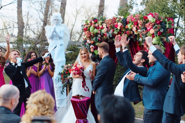 Сохранить 6 При нажатии на кнопку,статья сохранится в разделе"Закладки" в личном кабинете. Поделиться: Сохранить 6 При нажатии на кнопку,статья сохранится в разделе"Закладки" в личном кабинете. Свадьбы Свадьба Антона и Илоны в цвете марсала 07 марта 2017 3928 0 Цвет Бордовый Стиль Гламур Сезон Весна Место Москва Цвет Бордовый Стиль Гламур Сезон Весна Место Москва Свадебный организатор:Студия Ольги Купцовой Флорист:Atmosfera Decor Ведущий:Александр Исмаилов Шоу-программа и Артисты:Кавер-группа "Miami" Фотограф:Алексей Сычев С женихом Антоном мы знакомы давно, так как в 2010 году организовали свадьбу для его старшего брата. Мы были очень рады узнать, что и младший брат наконец-то встретил ту самую единственную и готов доверить нам организацию самого важного семейного праздника. Мы с удовольствием окунулись в процесс подготовки к свадьбе. Невеста Илона поделилась своими мечтами о том, какой видит свою свадьбу. Яркой и эффектной, трогательной и душевной одновременно, такой, чтобы каждый гость ощутил волшебство свадебного дня. Пожелание к оформлению свадьбы прекрасно проработали декораторы из студии Atmosfera décor, тонко уловив настроение и видение невесты. Сочная цветовая гамма и шикарная флористика не оставили никого равнодушным.Для Илоны было очень важно, чтобы с женихом они увиделись только на самой церемонии, а утро и сборы прошли в компании любимых подруг. Неспешно, весело и обязательно красиво.Антон и Илона подготовили друг для друга письма, которые мы доставили к их утренним сборам. Это так романтично — получить любовное послание от своей половинки в день свадьбы!Пока девушки «наводили красоту» и с удовольствием позировали фотографам, Антон и его друзья встретились, чтобы немного развеяться перед началом свадьбы, погонять футбольный мяч и украсить свои костюмы бабочками, которые специально пошили в тон свадьбы.Церемонию и свадебный банкет было запланировано провести в городском ресторане, управляющий которого старый знакомый семьи Антона, где всю нашу команду очень радушно приняли. Несмотря на весьма прохладную погоду в конце апреля, мы не стали переносить церемонию в помещение и провели все, как и было изначально задумано. В церемонии приняли участие подружки и друзья жениха и невесты, братья Антона и Илоны, у каждого была своя ответственная роль. После главного ответа друг другу молодожены отправились на небольшую фотосессию, ведь сделать красивые кадры до церемонии было невозможно. Мы подготовились к этому заранее и с ведущим Сашей Исмаиловым проработали развлечения для гостей, чтобы они не успели заскучать, пока главные герои праздника отсутствуют.Во время банкета гостей ожидала насыщенная программа, потому что, помимо артистов и зажигательной кавер-группы Miami, было придумано столько фишек и активностей, что, работая над сценарием совместно с ведущим и парой, мы всерьез переживали, получится ли уместить все, что мы подготовили. И зря переживали: все прошло на отлично, и настроение гостей — яркое тому подтверждение!Отдельного внимания заслуживает танец жениха и невесты, это была страстная бачата. Антон и Илона ведут здоровый образ жизни, занимаются спортом, любят танцевать. И этот танец как нельзя лучше отразил характер самой пары и их сильные чувства друг к другу. Сохранить 1 При нажатии на кнопку,фото сохранится в коллекциив ли