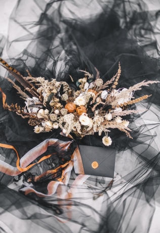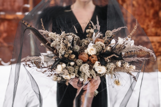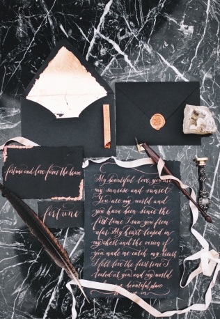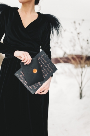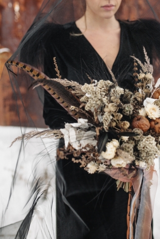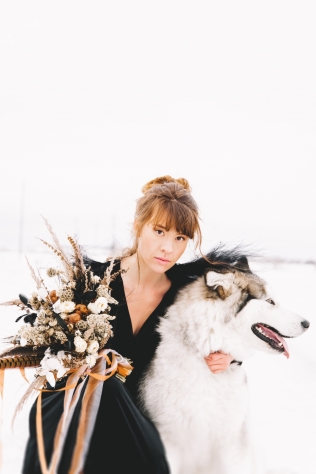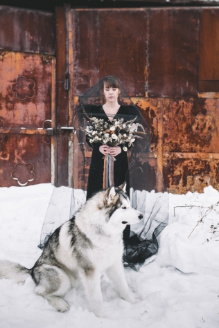 Сохранить 2 При нажатии на кнопку,статья сохранится в разделе"Закладки" в личном кабинете. Поделиться: Сохранить 2 При нажатии на кнопку,статья сохранится в разделе"Закладки" в личном кабинете. Фотопроекты Девушка и волк 16 марта 2017 5291 0 Концепция:День Икс Декор:День Икс Флорист:День Икс Фотограф:Надежда Бондаренко Другие:Каллиграфия: Алина Демковская Команда «День икс» задумала съемку, в которой будут сочетаться интересные решения и тенденции будущего сезона. Идея создания этого проекта появилась задолго до самой съемки. Искали несколько составляющих: фотографа, подходящую местность и модель. В наличии имелась только собака (аляскинский маламут), и именно она задала вектор движения. Мы решили разорвать шаблоны, показать, что свадебное платье может быть не только белым и пастельным, но и вызывающим черным. Для этого идеально подошел бархат — роскошный, строгий материал, который выходит за рамки обычного представления о свадебном платье.Кроме бархата, для создания атмосферы команда использовала в оформлении такие благородные фактурные материалы, как мрамор и перья. Традиционным свадебным букетам была противопоставлена цветочная композиция. В нашем сложносочиненном букете мы отказались от цветов, используя природные материалы, на которые вы бы даже не обратили внимания. Сухоцветы, перья фазана и петуха, сухая скабиоза, черный ковыль, зимние яблоки — все это создало эффект загадочности и зимней романтики.Полиграфию, расписанную медной тушью на бумаге ручной выделки, решено было использовать в сочетании с черным мрамором для придания настроения торжественности и эффекта основательности. Ржавые амбарные ворота в сочетании с элементами благородной патины подчеркнули строгость образа невесты. Также мы использовали замерзшие зимние яблоки и придали легкой ткани рыжевато-ржавый окрас. На роль модели искали особую девушку — с выраженными этническими корнями, со своей непосредственностью, ведь она стала воплощением любви к природе, к своему волку. Ее образ загадочен, она знает много природных тайн, может управлять стихией. Она ищет свою пару, но по-прежнему любит своего волка, который как верный друг всегда следует за ней. Сохранить 0 При нажатии на кнопку,фото сохранится в коллекциив личном кабинете. День Икс Декор свадьбы Сохранить 0 При нажатии на кнопку,фото сохранится в коллекциив личном кабинете. Девушка и волк Показать описание Концепция: День Икс Декор: День Икс Флорист: День Икс Фотограф: Надежда Бондаренко Другие: Каллиграфия: Алина Демковская Сохранить 0 При нажатии на кнопку,фото сохранится в коллекциив личном кабинете. День Икс Декор свадьбы Сохранить 0 При нажатии на кнопку,фото сохранится в коллекциив личном кабинете. Девушка и волк Показать описание Концепция: День Икс Декор: День Икс Флорист: День Икс Фотограф: Надежда Бондаренко Другие: Каллиграфия: Алина Демковская Сохранить 0 При нажатии на кнопку,фото сохранится в коллекциив личном кабинете. День Икс Декор свадьбы Сохранить 0 При нажатии на кнопку,фото сохранится в коллекциив личном кабинете. Девушка и волк Показать описание Концепция: День Икс Декор: День Икс Флорист: День Икс Фотограф: Надежда Бондаренко Другие: Каллиграфия: Алина Демковская Сохранить 0 При нажатии на кнопку,фото сохранится в коллекциив личном кабинете. День Икс Декор свадьбы Сохранить