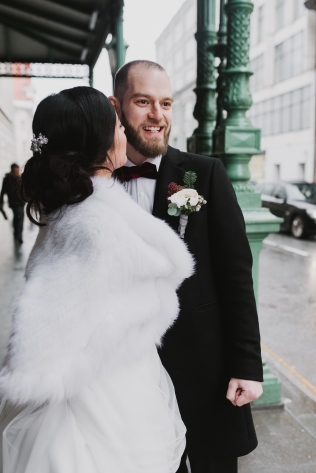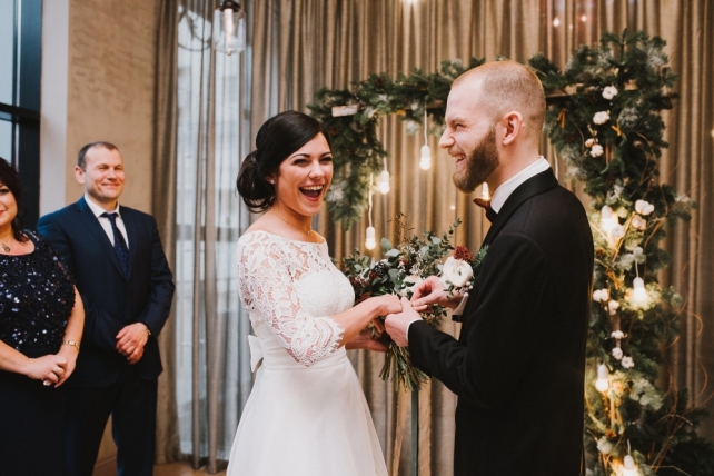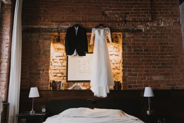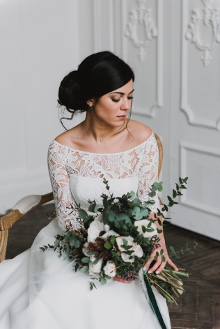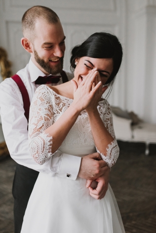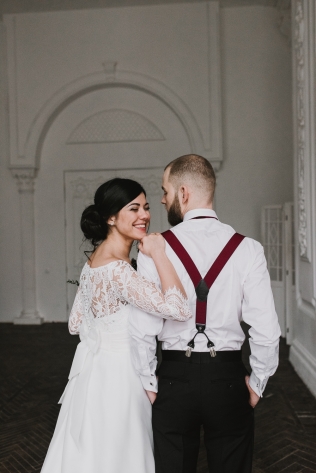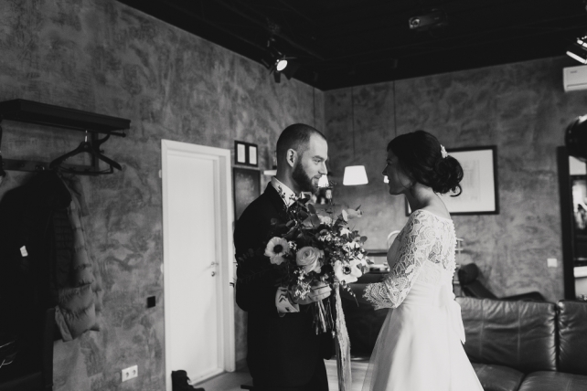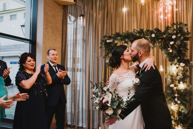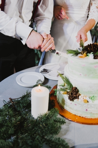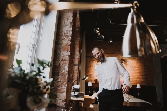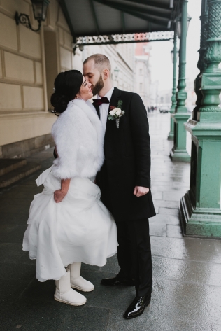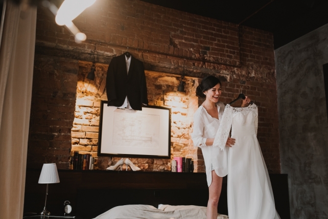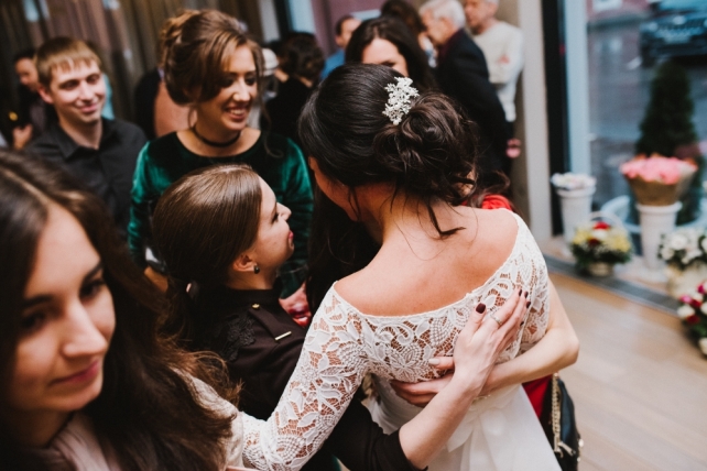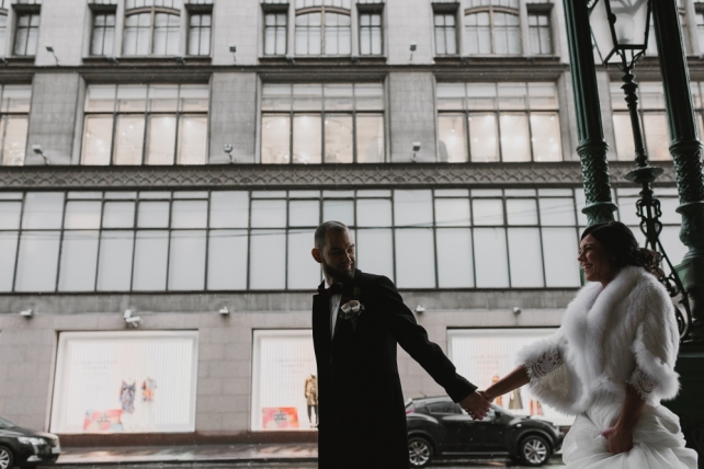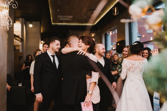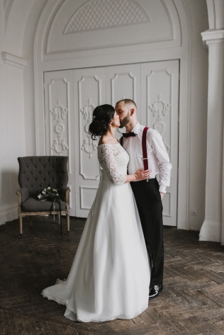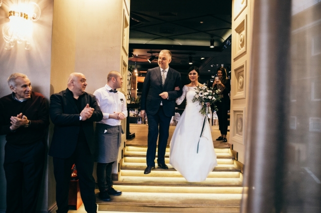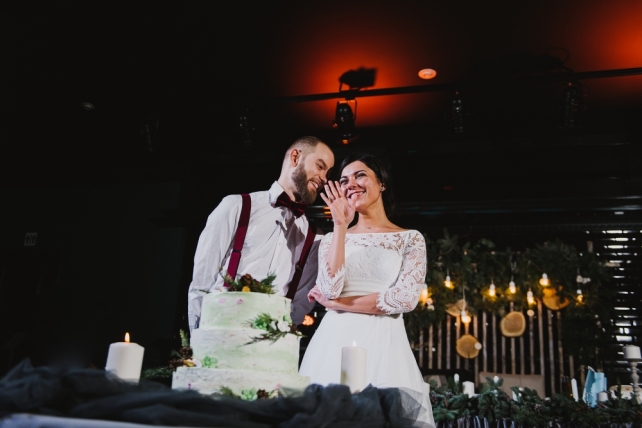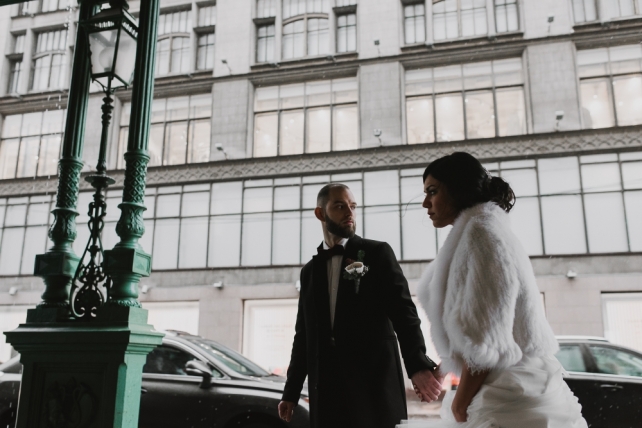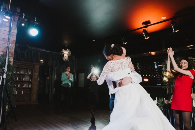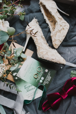 Сохранить 3 При нажатии на кнопку,статья сохранится в разделе"Закладки" в личном кабинете. Поделиться: Сохранить 3 При нажатии на кнопку,статья сохранится в разделе"Закладки" в личном кабинете. Свадьбы Winter in the City. Свадьба Дины и Бориса 29 марта 2017 4744 0 Цвет Зеленый Стиль Эко-стиль Сезон Зима Место Москва Цвет Зеленый Стиль Эко-стиль Сезон Зима Место Москва Свадебный организатор:Momento Декор:Batwings-Event Фотограф:Шефтер Полина Фотограф:Гончаров Александр Ведущий:Герман Забровский Видеооператор:Александр Цыганок Полиграфия:Lupin Design Макияж и прическа:Юлия Захарова Шоу-программа и Артисты:Дуэт Soundshine Дина и Борис оказались абсолютно «нашими» людьми. Уже на первой встрече, обсудив все детали, мы поняли это и в тот же день заключили договор. «Друзья, а не агентство», — вот одно из того, что подтолкнуло Дину и Бориса встретиться с нами и понять, что мы сможем организовать свадьбу их мечты. А услышанная от молодоженов фраза «Вы те, кого мы искали» дала нам невероятные силы для реализации всех замыслов.Эта прекрасная пара познакомилась очень давно, судьба разводила и сводила их, но в итоге они поняли, что не могут жить друг без друга. Борис сделал предложение Дине в ее день рождения. Точнее не совсем Борис... колечко принес маленький мопс, о котором Дина очень давно мечтала (ну и колечке, конечно же, тоже). Как только мы узнали эту историю, в голове сразу возникла идея устроить фотосессию love story вместе с их маленьким членом семьи. Идею продержали все. И не зря, фото получились невероятно живыми и позитивными. Фотограф Полина особенно точно передала характер молодоженов.С концепцией свадьбы долго думать не пришлось. Дина и Борис видели свое торжество под конец зимы в эко-стиле, а все еще снежный февраль сделал свое дело, и у нас получилась очень уютная зимняя свадьба. В декоре — ветки сосны, шишки, спилы, ароматы корицы и бадьяна, теплые огни ретро-гирлянд и создающий неповторимую атмосферу, потрескивающий камин.Свадьба была очень стильной и современной. Сборы проходили в апартаментах в стиле лофт, а утро невесты было не в белом белье, как обычно это бывает, а в элегантном черном боди, да еще и художественный взгляд фотографа использовал в постановке кадра ретро-ванну... ух, фотографии получились невероятными!Регистрация прошла очень трогательно. За панорамными окнами — хлопья снега, в зале звучит саксофон (Elvis Presley — Oh, my Love) невесту ведет ее отец, с любовью смотрит на Дину, и по взгляду читается, что он видит перед собой все ту же маленькую девочку, и с нежностью в движениях передает ее в руки главному мужчине в ее жизни — счастливому Борису. Регистрацию провел «святой отец», который в веселой атмосфере узнал, согласны ли они прожить до конца дней вместе, готова ли Дина готовить борщи, а Борис делать вид, что ему нравится, как поет Дина. Шуточная и неклассическая форма ведения полностью отражает веселый характер наших молодых. Виновники торжества произнесли душевные и трогательные клятвы... никто не мог сдерживать слез... слез счастья!В течение вечера гостей радовал дуэт Soundshine, смесь электронной музыки и саксофона. Мама невесты со своим мужем подарили молодоженам зажигательный танец под хит этого года Be Mine. Это было незабываемо, ведь не каждые родители готовы на такие эксперименты! Сами молодожены тоже устроили всем сюрприз: их первый танец поддержали друзья, 