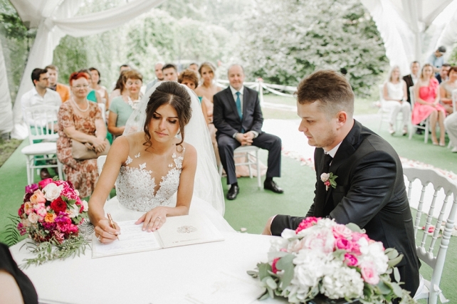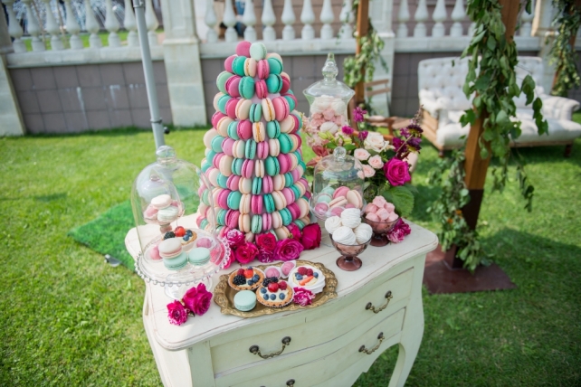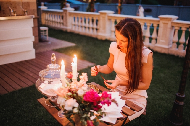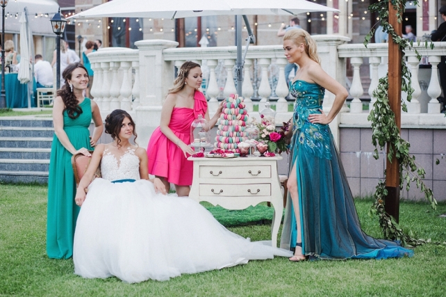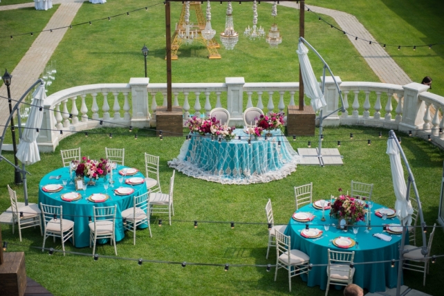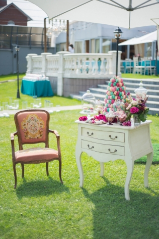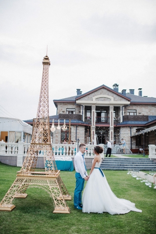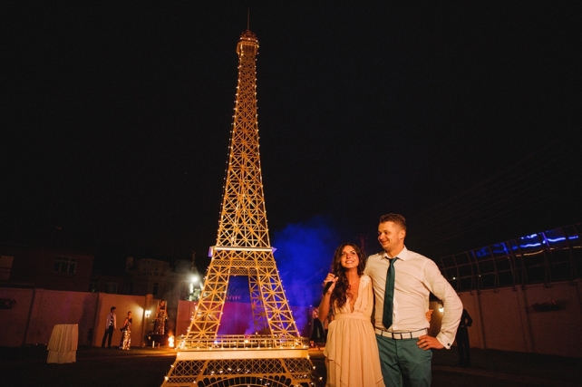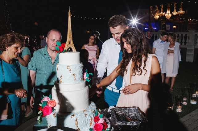 Сохранить 2 При нажатии на кнопку,статья сохранится в разделе"Закладки" в личном кабинете. Поделиться: Сохранить 2 При нажатии на кнопку,статья сохранится в разделе"Закладки" в личном кабинете. Свадьбы Париж, я люблю тебя! Свадьба Алены и Николая 10 апреля 2017 3502 0 Цвет Бирюзовый Стиль Классика Сезон Лето Место Москва Цвет Бирюзовый Стиль Классика Сезон Лето Место Москва Свадебный организатор:Carpe Diem Фотограф:Арсений Прусаков Фотограф:Татьяна Минт Декор:FLOWERBAZAR STUDIO Торт:Shevlyagin Cakes Couture Ведущий:Арсен Кипера Видеооператор:MasterplanRemarks Полиграфия:Maria Kirvas Шоу-программа и Артисты:AURUM show Когда-то Алена и Николай познакомились как деловые партнеры, а теперь мы вспоминаем, как жаркий июль стал для пары самым главным семейным праздником.На создание концепции нас вдохновило место свадебного путешествия — Париж. Алена мечтала о яркой, необычной и в то же время классической свадьбе. Казалось бы, такой микс невозможен, но, благодаря грамотному подходу к разработке концепции, все элементы сложились в одну гармоничную картину. Франция — довольно распространенная свадебная тема, поэтому перед нами стояла особенная задача — сделать событие непохожим на все другие проекты. Главным символом этого дня стала Эйфелева башня, которую мы интересно вписали в различные элементы декора.ВЫБОР ПЛОЩАДКИМестом для проведения свадьбы стал просторный загородный дом с большим потенциалом для творчества и оформления. Ожидалось 60 гостей, и перед нами возник вопрос их размещения во время ужина. Мы предложили паре два варианта: установку стационарного шатра или проведение банкета под открытым небом. Второй вариант показался всем наиболее интересным, и мы решили рискнуть, ведь все-таки дата свадьбы была 27 июля, в один из самых солнечных дней лета, а в качестве подстраховки было принято решение установить большие зонты, которые спасли бы гостей от небольшого дождика. Зонтики в итоге сыграли свою роль: гости прятались под ними от прямых солнечных лучей и наслаждались прохладным теньком.СТИЛЬ И КОНЦЕПЦИЯ СВАДЬБЫВ качестве палитры были выбраны такие цветовые сочетания, как бирюзовый, яркая фуксия и светлый беж. Все оттенки были очень сочными и естественными, а также они прекрасно сочеталась с аристократичностью изысканного загородного дома. На лужайке возле дома мы установили башню высотой пять метров, которая завораживала своей красотой и масштабом.Всех гостей встречали официанты с холодным шампанским и освежающим лимонадом. Взору приглашенных сразу открывалась просторная зеленая лужайка с шикарной лаунж-зоной, коктейльным баром и множеством других интересных зон.Настоящей жемчужиной свадьбы стала зона с беседкой, украшенная цветами, хрустальной люстрой и сладким столом. Гости как будто очутились в садах Версаля, где, спасаясь от жары, могли отдохнуть на удобном диване с бокалом шампанского, пробуя изысканные французские сладости, а также с удовольствием делали фотографии, ведь нам действительно удалось создать атмосферу Парижа! Для зоны пожеланий было также найдено необычное решение: гости писали свои пожелания на свитках из хлопковой бумаги красивой перьевой ручкой, что было очень изящно и аристократично.ПРОГРАММА ВЕЧЕРАТоржество проходило в очень легкой форме. За активное участие в интерактивах ведущего гости получали особенные карты с символом свадь