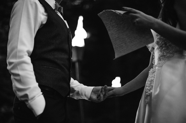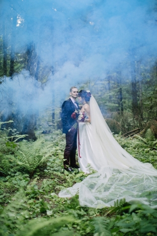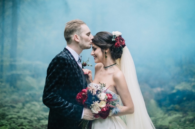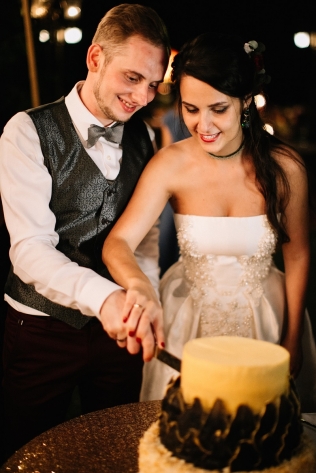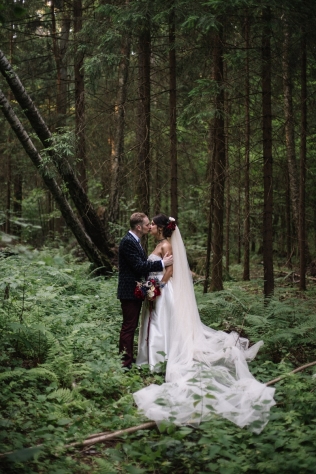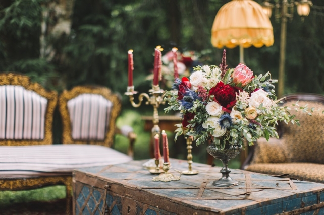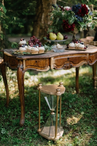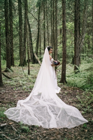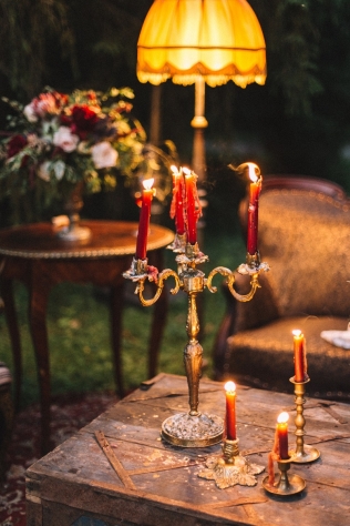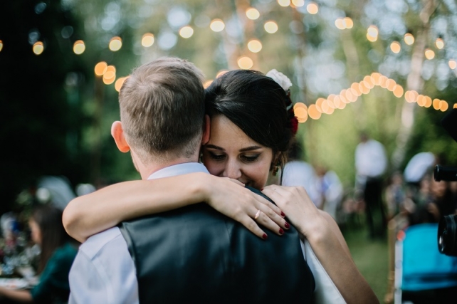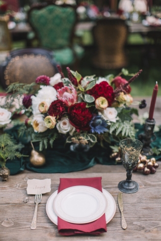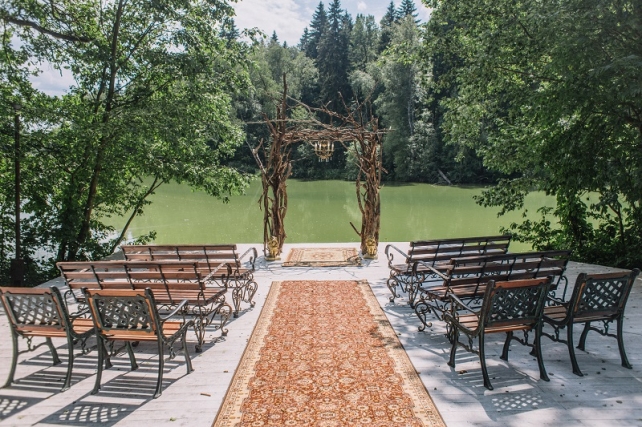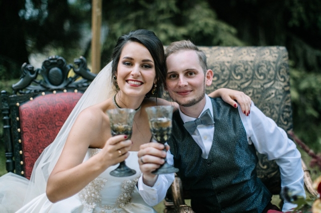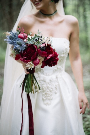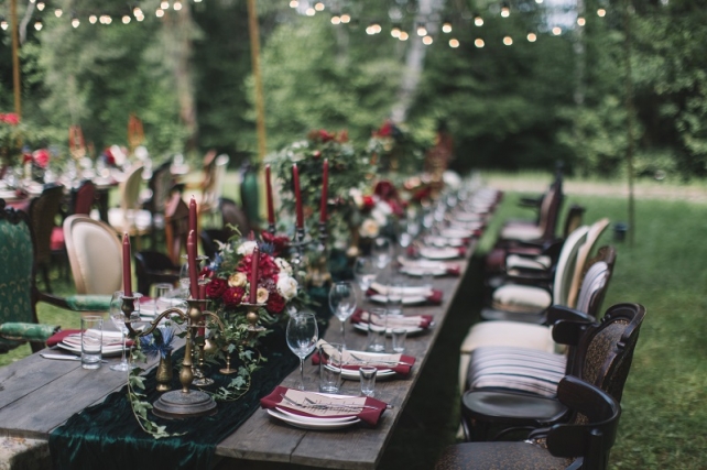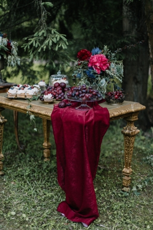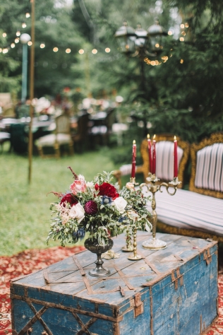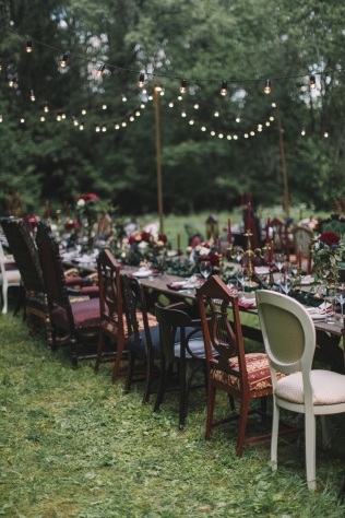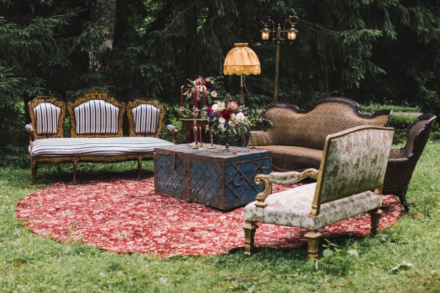 Сохранить 10 При нажатии на кнопку,статья сохранится в разделе"Закладки" в личном кабинете. Поделиться: Сохранить 10 При нажатии на кнопку,статья сохранится в разделе"Закладки" в личном кабинете. Свадьбы Леня и Вика. Богемная свадьба в лесу 03 мая 2017 6316 0 Цвет Бордовый Стиль Богемный стиль Сезон Лето Место Москва Цвет Бордовый Стиль Богемный стиль Сезон Лето Место Москва Декор:Holiday Everyday Фотограф:Александр Мазуров и Анастасия Глебова Эта свадьба — наша абсолютная любовь! В самом начале первой встречи Леня и Вика сказали всего несколько слов: «лес», «барокко», «богема», еще, насколько помним, в разговоре фигурировал Тим Бертон с его «Алисой в Стране чудес» — и дальше понеслась! Ребята начинали что-то говорить, а мы заканчивали, и наоборот! В общем, это было стопроцентное совпадение, взаимопонимание и доверие с первого взгляда.Было очень мало времени для подготовки (меньше месяца), много переживаний из-за погоды, двое суток монтажа в компании комаров, но, несмотря на все сложности, очень хотелось создать лесную сказку, и кажется, у нас получилось!Начать рассказ о свадьбе хочется с образов ребят. Вика была сногсшибательна: готическая барочная принцесса с 6-метровой фатой, бархатным чокером на шее, ярким мейком — все это невероятно ей шло, хотя изначально планировался воздушный образ лесной нимфы. Очень круто, когда внимание жениху уделяется не меньше! У Лени был невероятный бархатный пиджак, да и весь образ был подобран очень гармонично. К слову, ребята работают на «Первом канале», и стилисты, которые создавали образы, их коллеги.Наш самый любимый кадр — Леня и Вика на фоне арки из коряг (куда же без них)), есть в нем какое-то таинство, как будто это портал в неведомый мир, охраняемый золотыми львами! Забавно, что все коряги для конструкции арки в этот лес мы везли из другого, собирали уже на монтаже и изначально не знали, что же у нас получится в итоге.Для праздничного ужина мы подсветили поляну в лесу гирляндами, привезли деревянные столы, но картинка была бы неполной без разных винтажных кресел и стульев, нашей коллекции винтажных подсвечников и ваз, которые отлично вписались в стилистику и придали того самого волшебства. Флористика была дикой и лесной — папоротники, разная зелень, но с яркими акцентами — бордо (любимые пионы ред шарм) плюс насыщенный синий (не менее обожаемые нами ирингиумы). Не обошлось, конечно, и без любимых всеми невестами пионовидных роз.Мы всегда стараемся уделить максимальное внимание деталям: рассадочные карточки были выполнены под заказ из бумаги ручной работы, отлитой из лесных трав, и подписаны каллиграфом, посуда для сервировки, салфетки, свечи — все подбиралось очень тщательно. Также на поляне располагалась лаунж-зона с диванами, креслами, фонарями и торшерами, которые зажглись вечером, а рядом под большими елками на разных старинных столиках располагалась фуршетная и сладкая зона.Как же здорово, что все действие проходило в лесу: не нужно было делать задников, драпировок или что-то прикрывать. Мы считаем, что свадьбы на природе выглядят более естественно и органично. А атмосфера, особенно вечером на поляне, была, и правда, волшебной! С наступлением темноты, под вековыми елями при свете факелов, в присутствии близких людей, ребята обменялись клятвами.Особенно приятно на демонтаже нам было услышать от мамы нев