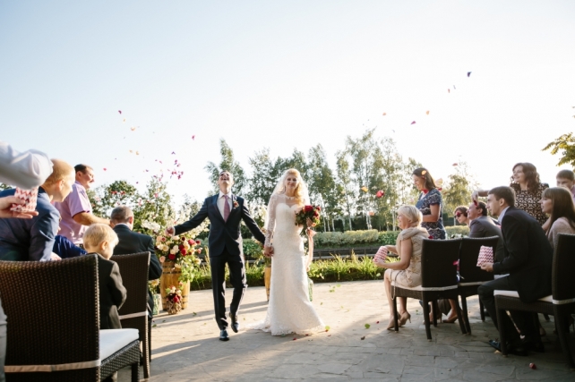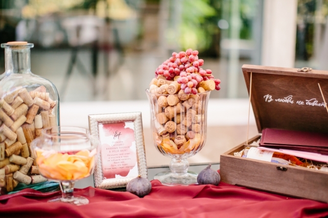 Сохранить 9 При нажатии на кнопку,статья сохранится в разделе"Закладки" в личном кабинете. Поделиться: Сохранить 9 При нажатии на кнопку,статья сохранится в разделе"Закладки" в личном кабинете. Свадьбы Оставаясь классикой, нарушая традиции. Свадьба Алины и Жени 10 мая 2017 6017 0 Цвет Бордовый Стиль Классика Сезон Лето Место Москва Цвет Бордовый Стиль Классика Сезон Лето Место Москва Фотограф:Дима Горбунов Ресторан:Довиль Свадебный организатор:Two People Wedding Полиграфия:OKSANAMIKE Оксана Цепкова Ведущий:Андрей Пределин Рассказывает невеста Алина:«Нас с Женей познакомили, как и моих родителей… Наше знакомство друг с другом протекало за неспешными разговорами за бокалом вина. А потом все закрутилось, и уже через 2 месяца мы в солнечной Испании, дегустируем вино любимого производителя и знакомимся с родителями.Сколько стран и городов мы пересекли? Мы сбились со счета, ровно так же, как и не знаем, сколько бутылок вина в нашем винном шкафу ) «Нормальные» люди везут из поездок магниты или другие сувениры, но это не про нас! Мы привозим редкие экземпляры бутылок, пополняя свою коллекцию.Вскоре назрел вопрос освоить азиатское направление путешествий. Женя долго сопротивлялся, но был убежден моими вескими аргументами. Выбор пал на белоснежный пляж острова Боракай, Филиппины. В самой романтической обстановке, на смотровой площадке, когда загорался рассвет, я получила предложение с заветными словами провести остаток жизни вместе. Женя встал на колено и попросил стать его женой. Невозможно подобрать «правильные» слова для описания моих чувств! Это было очень волнительно и трогательно, больше ничего не скажу, это нужно почувствовать... Добавлю только, что путь до смотровой вышки был нелегким, а для меня так вообще страшным. Путь лежал через весь остров, азиатские трущобы, стройку, свору собак в компании филиппинца на трицикле в 4 утра в полнейшем мраке… я помню, как я крепко вцепилась в Женину руку и не отпускала, пока мы не прибыли на вьюпоинт, где открывался волшебный обзор на все побережье. Вот такие контрасты!Окрыленные новым для нас статусом мы начали неспешно готовиться к свадьбе. Мы ответственно подошли к выбору места, и, наверное, это было самым сложным в подготовке, а дату свадьбы уже подстраивали под свободные даты (все-таки «неспешно» — не лучший подход). Остановились на поздней дате — 25 августа, что-то нам подсказывало, что погода будет отличной. Наш выбор пал на загородный ресторан «Жан-Реми» в поселке Трувиль. Ресторан и территория подкупали своей красотой с первого взгляда: французский стиль, белый зал, большие окна, природа вокруг, огромный пруд — все, что нужно! Следующим этапом для нас стал выбор организатора. Если коротко, с первых строк отчетов со свадеб Анны Горбуновой, мы поняли, что это наш человек! Кстати, отчеты мы читали на сайте The-Wedding.ru (вот так совпадение!). Мы оказались «на одной волне» и понимали друг друга с полуслова.Мы очень часто встречались, и Аня посвятила нас в закулисье свадебного дня. Но мы никогда не подозревали о таком количестве деталей: начиная со свадебного распорядка и заканчивая текстурой салфеток. Мы выезжали на репетиции, выбирали полиграфию, подрядчиков, согласовывали декор и так далее. Это был классный опыт, и все наши встречи проходили на позитиве. После свадьбы я даже на миг ощутила пустоту, настолько тесно 
