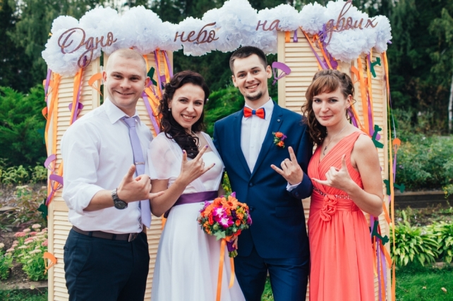 Сохранить 0 При нажатии на кнопку,статья сохранится в разделе"Закладки" в личном кабинете. Поделиться: Сохранить 0 При нажатии на кнопку,статья сохранится в разделе"Закладки" в личном кабинете. Свадьбы Свадьба скайдайверов Олега и Юлии 31 мая 2017 2961 0 Цвет Фиолетовый Стиль Крафт/handmade Сезон Осень Место Москва Цвет Фиолетовый Стиль Крафт/handmade Сезон Осень Место Москва Свадебный организатор:Ирэм организация свадьбы Хореограф:Ирэм Молодожены познакомились на аэродроме: Олег уже там занимался, а Юлия пришла осваивать воздушную акробатику.Цветовая гамма торжества определилась сразу — сочетание фиолетового и оранжевого, в цвет экипировки молодоженов.80% приглашенных гостей на свадьбу были именно скайдайверами. Даже папа жениха в прошлом инструктор по прыжкам с парашютом и познакомился с будущей женой также на аэродроме. Кажется, найти пару на аэродроме и построить крепкую семью, становится традицией в семье Авериных.Местом для свадьбы стала стеклянная веранда с возможностью видеть звездное небо, провести выездную регистрацию как на открытом месте, так и внутри в случае плохой сентябрьской погоды.Перед свадьбой мы сняли символичную love story в полной экипировке на любимом аэродроме молодоженов, а также сделали для фоновой трансляции видеоистории прыжков. Декоратор подготовила сотни крохотных парашютистов, которые стали гирляндами и картами рассадки. Каждая цветочная композиция «парила» над столом с помощью игрушечного самолетика.Потрясающую атмосферу праздника взорвало предложение руки и сердца Максима, одного из присутствующих гостей. Свадьбу Нади и Максима я создам ровно через год.Кульминацией праздника стал торт с фигурами жениха и невесты в полной экипировке, выполняющих одну из парных фигур в небе. Сохранить 0 При нажатии на кнопку,фото сохранится в коллекциив личном кабинете. Ирэм организация свадьбы Организация свадьбы Сохранить 0 При нажатии на кнопку,фото сохранится в коллекциив личном кабинете. Свадьба скайдайверов Олега и Юлии Показать описание Свадебный организатор: Ирэм организация свадьбы Хореограф: Ирэм Сохранить 3 При нажатии на кнопку,фото сохранится в коллекциив личном кабинете. Ирэм организация свадьбы Организация свадьбы Сохранить 3 При нажатии на кнопку,фото сохранится в коллекциив личном кабинете. Цвета: Категория: Аксессуары Свадьба скайдайверов Олега и Юлии Показать описание Свадебный организатор: Ирэм организация свадьбы Хореограф: Ирэм Теги: свадьба осенью, скайдайверы, организация свадьбы, свадебный распорядитель, свадьба подмосковье Сохранить 0 При нажатии на кнопку,фото сохранится в коллекциив личном кабинете. Ирэм организация свадьбы Организация свадьбы Сохранить 0 При нажатии на кнопку,фото сохранится в коллекциив личном кабинете. Свадьба скайдайверов Олега и Юлии Показать описание Свадебный организатор: Ирэм организация свадьбы Хореограф: Ирэм Сохранить 0 При нажатии на кнопку,фото сохранится в коллекциив личном кабинете. Ирэм организация свадьбы Организация свадьбы Сохранить 0 При нажатии на кнопку,фото сохранится в коллекциив личном кабинете. Цвета: Категория: Букет невесты Свадьба скайдайверов Олега и Юлии Показать описание Свадебный организатор: Ирэм организация свадьбы Хореограф: Ирэм Теги: свадьба осенью, скайдайверы, организация свадьбы, свадебный распорядитель, свадьба