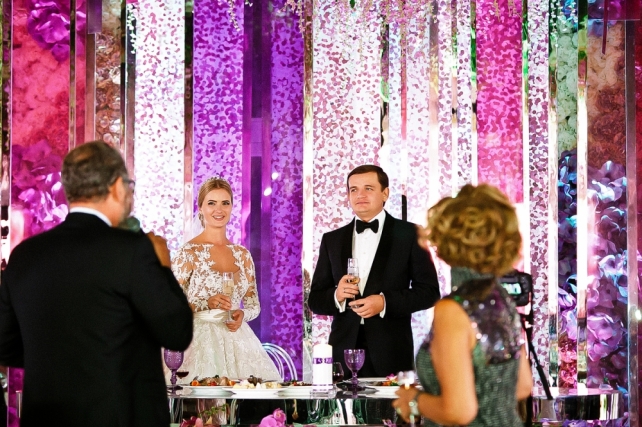 Сохранить 1 При нажатии на кнопку,статья сохранится в разделе"Закладки" в личном кабинете. Поделиться: Сохранить 1 При нажатии на кнопку,статья сохранится в разделе"Закладки" в личном кабинете. Свадьбы Сады Семирамиды 14 августа 2017 3933 2 Цвет Фуксия Стиль Классика Сезон Лето Место Москва Цвет Фуксия Стиль Классика Сезон Лето Место Москва Фотограф:Елена Жунь Свадебный организатор:WEDDING CONSULT Декор:Юлия Шакирова Уникальность проекта «Сады Семирамиды» заключается в его декоративном и сюжетном наполнении. Идеей свадьбы в стиле «висячих садов» стало одно из чудес света, которое создал в VII веке великий вавилонский царь для своей возлюбленной. Невероятные сады были построены на сухой равнине, где никогда не было зелени и воды. Именно эта легенда вдохновила Ксению Афанасьеву при создании оригинального сценария и концепции оформления места проведения. Идеальной локацией для торжества стала недостроенная вилла в Подмосковье, где 7 дней и ночей шел беспрецедентный монтаж декораций с живыми и искусственными цветами, зеркалами и натуральным песком! В концепции оформления был предусмотрен песок, который лежал прямо под ногами гостей, образуя островки. Зеркальные столы оригинально отражали висячие потолки из разнообразных цветов. Необычная люстра над танцполом в форме круга из зеркала стала заметной изюминкой зала. Огромные 4-метровые зеркала, как панно, украшали стены зала, отражая всю красоту в них. Приглашения делались исключительно вручную, каждое из ста было написано акварелью на стекле в форме ромба и подарено в изящной коробочке. 150 небольших хрустальных люстр украшали зал по периметру танцпола. 10 уникальных пластин из цветного оргалита с узором завершали декор свадебного президиума, а все стены зала были декорированы цветами от пола до потолка, обрамляя каждое окно высотой 4 м. Яркая посуда из бургундского стекла дополняла все столы гостей. УНИКАЛЬНЫЕ ЭФФЕКТЫ СВАДЬБЫ «САДЫ СЕМИРАМИДЫ»: 30 фонтанов высотой 25 метров, установленных в озере, выстрелили в момент объявления мужем и женой на удивление всем гостям;Церемония бракосочетания на плывучем понтоне площадью 150 кв. м.;Количество цветов в проекте — более 3 000 000 шт.!300-килограммовый торт ручной работы;Грандиозный салют из озера;Звезды вечера: Валерия, Нюша, Александр Серов;Количество персонала — 348 человек! Сохранить 0 При нажатии на кнопку,фото сохранится в коллекциив личном кабинете. Елена Жунь Фотографы Сохранить 0 При нажатии на кнопку,фото сохранится в коллекциив личном кабинете. Сады Семирамиды Показать описание Фотограф: Елена Жунь Свадебный организатор: WEDDING CONSULT Декор: Юлия Шакирова Сохранить 0 При нажатии на кнопку,фото сохранится в коллекциив личном кабинете. Елена Жунь Фотографы Сохранить 0 При нажатии на кнопку,фото сохранится в коллекциив личном кабинете. Сады Семирамиды Показать описание Фотограф: Елена Жунь Свадебный организатор: WEDDING CONSULT Декор: Юлия Шакирова Сохранить 0 При нажатии на кнопку,фото сохранится в коллекциив личном кабинете. Елена Жунь Фотографы Сохранить 0 При нажатии на кнопку,фото сохранится в коллекциив личном кабинете. Сады Семирамиды Показать описание Фотограф: Елена Жунь Свадебный организатор: WEDDING CONSULT Декор: Юлия Шакирова Сохранить 0 При нажатии на кнопку,фото сохранится в коллекциив личном кабинете. Елена Жунь Фотографы Сохранить 0 При нажа