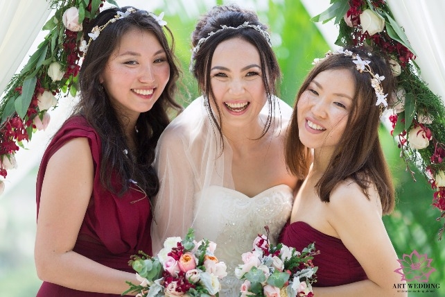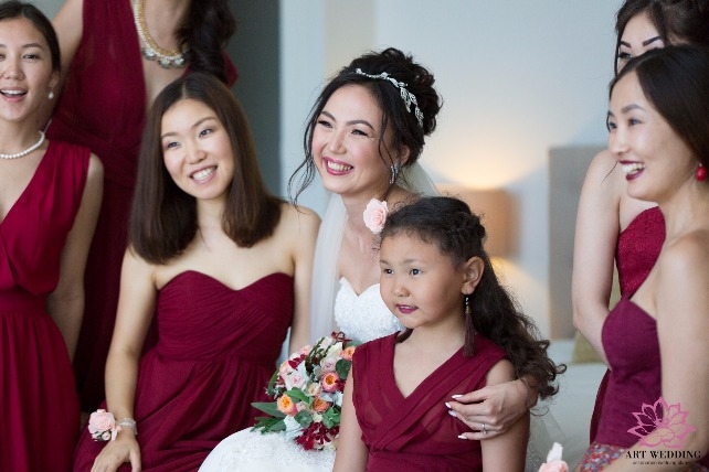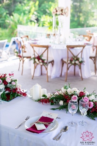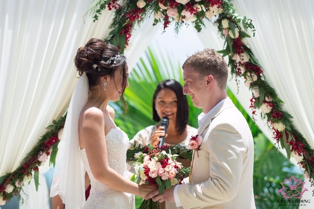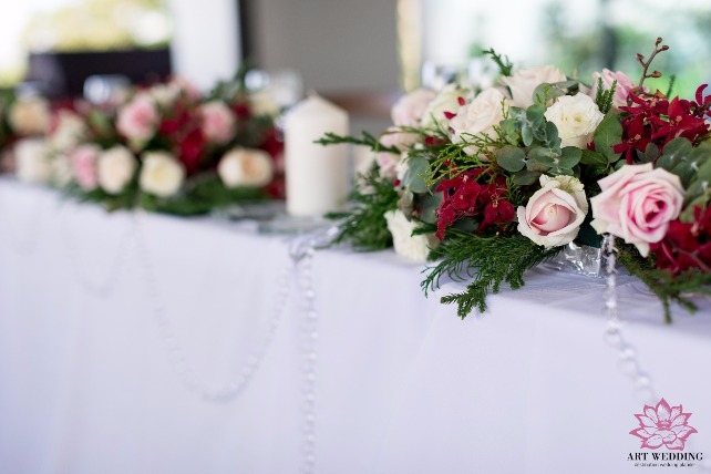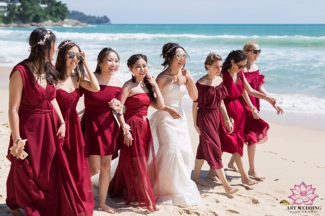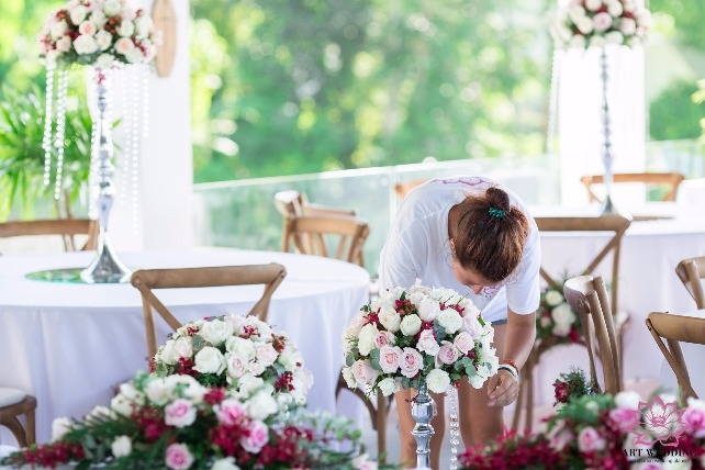 Сохранить 1 При нажатии на кнопку,статья сохранится в разделе"Закладки" в личном кабинете. Поделиться: Сохранить 1 При нажатии на кнопку,статья сохранится в разделе"Закладки" в личном кабинете. Организация свадьбы Свадьба в королевстве Таиланд: от мечты к реальности 30 октября 2017 2468 0 С наступлением осени все больше пар мечтает о яркой тропической свадьбе. Теплая солнечная погода без какого-либо намека на проливной дождь, обмен клятвами под шум прибоя, пение птиц и аромат экзотических цветов… Что может быть лучше? Благодаря свадебному агентству Art Wedding Phuket, у нас есть уникальная возможность заглянуть за кулисы подготовки и организации такой свадьбы на Пхукете — одном из самых популярных среди молодоженов островов Таиланда. Что же необходимо, чтобы свадьба за границей прошла на ура, какие именно задачи решают свадебные специалисты и что же скрыто от глаз невесты, жениха и их гостей? Скорее узнайте на примере одного из самых красочных торжеств, организованных командой агентства в этом году для прекрасной пары — Джереми и Оксаны. Рассказывают сами организаторы! Дата свадьбы: 3 июня 2017 года. Локация: Villa Zavier, Пхукет (Таиланд). Стиль свадьбы: Тропическая марсала. Количество гостей: 45. Команда специалистов: Было задействовано порядка 15 человек: организаторы, декоратор, флористы, два координатора, стилисты, инженеры по звуку и свету. Пожелания пары На подготовку свадьбы с момента согласования всех деталей у нас ушло около 3 месяцев. С парой мы общались исключительно по телефону и видеосвязи, а встретились уже за несколько дней до свадьбы непосредственно на площадке. У Оксаны и Джереми уже было общее представление о том, какой именно они видят свою свадьбу. Мы совместно разработали концепцию будущего торжества, обсудили множество важных деталей, ничего не упуская из виду, — от свадебных образов, цвета и стиля церемонии до флористического оформления пространства и блюд праздничного ужина. А так как жених Джереми — шеф-повар одного из пятизвездочных отелей, совсем неудивительно, что он захотел самостоятельно разработать меню. Забежим наперед, но скажем, что наша кейтеринг-служба с мастерством справилась с поставленной задачей! Чтобы пара ни о чем не беспокоилась во время подготовки, мы каждый день созванивались и обсуждали все пожелания. К примеру, главным пожеланием пары было то, чтобы все смотрелось органично и детали декора вписывались в стиль самой локации. Кроме того, невеста хотела, чтобы ее подружки были в платьях цвета марсала. Для того чтобы все выглядело гармонично, мы добавили также этот цвет в оформление столов банкетного зала, арки и всего пространства. Свадебное агентство Art Wedding Phuket было основано в 2012 году. 10 лет мы занимались ивентами в России, а когда переехали в Таиланд, продолжили организовывать мероприятия в формате свадеб. Начинали с небольших церемоний, но за пару лет выросли в агентство с широким выбором услуг. Наше главное отличие от других компаний в том, что для нас нет ничего невозможного: если у вас есть какие-то креативные пожелания, мы обязательно их реализуем. А еще можем гарантировать эксклюзивность вашей свадебной церемонии! Выбор площадки Для празднования своего знакового момента жизни Оксана и Джереми рассматривали несколько подходящих вилл, отталкиваясь при выборе в первую очередь от шикарного вида. 