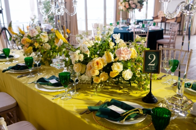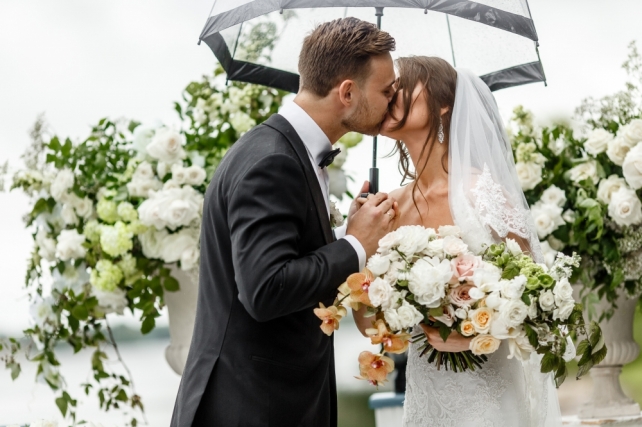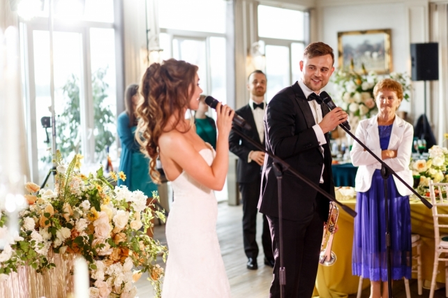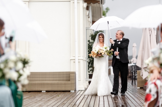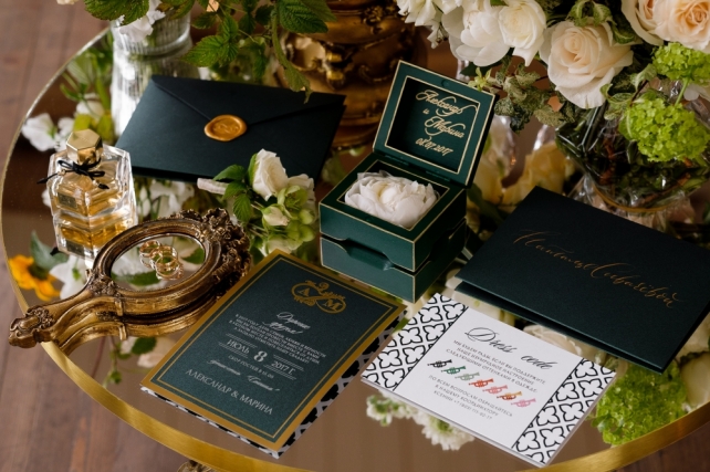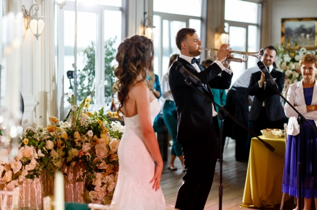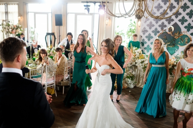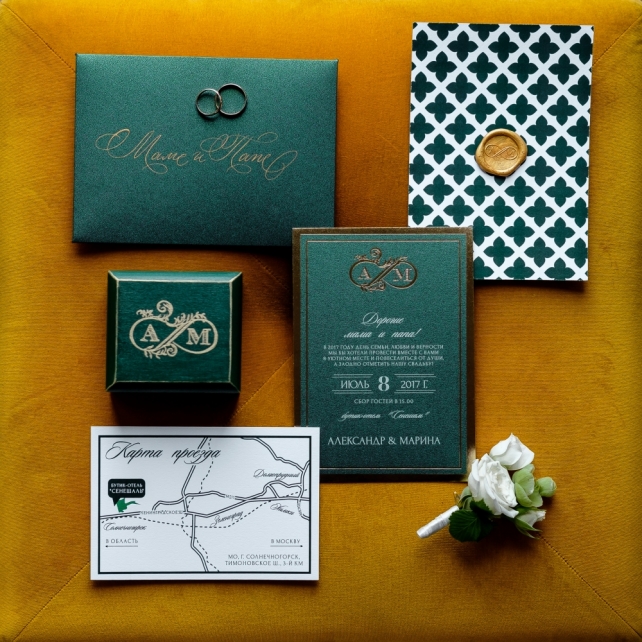 Сохранить 3 При нажатии на кнопку,статья сохранится в разделе"Закладки" в личном кабинете. Поделиться: Сохранить 3 При нажатии на кнопку,статья сохранится в разделе"Закладки" в личном кабинете. Свадьбы Грани изумруда. Свадьба Марины и Александра 29 ноября 2017 4637 2 Цвет Зеленый Стиль Винтаж Сезон Лето Место Москва Цвет Зеленый Стиль Винтаж Сезон Лето Место Москва Свадебный организатор:Carpe Diem Фотограф:Алексей Малышев Видеооператор:NOR.WED Декор:FLOWERBAZAR STUDIO Ведущий:Михаил Белянин Торт:Shevlyagin Cakes Couture Полиграфия:Maria Kirvas Другие:Onehappymoment Другие:I.Sitnikova ИДЕЯ И КОНЦЕПЦИЯМарина и Саша познакомились на первом курсе Юридического факультета, но первые годы оставались просто друзьями. Переломным моментом стала поездка Саши в Турцию, куда он сюрпризом отправился вслед за ней всего с 14 долларами в кармане. Такой поступок покорил Марину и спустя несколько лет она сказала ему «Да».Когда ребята пришли к нам, они находились под впечатлением от фильма «La La Land»: им нравилось настроение и атмосфера этой ленты. Кроме того, Саша увлекался музыкой – мог прочитать рэп, а также сыграть на трубе, а Марина очень любила петь. При этом свою свадьбу они видели достаточно классической, с винтажными деталями. Также на первой встрече Марина упомянула, что ей очень нравится изумрудный цвет.Так у нас родилась концепция «Грани изумруда», очень благородная и стильная.ОФОРМЛЕНИЕПоскольку был выбран очень светлый зал, в оформлении было решено разбавить изумрудный цвет оттенками охры, которые добавили тепла и уюта. Также важным решением стало сделать смешанную рассадку: декораторы украсили длинные столы скатертями цвета охры, низкими композициями, хрустальными канделябрами, а также изумрудными бокалами и салфетками. Круглые столы, в свою очередь, были накрыты изумрудными скатертями, их украшали шикарные высокие композиции.При этом зона церемонии была оформлена более классически - в белых цветах. Четыре крупные композиции возвышались на подиуме с монограммой пары.Специально для свадьбы были разработаны многие детали - полиграфия, шкатулки для колец и клятв, короб денег, а также книга пожеланий.СВАДЕБНЫЙ ДЕНЬ Поскольку свадьба проходила 8 июля в День семьи, любви и верности, ребята придумали хэштег, позднее давший название всей свадьбе «День семьи, трубы и нежности». Несмотря на дату, погода в этот день была совсем не летняя: +11 градусов и дождь. Поэтому было решено перенести утренние сборы невесты и welcome-зону в зал, хотя саму церемонию провели на улице: заранее были куплены изумрудные пледы, как подарки гостям, а также арендованы белые зонты.Важно отметить, что такая погода нисколько не испортила настроения пары и гостей - все находили в отличном настроении и по-настоящему веселились в течение всего дня!Друзья приготовили множество сюрпризов, как и сами молодожены: жених прочитал невесте песню в жанре рэп, а сама невеста подготовила танец с подругами под аккомпанемент саксофона. Кроме того, сам первый танец оказался необычным: сначала ребята спели вместе песню Фрэнка Синатры "L.O.V.E.", при этом жених также исполнил партию трубе, а затем мелодия сменилась на более веселую, и ребята взорвали зал своим зажигательным танцем. В конце вечера в зоне церемонии появился шикарный изумрудный свадебный торт, который стал по-настоящему прекрасным завершением праздника. Сохранить 0 При нажа