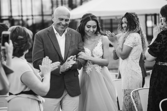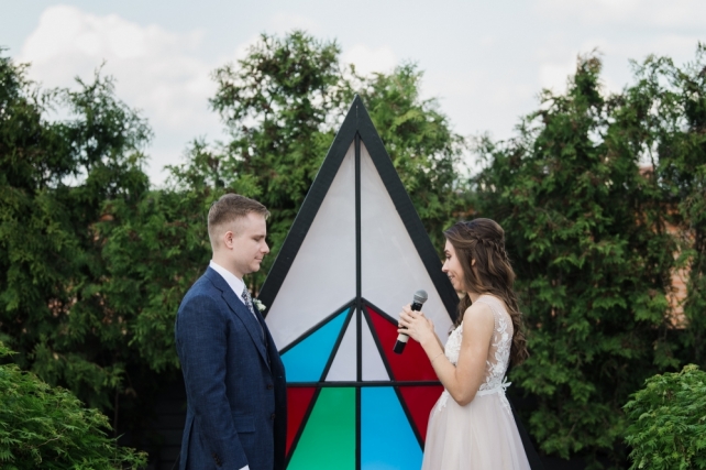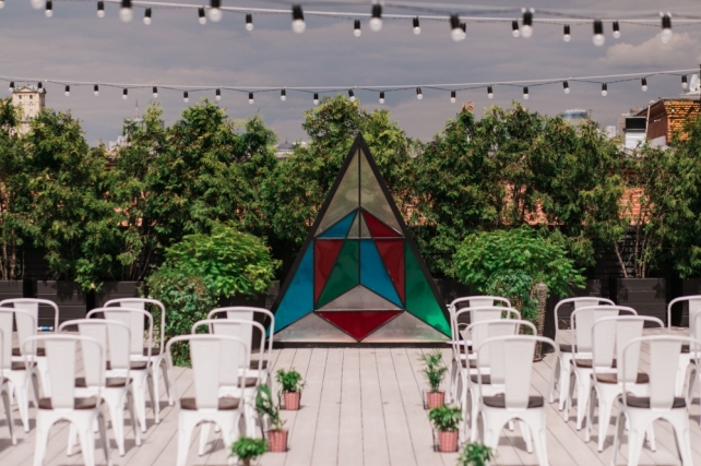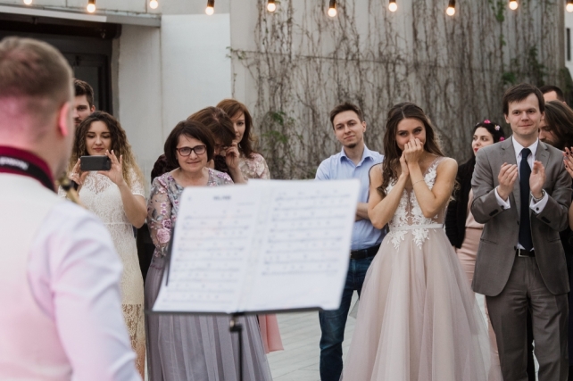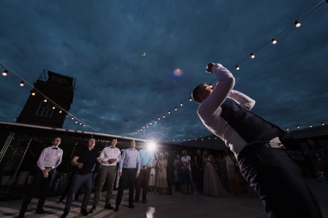 Сохранить 5 При нажатии на кнопку,статья сохранится в разделе"Закладки" в личном кабинете. Поделиться: Сохранить 5 При нажатии на кнопку,статья сохранится в разделе"Закладки" в личном кабинете. Свадьбы Яркая геометрия: свадьба на крыше 03 декабря 2017 4006 0 Цвет Зеленый Стиль Современная Сезон Лето Место Москва Цвет Зеленый Стиль Современная Сезон Лето Место Москва Свадебный организатор:Feerique Event & Emotions Концепция:Feerique Event & Emotions Декор:Feerique Event & Emotions Фотограф:Артем Виндриевский Фотограф:Дмитрий Горбунов Видеооператор:NOR.WED Ведущий:Андрей Негинский Ресторан:Банкетный комплекс ШЕЛК История парыНас познакомил общий близкий друг — мой одногруппник и Митин одноклассник. Все началось с легких, ни к чему не обязывающих отношений и привело к настоящей любви. Спустя несколько лет и множество событий, которые укрепили наши отношения, на Новый 2016 год Митя сделал мне предложение в кругу семьи — попросил моей руки у папы, что было для меня полной неожиданностью.Подготовка к свадьбеПервые месяца 2 после предложения мы вообще ничего не делали, только решили, что свадьба будет в начале лета. Все подруги суетились и задавали кучу вопросов, а я ничего конкретного не могла ответить. Мы решили, что нужно выбрать организатора свадьбы, собрали несколько вариантов в интернете, начали с ними встречаться.Féerique Event & Emotions были первыми, после мы общались еще с тремя организаторами, но все равно вернулись к ним — нам понравился их современный подход, чувство юмора и легкость в общении, но решающим критерием для нас стало их портфолио. Мне кажется, при выборе организаторов две самые главные вещи — это как раз портфолио работ, многие из которых вас цепляют, и взаимопонимание.Выбор площадкиПосле того, как мы определились с организаторами, я больше всего беспокоилась насчет подбора площадки, потому что, как выяснилось, хорошие места очень быстро занимают на все удобные даты лета. Так что советую выбрать и забронировать площадку как можно раньше и потом в спокойном режиме заниматься всем остальным.Мы рассматривали варианты за городом и рестораны с террасами и верандами. А потом мы побывали на крыше БК «Шелк» — «Зимний сад», и это была любовь с первого взгляда: большая площадь, половина которой — крытый зал, а другая — открытая просторная терраса на крыше с растениями в кадушках и вьюнками по стенам.Концепция свадьбыЧто касается стиля и декора свадьбы, это была для нас настоящая головная боль, так как, выбрав общее направление декора, мы никак не могли определиться с деталями. И тут на помощь снова пришли организаторы. Во многих вопросах я просто просила их выбрать тот вариант, который они считают более выигрышным, и ни секунды не сомневалась, что нам понравится.В итоге мы пришли к легкой и воздушной стилистике в цветах акварельной гаммы и геометричным деталям, а в качестве арки для церемонии у нас была конструкция в виде треугольника с цветными вставками. При планировании рассадки гостей мы решили, что точно не хотим сидеть отдельно на свадебном «пьедестале», и придумали интересный ход: за каждым столом были добавлены 2 места с табличками «Bride» и «Groom», и в течение мероприятия мы пересаживались и смогли по очереди пообщаться с каждым столиком.День свадьбыДень нашей свадьбы был одним из самых счастливых и волшебных в нашей жизни. И это чистая правда. Накануне мы ночев