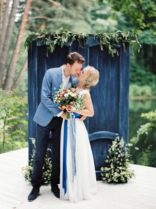Сохранить 2 При нажатии на кнопку,статья сохранится в разделе"Закладки" в личном кабинете. Поделиться: Сохранить 2 При нажатии на кнопку,статья сохранится в разделе"Закладки" в личном кабинете. Свадьбы Свадьба Лены и Кирилла в стиле полотен Клода Моне 11 декабря 2017 4434 0 Цвет Синий Стиль Эко-стиль Сезон Лето Место Москва Цвет Синий Стиль Эко-стиль Сезон Лето Место Москва Свадебный организатор:Carpe Diem Фотограф:Александр Калинин Декор:lollipops decor Ведущий:Фёдор Кузнецов Торт:Zinkwhite Макияж и прическа:Яна Бузычкина Другие:Onehappymoment ИДЕЯ И КОНЦЕПЦИЯЛена и Кирилл – пара, которая ценит природные цвета и естественность, поэтому было решено использовать в свадебном оформлении натуральную палитру: зеленый, бежевый, оттенки дерева, а главным цветом стал любимый цвет пары – глубокий синий. Важным вдохновением для концепции свадьбы послужило кольцо, которое Кирилл подарил Лене во время помолвки. Кольцо Frey Wille из коллекции «Клод Моне» олицетворяет любовь пары к импрессионизму – так именно этот стиль живописи стал одним из важных лейтмотивом свадьбы.ОФОРМЛЕНИЕ СВАДЬБЫДля зоны церемонии мы выбрали символ дверей как вход в новую жизнь. Двери были изготовлены специально для этой свадьбы. Декораторы создали неровную структуру поверхности, выкрасив двери крупными мазками и немного состарив. В итоге зона церемонии стала также фотозоной, где гости с удовольствием фотографировались весь свадебный день.Оформление фона за столом молодоженов было выполнено в стиле картин импрессионизма: плавный переход цвета от светло-серого к темно-синему получился благодаря кропотливой работе художника. Серебристая фактурная скатерть и природная сервировка стола стали идеальным дополнением друг друга. Столы гостей были украшены темно-синими скатертями и светлыми цветочными композициями. Каждый стол был назван именем дерева, а гостям в подарок были подготовлены именные камушки, расписанные каллиграфом.ПРАЗДНИЧНЫЙ УЖИНСразу после церемонии гостей пригласили в зал, прозрачные стены которого открывали вид на лес. Когда вышло солнце, все вокруг заиграло красками, создав неповторимую атмосферу волшебства.В перерывах гости охотно проводили время на улице, общаясь и наслаждаясь видами, а во время банкета веселились от всей души.Когда стемнело, лес преобразился тёплым светом от множества ретро-лампочек, а в конце ужина появился потрясающий торт, выполненный в технике омбре, повторяющий рисунок на заднике за столом молодоженов.В завершение вечера все гости вышли на улицу и запустили светящиеся воздушные шары в честь прекрасной пары Лены и Кирилла. Сохранить 1 При нажатии на кнопку,фото сохранится в коллекциив личном кабинете. Carpe Diem Организация свадьбы Сохранить 1 При нажатии на кнопку,фото сохранится в коллекциив личном кабинете. Свадьба Лены и Кирилла в стиле полотен Клода Моне Показать описание Свадебный организатор: Carpe Diem Фотограф: Александр Калинин Декор: lollipops decor Ведущий: Фёдор Кузнецов Торт: Zinkwhite Макияж и прическа: Яна Бузычкина Другие: Onehappymoment Сохранить 0 При нажатии на кнопку,фото сохранится в коллекциив личном кабинете. Carpe Diem Организация свадьбы Сохранить 0 При нажатии на кнопку,фото сохранится в коллекциив личном кабинете. Свадьба Лены и Кирилла в стиле полотен Клода Моне Показать описание Свадебный организатор: Carpe Diem Фотограф: Александр Калинин Декор: