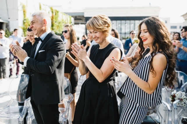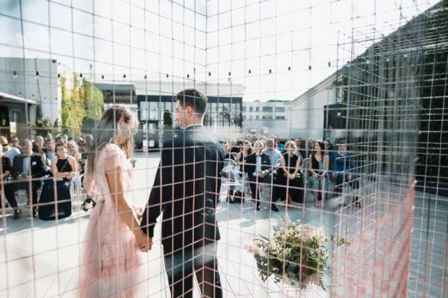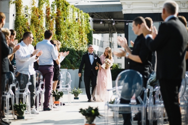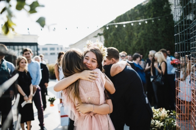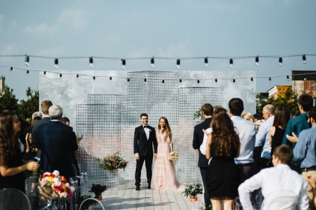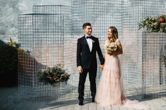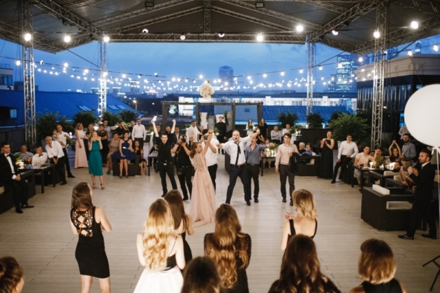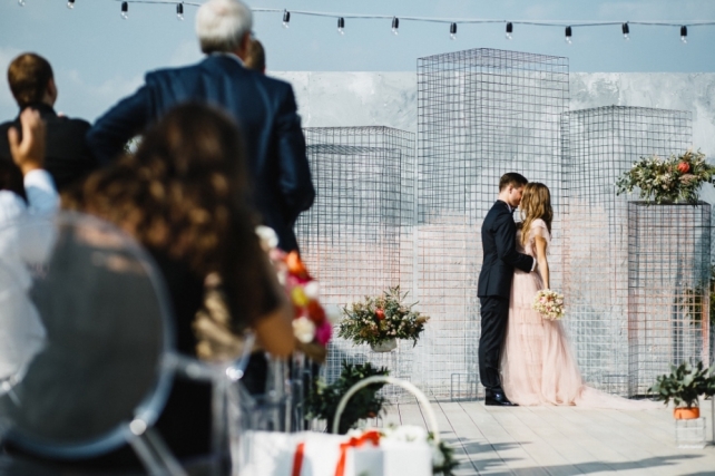 Сохранить 2 При нажатии на кнопку,статья сохранится в разделе"Закладки" в личном кабинете. Поделиться: Сохранить 2 При нажатии на кнопку,статья сохранится в разделе"Закладки" в личном кабинете. Свадьбы Урбан на крыше : свадьба Миры и Ивана 22 января 2018 3899 0 Цвет Серый Стиль Современная Сезон Лето Место Москва Цвет Серый Стиль Современная Сезон Лето Место Москва Фотограф:Желов Егор Видеооператор:Вильдан Рейнов Ведущий:Маркевич Максим Декор:Feerique Event & Emotions Свадебный организатор:Feerique Event & Emotions Концепция:Feerique Event & Emotions Ресторан:Банкетный комплекс Шелк Шоу-программа и Артисты:Radio Kamerger Флорист:Wood and Bloom История парыЗабавно, но сейчас кажется, что наш медовый месяц случился еще до свадьбы и предложения. Через несколько дней нашим отношениям исполнится 5 лет, мы после ночного восхождения на небезызвестный Батур на о. Бали. И совсем ничего не предвещает романтики, ведь с нами поднимаются еще около 100 туристов.Рассвет на вулкане рисковал остаться самой дежурной экскурсией, которую мы посетили за все время пребывания но острове, если бы с первыми лучами солнца мы все же не уединились… А дальше — самое настоящие предложение-сюрприз, слезы счастья и согревающий чай. Спустившись, я похвасталась колечком Соло, нашему балийскому другу. Он расплылся в улыбке и заметил, что ночью была полная луна, а значит, мы с Ваней вместе на века.Подготовка к свадьбеМы сразу определились, что хотим видеть на свадьбе всех родных и друзей, поэтому решили проводить ее в Москве. В феврале мы уже искали ребят, которые организуют наш праздник — за время наших отношений мы побывали не на одной свадьбе, и примерно представляли объем работ, с которым не справились бы без профессиональной помощи.До встречи с организаторами мы, конечно, определили бюджет, но не избежали споров. Все дело в том, что в течение месяца я объясняла жениху, что такое «красиво», а он рассказывал мне о том, что такое «дорого». И это, повторюсь, при уже определенном нами бюджете. Спасибо Ване за то, что услышал меня и пошел навстречу при выборе визуальной составляющей нашего торжества.Мне, как человеку, который оценивает любого вида развлекательные мероприятия в первую очередь визуально, достаточно легко было выбрать организаторов. Картинка нравится, проекты очень оригинальные, разные и эмоциональные, работа с репортажными фотографами — это ли не повод встретиться? Когда в течение 10 минут при первой встрече задается вектор, и вам он близок — это повод продолжать работать вместе, доверять и приятно проводить время за креативом.Концепция свадьбыСтилистику мы выбирали долго, не могли остановиться на чем-то конкретном. Хотелось, чтобы было и красиво, и стильно, и похоже на нас. Когда Алиса предложила нам вариант сварных конструкций «высоток» из сетки рабицы и бетон — нам очень понравилось.Очень смелый эксперимент, который, на мой взгляд, нам удался. Получилась такая летняя урбанистическая история. А цветовая гамма родилась сама собой, когда я увидела свое свадебное платье и сразу подумала: «Это оно!». Мы взяли за основу пудровый оттенок, добавили серый и бирюзу.День свадьбыНаш день прошел в легкой и непринужденной атмосфере. Мы постарались расслабиться и не думать ни о чем. Сборы, прогулка… и вот мы уже волнуемся перед церемонией, и я нервно перечитываю свою клятву. Эмоции просто переполняли!Банкет мы реш