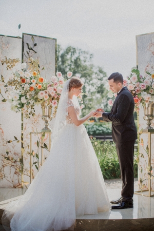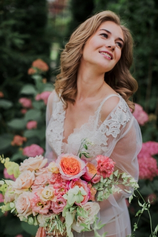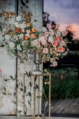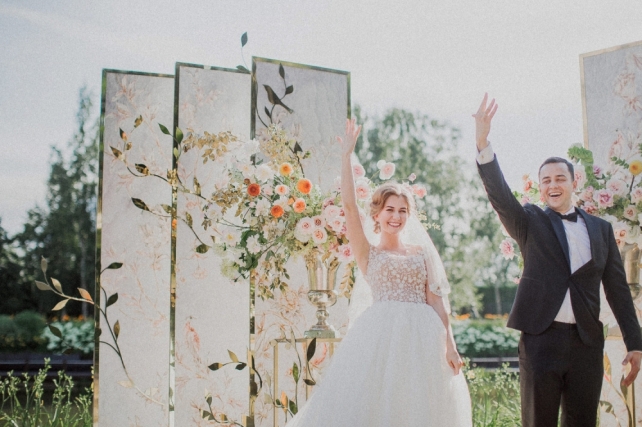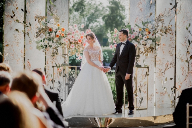 Сохранить 2 При нажатии на кнопку,статья сохранится в разделе"Закладки" в личном кабинете. Поделиться: Сохранить 2 При нажатии на кнопку,статья сохранится в разделе"Закладки" в личном кабинете. Свадьбы Преображение. Свадьба Анастасии и Андрея 05 февраля 2018 4622 2 Цвет Персиковый Стиль Классика Сезон Лето Место Москва Цвет Персиковый Стиль Классика Сезон Лето Место Москва Свадебный организатор:MHoliday wedding Концепция Преображения родилась у невесты в первые дни после того, как жених сделал ей предложение — одним этим словом она отражала саму суть истории их отношений. Порой любовь творит настоящие чудеса, вдыхая в души людей новый смысл, полностью меняя их мировоззрение — она преображает их как внешне, так и внутренне.Любовь — это как разгар весны — когда птицы поют громче, чем обычно, когда запахи оживающей природы так ярки, когда шумят ручьи, когда зелень так радует глаз — все органы чувств обостряются и пытаются вдохнуть и почувствовать максимум прекрасного.ДекорВ ходе подготовки к свадьбе мы старались сделать все элементы свадебного вечера максимально индивидуальными, чтобы они стали самим отражением вкусов и предпочтений пары. Анастасия — очень нежная и природная девушка, поэтому в качестве центральных элементов были выбраны птицы и ветви деревьев. За основу был взят стиль шинуазри, в котором выполнена комната в доме невесты.Зона церемонии была задумана очень элегантной и легковесной — на подиуме с золотой окантовкой возвышались имитирующее панели ширмы панно с изображением диковинных птиц, каждый элемент которого имел глубокий символический смысл. Специально для данного проекта дизайнерами-иллюстраторами и декораторами были отрисованы эскизы узоров согласно пожеланиям пары. Особым украшениям стали пышные флористические композиции с ароматными розами, благоухание которых ощущалось даже на улице, а стойки с декоративными золотыми ветвями поддерживали общую стилистику.Декор зала ресторана был выполнен в аналогичной зоне церемонии манере — богатая элегантная флористика с ароматными цветами, сложное сочетание оттенков и цветов. Фон президиума представлял собой многослойную и многоплановую конструкцию, за счет чего создавался эффект объема. Металлический блеск окантовки панно и текстур фона придавал декору особую торжественность.ПрограммаОсновной задачей при создании программы вечера было затронуть сердца гостей, чтобы они чувствовали руку пары в каждом моменте, в каждой детали, и почувствовали себя одной большой семьей. В тот день мы еще раз убедились в том, что незабываемый вечер можно сделать и без грандиозных финансовых вложений — стоит только дать волю творческому началу пары и всей команды.В зоне велком работал художник-силуэтист, который вырезал профили всех желающих гостей и вклеивал их в красивые карточки, дизайн которых специально разрабатывался для свадьбы Насти и Андрея. Бармен готовил именные коктейли пары, параллельно раскрываю гостям секреты приготовления вкуснейших коктейлей. Также гости могли оставить добрые пожелания на память паре, запечатав их в конверты с сургучной печатью с монограммой ребят. Для сладкоежек работала станция с жаренным мороженным, и каждый желающий мог приготовить его себе сам или посмотреть мастер-классот профессионального мороженщика.Специально для гостей п