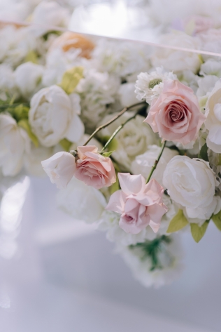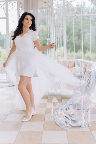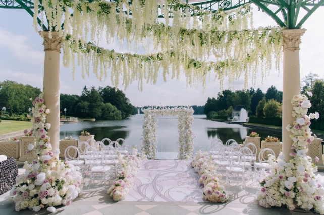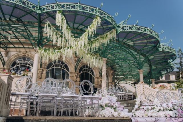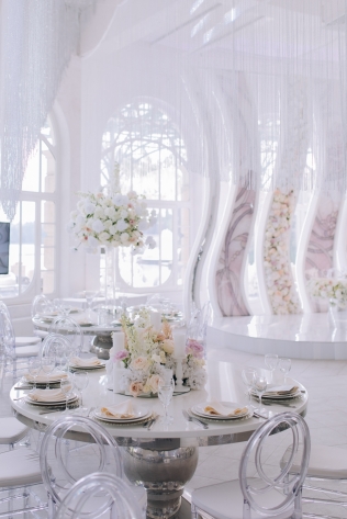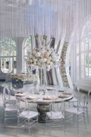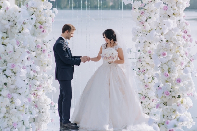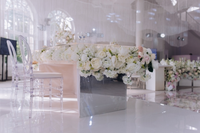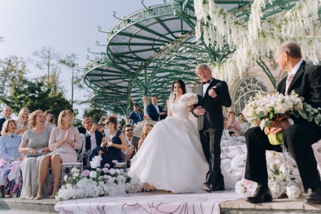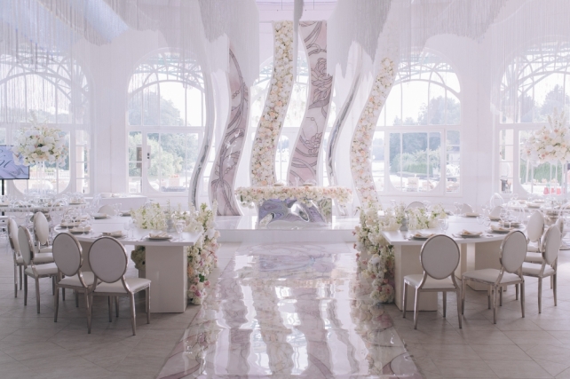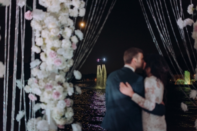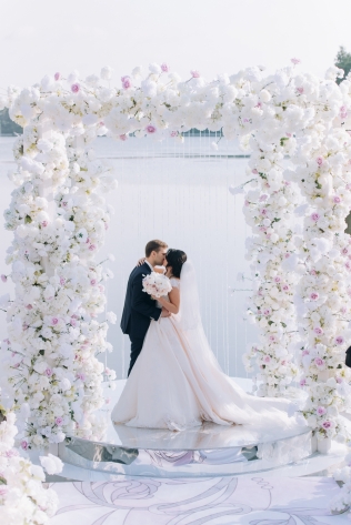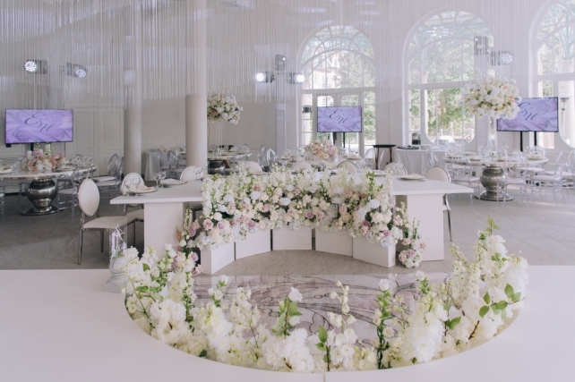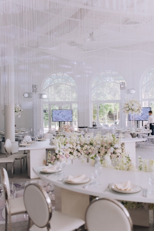 Сохранить 1 При нажатии на кнопку,статья сохранится в разделе"Закладки" в личном кабинете. Поделиться: Сохранить 1 При нажатии на кнопку,статья сохранится в разделе"Закладки" в личном кабинете. Свадьбы Cвадьба Ильи и Лены "Линии судеб" в ресторане "Вилла Ротонда" 11 февраля 2018 3258 0 Цвет Розовый Стиль Современная Сезон Лето Место Москва Цвет Розовый Стиль Современная Сезон Лето Место Москва Свадебный организатор:Студия Ольги Купцовой Декор:White Décor Фотограф:Максим Каренин Видеооператор:Виталий Сидоренко Ведущий:Александр Исмаилов Ресторан:Вилла Ротонда Шоу-программа и Артисты:кавер-группа Впечатлительные люди Шоу-программа и Артисты:шоу "Мираж" Торт:Cake&Cake Лена и Илья познакомились благодаря популярной социальной сети. Все началось с обсуждения нового фильма. Продолжилось на первом свидании в кафе, а завершилось счастливой свадьбой.Выбор площадки для свадьбы Ильи и Лены был одним из самых важных вопросов в организации этого проекта, так как было достаточно большое количество различных критериев, которым должно было соответствовать место торжества: загород, красивая ухоженная территория для прогулки, большой банкетный стационарный зал для более 10 гостей, панорамное остекление, а главное – площадка для церемонии с видом на воду! Выбор остановился на ажурной и изящной Вилле Ротонда в поселке Довиль, которая как раз стоит на берегу озера.В основу концепции легли линии судеб жениха и невесты, благодаря которым и состоялась их встреча, разожглась искра. Никогда не знаешь, где встретишь свою настоящую любовь. И история знакомства нашей пары яркое тому подтверждение.Вместе с декораторами мы вдохновлялись архитектурой ресторана «Вилла Ротонда», нам хотелось сохранить и подчеркнуть линии арочных окон главного зала, изящно продублировать их в силуэте арки и создать единую гармоничную стилистику свадьбы. Цветовую гамму выбрали нежную, добавили множество стеклянных элементов, которые так полюбились нашей невесте. В качестве центрального эффектного акцента дизайнеры разработали цветочный орнамент с замысловатыми линиями, такими же неповторимыми, как линии судьбы наших главных героев Лены и Ильи. В зале мы продолжили и развили тему линий, которые проросли с пола и поднялись наверх к панорамным окнам, при этом сохраняя прозрачность и не загораживая свет. Контуры линий обрамляли незаметные днем светодиодные ленты, которые включили вечером, получилась очень эффектная подсветка. Для Лены и Ильи был изготовлен зеркальный стол с прозрачной столешницей, сквозь которую была видна роскошная флористика. Стол расположили на подиуме для хорошего обзора, так как на ужине собралось более 100 гостей и всем хотелось видеть пару. В центральной части зала расположились два длинных дугообразных стола для самых близких. Остальные гостевые столы круглой формы на массивном металлическом основании мы также не стали покрывать текстилем. В оформлении зала мы соединили нежную флористику, интересный цветочный орнамент, современную мебель и декорации. У Лены было 3 образа. Первый – легкий утренний на сборах в стеклянном оранжерее в окружении прозрачных деталей. Второй – образ принцессы в роскошном пышном платье с длинной фатой, как сама себе его рисовала Лена. Третий – вечерний в элегантном платье, сидящем по фигуре. За один день невеста иногда переод