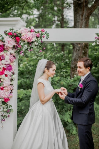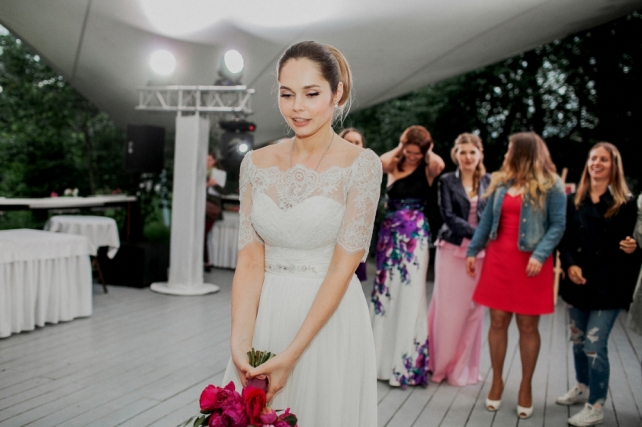 Сохранить 0 При нажатии на кнопку,статья сохранится в разделе"Закладки" в личном кабинете. Поделиться: Сохранить 0 При нажатии на кнопку,статья сохранится в разделе"Закладки" в личном кабинете. Свадьбы Яркая свадьба Полины и Николая на природе 18 февраля 2018 3246 0 Цвет Розовый Стиль Классика Сезон Лето Место Москва Цвет Розовый Стиль Классика Сезон Лето Место Москва Свадебный организатор:Студия Ольги Купцовой Флорист:Ирина Морозова Фотограф:Анна Коздурова Торт:Тортольяно Ресторан:Веранда "Парус" отель "Fresh wind" Шоу-программа и Артисты:Ферджулян шоу Нежная, но при этом яркая и сочная розово-белая палитра, изысканная сервировка и романтичная церемония в лучших европейских традициях… Элегантная свадьба Николая и Полины — это настоящее вдохновение классикой!Коля и Полина знакомы со школы, но встретились и полюбили друг друга спустя только 15 лет после первого знакомства.Подготовка к свадьбе началась еще в январе. Николай с Полиной выбрали формат свадьбы загородом, чтобы избежать лишних разъездов в день торжества и иметь возможность организовать трогательную церемонию с сочной природой на фоне. Идеальным вариантом оказалась белоснежная веранда «Парус» в отеле «Fresh Wind».Самым сложным для Полины было определиться с цветовой гаммой свадьбы. Изначально с декоратором была проработана нежная цветовая палитра в розово-пудровых тонах, но буквально за месяц до свадьбы невеста поняла, что не хватает яркого цветового акцента! Так и появилась яркая, но в тоже время классическая концепция оформления.Так как мы придерживались концепции европейской свадьбы, образ невесты подчеркнуло элегантное гладкое платье из струящегося атласа, лаконичная прическа и макияж с цветными стрелками на глазах, который придал полную выразительность внешнему облику Полины.В волнительный день, который Коля и Полина провели в постоянной заботе друг о друге, погода была пасмурной и холодной, но в конечном итоге это даже еще больше сблизило всех гостей праздника. После красивой церемонии и поздравлений всем раздали уютные теплые пледы, ближе к вечеру зажгли свечи.Одним из запоминающихся моментов свадьбы стала подача свадебного торта. Полина решила сделать для Коли, давнего фаната «Звездных войн», сюрприз. Когда настало время свадебного десерта, в начале, как и полагается, под общие аплодисменты в зале появился красивый свадебный торт в цветовой гамме свадьбы, но когда его развернули другой стороной, зазвучала музыкальная тема из фильма и все увидели героев саги – Дарта Вейдера и Йоду. Это было здорово!Ну а ярким финалом вечера стало огненно-пиротехническое Ферджулян-шоу, в котором Полина и Коля приняли участие в руках с настоящими огнеметами! Сохранить 0 При нажатии на кнопку,фото сохранится в коллекциив личном кабинете. Студия Ольги Купцовой Организация свадьбы Сохранить 0 При нажатии на кнопку,фото сохранится в коллекциив личном кабинете. Яркая свадьба Полины и Николая на природе Показать описание Свадебный организатор: Студия Ольги Купцовой Флорист: Ирина Морозова Фотограф: Анна Коздурова Торт: Тортольяно Ресторан: Веранда "Парус" отель "Fresh wind" Шоу-программа и Артисты: Ферджулян шоу Сохранить 0 При нажатии на кнопку,фото сохранится в коллекциив личном кабинете. Студия Ольги Купцовой Организация свадьбы Сохранить 0 При нажатии на кнопку,фото сохранится в к