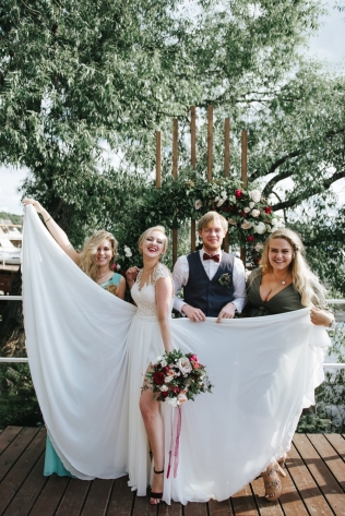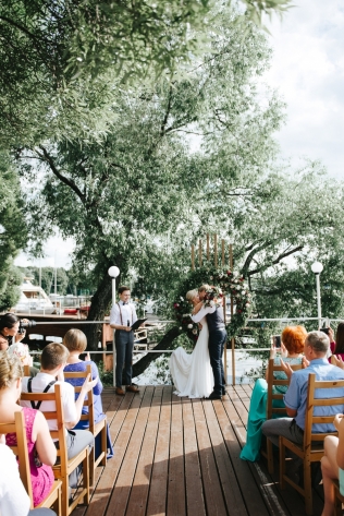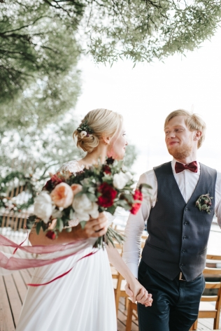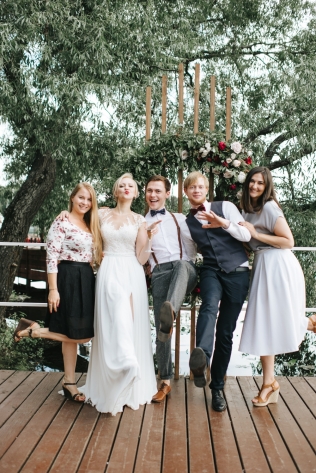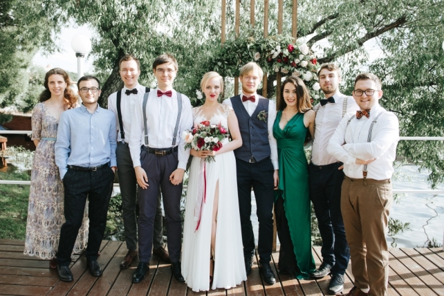 Сохранить 2 При нажатии на кнопку,статья сохранится в разделе"Закладки" в личном кабинете. Поделиться: Сохранить 2 При нажатии на кнопку,статья сохранится в разделе"Закладки" в личном кабинете. Свадьбы Rock my Wedding: свадьба в стиле рок-н-ролл 20 февраля 2018 5414 0 Цвет Красный Стиль Музыкальная Сезон Лето Место Москва Цвет Красный Стиль Музыкальная Сезон Лето Место Москва Свадебный организатор:Koroleva Event Фотограф:Зимарин Виталий Ведущий:Артем Маслов Декор:U&ME DECOR Макияж и прическа:Анна Морозова Торт:BiscuitiCo Уютное торжество и зажигательный рок-н-ролл — думаете, эти стили не сочетаются между собой? Эффектная свадьба Кристины и Никиты докажет, что это не так!История парыМы познакомились в университете, когда наши факультеты объединили в один. Какое-то время мы не знали друг друга лично и, наверное, не узнали бы, если бы не студенческая организация, где нас познакомили друзья.Где-то через год при странных обстоятельствах завязалось наше общение и милые переписки, а после и отношения, которые переросли в большую любовь. Через 3 года на огромном воздушном шаре, накануне моего дня рождения, Никита сделал предложение. Это было безумно красиво и нежно, и, конечно, я сказала: «Да!»Подготовка к свадьбеМы начали готовиться к торжеству примерно за полгода. Мы сразу же приняли решение нанять профессионалов, включая организатора свадьбы. По счастливому стечению обстоятельств мы познакомились с Машей и ее агентством Svadba Project. После первой встречи мы поняли, что это наш человек, и с легкостью доверились ей.Самым сложным для меня был выбор цветов и оттенков свадьбы. Для Никиты же самым сложным испытанием стал выбор площадки, причем по большей части из-за того, что ее стоимость в итоге немного превысила бюджет. Тем не менее, сама площадка понравилась нам с первого визита и очень подходила нам по духу.Опыт невестыБюджет свадьбы был довольно ограниченным, и по совету нашего организатора мы запланировали свадьбу на будний день – четверг. Благодаря этому мы получили приличные скидки от всех свадебных подрядчиков, включая площадку, что позволило нам сделать отличный праздник за приемлемую сумму.Концепция свадьбыОт организаторов: Идея свадьбы родилась мгновенно, она лежала на поверхности. Никита — участник рок-группы. Его страсть – игра на гитаре и барабанных установках, а вместе ребята часто посещают различные музыкальные фестивали. На первой же встрече ребята сообщили: «Нам нужно, чтобы на площадке были барабаны». Практически с первого знакомства сложилась идеальная картинка праздника и настроение свадьбы, которую мы назвали «Rock my Wedding».Невеста с самого начала говорила, что ей хочется видеть зелень и натуральные оттенки, но в день, когда декораторы презентовали разработанную концепцию, невесте захотелось «какого-то цвета, который отражает веселье». Немного поразмыслив, девочки предложили дополнить концепцию яркими ягодными оттенками. Это отражено в элементах декора, во флористике, а также в образе невесты.День свадьбыВесь день прошел на «ура»! Учитывая, что это лето было аномально дождливым и скудным на тепло, нам повезло, ведь с самого утра погода была чудесной. Хотя день был весьма утомительным и хлопотным для нас, вечер прошел в расслабленной и уютной атмосфере. Больше всего гостям запомнилось выступление группы, где играет Никита, а также игры на свеже