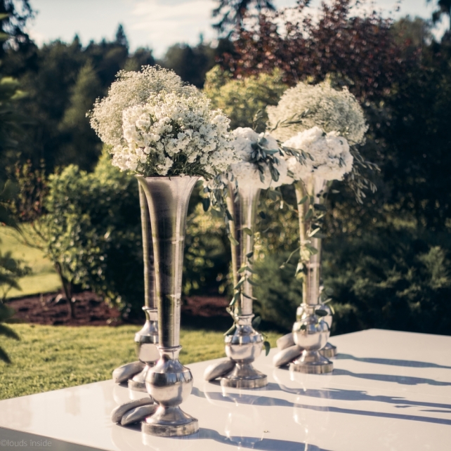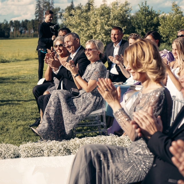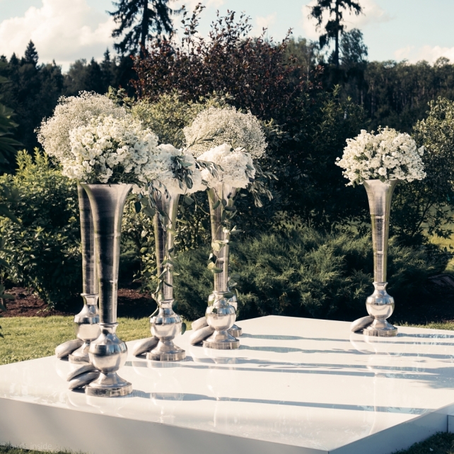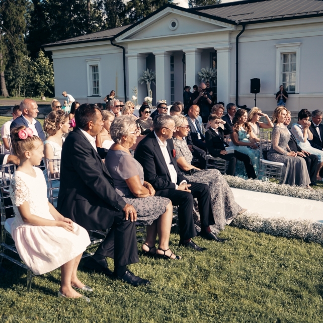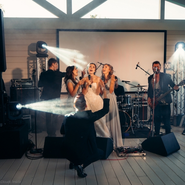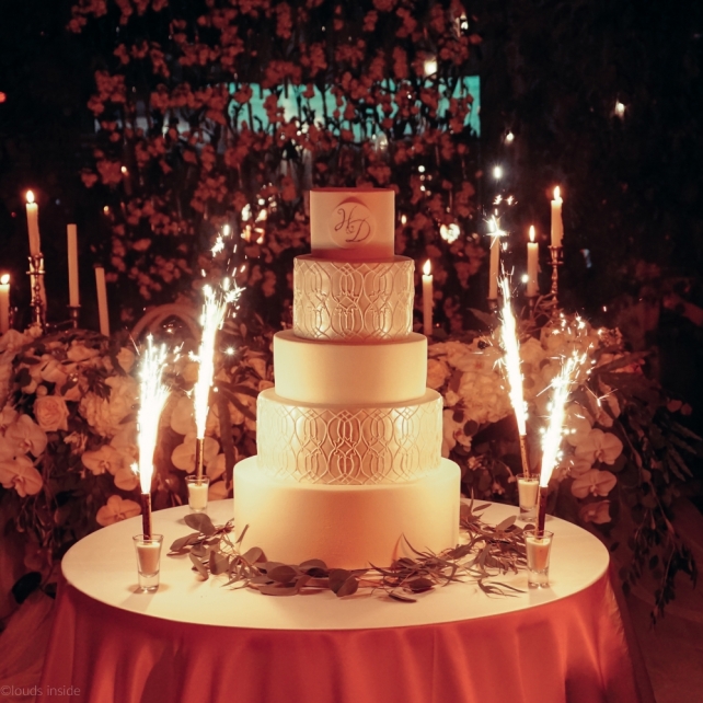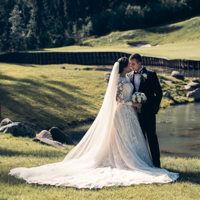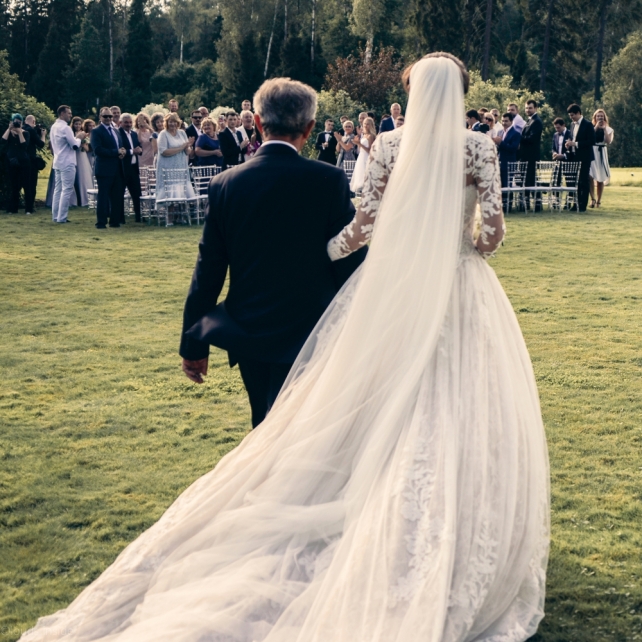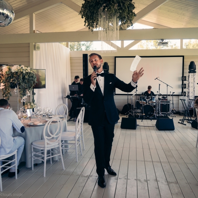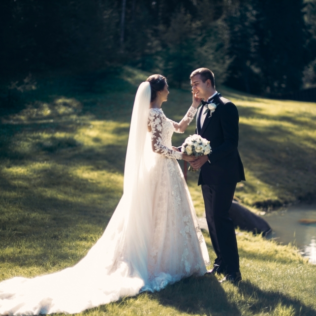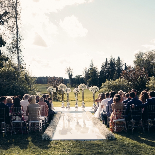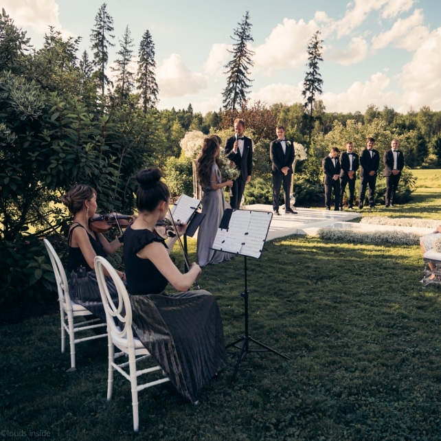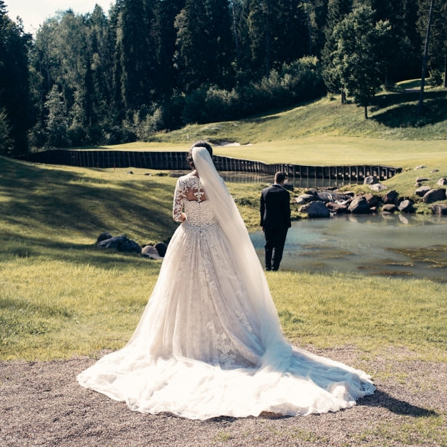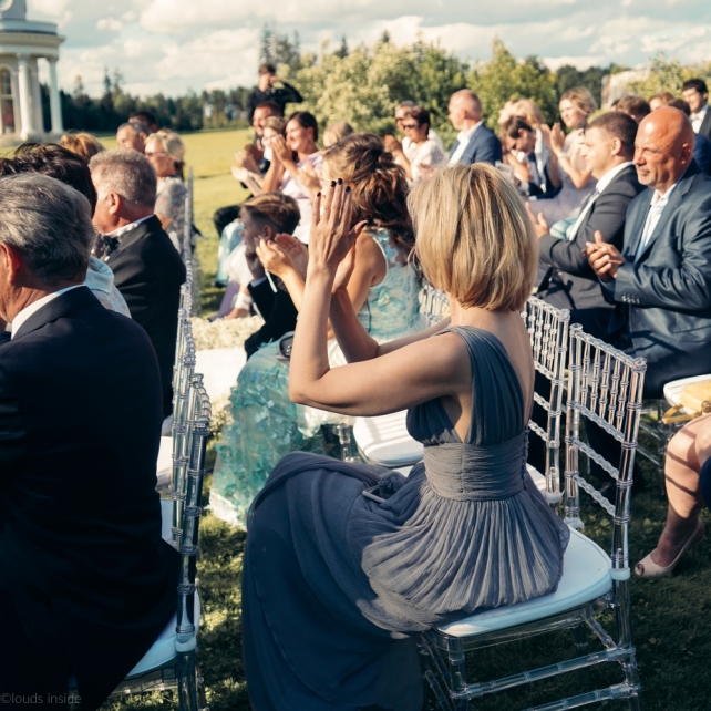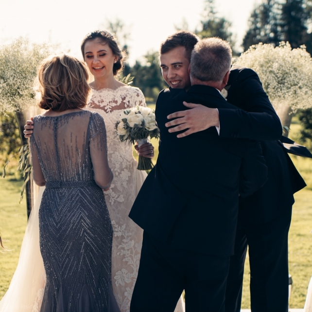 Сохранить 3 При нажатии на кнопку,статья сохранится в разделе"Закладки" в личном кабинете. Поделиться: Сохранить 3 При нажатии на кнопку,статья сохранится в разделе"Закладки" в личном кабинете. Свадьбы Big Classic 27 февраля 2018 3049 0 Цвет Белый Стиль Классика Сезон Лето Место Москва Цвет Белый Стиль Классика Сезон Лето Место Москва Фотограф:Clouds Inside Видеооператор:HRO.MOV video production Платье невесты:Pronovias Свадебный организатор:hbfriends.events Флорист:Зеленая Симфония Знакомство Мы с Никитой познакомились в Академии. 1 сентября 2011 года на торжественной линейке нам выдавали студенческие билеты. Я сразу приметила высокого и симпатичного парня в велюровом пиджаке. Но он был очень серьёзен и как-то не шел на контакт. Поэтому пришлось брать все в свои руки. Увидела, что он заполняет анкету на социальную карту, быстро выбросила свою, заполненную, и подошла поинтересоваться где же он ее взял. После этого началось наше общение, прогулки по ночному городу, разговоры по телефону до утра и романтичные вечера в кафе. Мы как-то сразу поняли, что во многом похожи, у нас общие интересы и одинаковые цели в жизни. На этом и сошлись - две половины одного целого. Предложение 20 декабря я, ничего не подозревая, собиралась на День Рождения мамы. По приезду в ресторан, Никита попросил выйти на улицу, где меня ждал любимый плюшевый медведь Тедди, который передал открытку «Следуй за мечтой!». И сразу на саксофоне заиграла мелодия из нашего любимого фильма, прогремел салют, зажглись буквы в сердечке «Н+Д», а Никита встал на одно колено. До сих пор бегут мурашки, как вспоминаю его дрожащий голос и слегка трясущиеся руки с красной бархатной коробочкой. Да, на тот момент мы жили вместе уже 5 лет, но, тем не менее, было очень неожиданно и волшебно. Затем, на протяжении всей недели были различные сюрпризы: охапка шариков-сердечек утром, семейный ужин в честь помолвки, чудесный большой медведь, салют на берегу озера.Подготовка к свадьбе.Мы решили расслабиться и заняться подготовкой после Нового года. Я не из тех невест, которые заранее представляют, как будет выглядеть свадьба мечты, но фантазия у нас есть и мы с Никитой стали делиться своими мыслями и идеями. К счастью, во многом они были схожи. У нас было четкое понимание того, что мы хотим провести этот важный для нас день на природе, вдали от городской суеты, в окружении самых родных и близких. Для проведения торжества выбрали загородный гольф-клуб «Целеево» - нас устроили расположение, банкетное меню и возможность расселения всех наших гостей, поскольку отмечать мы собирались два дня. Виллы и шале в «Целеево Гольф и Поло Клубе» построены в уютном альпийском стиле, с большим количеством lounge зон, балконами с прекрасным видом, банкетным залом, библиотекой, кинотеатром, каминным залом, бильярдной, сауной и бассейном. А какая красота кругом летом, когда все цветет и гольф-поля поражают своим идеально зеленым и бархатным Грином.В цветовой гамме декора сомнений не было - белый и бело-алюминиевый (серебристый). Стиль - современная классика, в оформлении - только живые цветы. Хотелось чего-то красивого, легкого, но в тоже время - элегантного и торжественного. После выбора места и стиля свадьбы мы приступили к выбору ведущего, фотографа, видеографа, кавер групп, а параллельно ходили на занятия танцами.Платье я приобретала в Барселоне, которая известна оби
