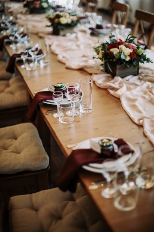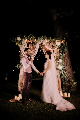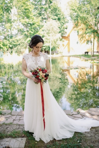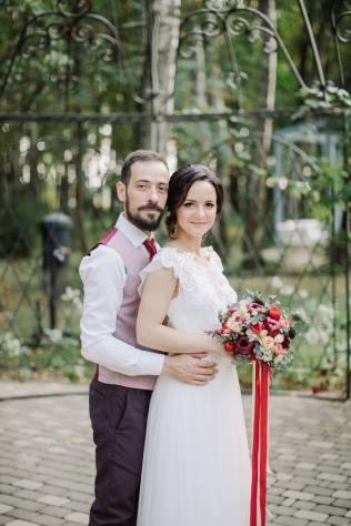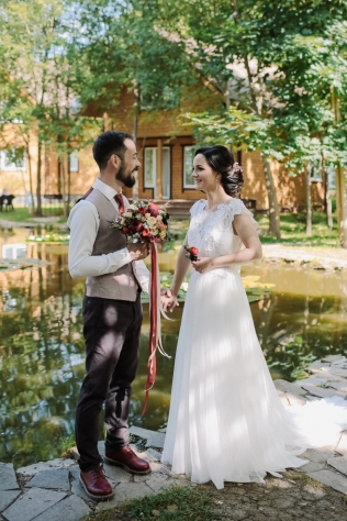 Сохранить 3 При нажатии на кнопку,статья сохранится в разделе"Закладки" в личном кабинете. Поделиться: Сохранить 3 При нажатии на кнопку,статья сохранится в разделе"Закладки" в личном кабинете. Свадьбы Надя и Леша. Романтика лесной глубинки. 05 марта 2018 3757 0 Цвет Красный Стиль Эко-стиль Сезон Лето Место Москва Цвет Красный Стиль Эко-стиль Сезон Лето Место Москва Свадебный организатор:Kate & Leo Декор:Caxapdecor Во время первой встречи с Надей и Лешей мы сразу определились с концепцией праздника: ребята хотели уютную свадьбу, вдали от суеты города с самыми близкими. При выборе площадки мы опирались на места в Подмосковье с возможностью уединения и полного единения с природой. И наш выбор заслуженно остановился на Прованс отеле "4 сезона" с его рестораном "Мираваль".При входе в зал ресторана находится чудесная просторная веранда, рядом с которой расположился живописный прудик с дружелюбными обитателями - черепахами:) А неподалеку простирается лужайка, которую мы задействовали во время церемонии.Цвета для оформления свадьбы были выбраны нежно пастельные: бежевый и персиковый, но с яркими акцентами бордового и марсала. Таким сочетанием хотелось подчеркнуть индивидуальность пары Нади и Леши: нежность невесты и брутальность жениха. И, конечно, невозможно обойти вниманием как тщательно ребята подошли к подбору своих образов, подчеркнув свой стиль множеством деталей.Во время сборов невесты и совместной прогулки пары удалось снять не только много красивых кадров, но и удивительно романтичный и трогательный SDE-ролик, который был показан гостям уже в конце праздника.На фотосессии присутствовал также лучший друг ребят, точнее подружка и практически член семьи, дружелюбная собачка Стефани.Подарки для гостей ребята делали своими руками, это было варенье из клубники, которую они с любовью собирали летом. Но на этом сюрпризы для гостей не закончились: в середине вечера каждый гость был награжден грамотой и забавным презентом. Про каждого была рассказана история, в связи с которой был выбран тот или иной подарок и номинация, что придало душевности вечеру.Букет Надя решила разыграть весьма необычным способом с помощью атласных лент. Получилось волнительно и в то же время очень позитивно.Завершением вечера была трогательная церемония у арки. Множество огоньков придало церемонии ночной магии, романтики и душевного тепла. И именно в этот момент в окружении самых дорогих и близких людей ребята сказали друг другу самые важные и главные слова. Сохранить 3 При нажатии на кнопку,фото сохранится в коллекциив личном кабинете. Kate & Leo Организация свадьбы Сохранить 3 При нажатии на кнопку,фото сохранится в коллекциив личном кабинете. Цвета: Категория: Букет невесты Надя и Леша. Романтика лесной глубинки Показать описание Свадебный организатор: Kate & Leo Декор: Caxapdecor Теги: Детали, утро невесты Сохранить 0 При нажатии на кнопку,фото сохранится в коллекциив личном кабинете. Kate & Leo Организация свадьбы Сохранить 0 При нажатии на кнопку,фото сохранится в коллекциив личном кабинете. Надя и Леша. Романтика лесной глубинки. Показать описание Свадебный организатор: Kate & Leo Декор: Caxapdecor Сохранить 1 При нажатии на кнопку,фото сохранится в коллекциив личном кабинете. Kate & Leo Организация свадьбы Сохранить 1 При нажатии на кнопку,фото сохранится в коллекциив личном кабинете. Надя и 