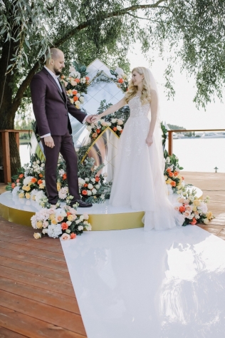 Сохранить 0 При нажатии на кнопку,статья сохранится в разделе"Закладки" в личном кабинете. Поделиться: Сохранить 0 При нажатии на кнопку,статья сохранится в разделе"Закладки" в личном кабинете. Свадьбы Свадьба Лены и Димы: "Люблю тебя как до космоса и обратно" 27 марта 2018 3549 1 Цвет Персиковый Стиль Современная Сезон Осень Место Москва Цвет Персиковый Стиль Современная Сезон Осень Место Москва Свадебный организатор:Kate & Leo Декор:Caxapdecor Лена и Дима познакомились на свадьбе общего друга в 2014 году, и потом уже через год день рождения женатого друга снова свёл ребят. На празднике их в шутку "поженили", а когда разъезжались по домам, Дима сказал, что Лена может подавать заявление на Госуслугах.⠀Через полтора года отношений Дима пригласил Лену в ресторан "Высота" с панорамным видом столицы и сделал предложение, Лена конечно же согласилась! В обычной жизни эти ребята дарят улыбки друг другу и окружающим, любят путешествовать и читать. Лена любит бальные танцы и сноубординг. Дима - футбол. Классическая современная пара, в которой не скучно по одиночке, но смысл их жизни в том, чтобы просыпаться вдвоем..Дима и Лена встретили утро в загородном доме с прекрасными видами и белоснежной обстановкой. Нежность, которая чувствуется в каждом фото, стала изюминкой всего свадебного дня. Ее невозможно было не чувствовать. Поэтому мы постарались ещё сильнее подчеркнуть. В каждой детали. Перед свадебной церемонией ребята провели красивую фотосессию на яхте, которая стала началом свадебного уикенда.Для того, чтобы рассадка была комфортной для всех, мы смиксовали формы столов, деревянные длинные столы для молодежи и классические круглые с текстилем для взрослых гостей. Так гости могли общаться, любоваться друг другом, молодыми и окружающей красотой.⠀Оформление этой свадьбы было нежнее нежного. Персиковый, золотой, бежевый, зеленый - самые лучшие оттенки этих цветов отслеживались в декорировании обеденной зоны и зоны регистрации. Особое внимание нужно уделить "геометрическому цветку", возле которого были сказаны самые главные слова, такой зоной регистрации мы хотели добавить немного магии во все происходящее.Площадка внутри и снаружи завораживала всех присутствующих сочетанием красоты и комфорта. Золотое тиснение, шикарные потолки, драпировка, регистрационная зона с подсветкой вечером. Все было идеальным.⠀Гвоздем программы стал фокстрот папы и невесты. А ее завершением - большие бенгальские огни, которыми все близкие освещали влюбленным дорогу в новую счастливую жизнь. Сохранить 2 При нажатии на кнопку,фото сохранится в коллекциив личном кабинете. Kate & Leo Организация свадьбы Сохранить 2 При нажатии на кнопку,фото сохранится в коллекциив личном кабинете. Цвета: Категория: Приглашения Свадьба Лены и Димы: "Люблю тебя как до космоса и обратно" Показать описание Свадебный организатор: Kate & Leo Декор: Caxapdecor Теги: детали, приглашения, кольца, туфли, идеи, кольца Сохранить 0 При нажатии на кнопку,фото сохранится в коллекциив личном кабинете. Kate & Leo Организация свадьбы Сохранить 0 При нажатии на кнопку,фото сохранится в коллекциив личном кабинете. Свадьба Лены и Димы: "Люблю тебя как до космоса и обратно" Показать описание Свадебный организатор: Kate & Leo Декор: Caxapdecor Сохранить 0 При нажатии на кнопку,фото сохранится в коллекциив личном кабинете. Kate & Leo Организация свад