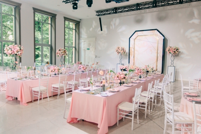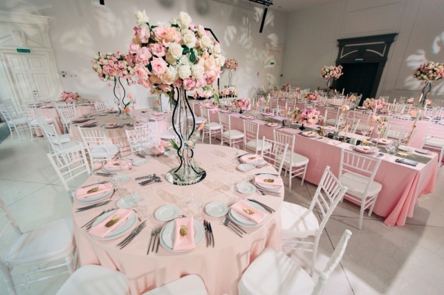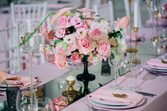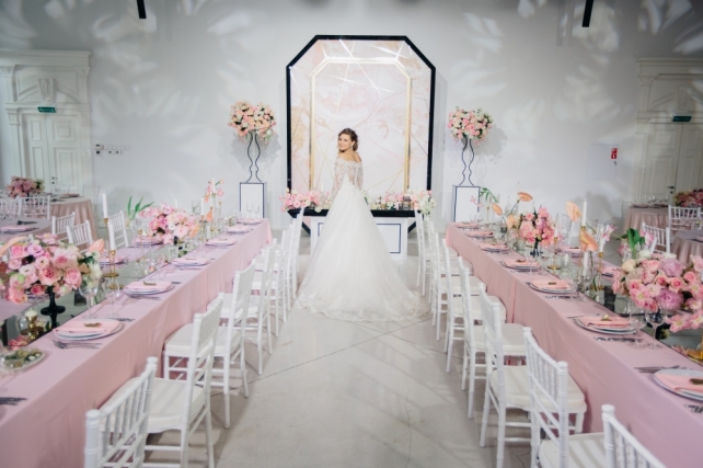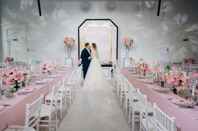 Сохранить 0 При нажатии на кнопку,статья сохранится в разделе"Закладки" в личном кабинете. Поделиться: Сохранить 0 При нажатии на кнопку,статья сохранится в разделе"Закладки" в личном кабинете. Свадьбы Восемь граней любви. Свадьба Карины и Антона. 28 марта 2018 2660 0 Цвет Розовый Стиль Классика Сезон Лето Место Санкт-Петербург Цвет Розовый Стиль Классика Сезон Лето Место Санкт-Петербург Свадебный организатор:MHoliday WEDDING Все стороны отношений двух любящих людей уникальны и выражаются по-разному, но лишь в их сочетании рождается гармония. В оформлении свадебного вечера Карины и Антона мы решили раскрыть 8 граней чувств: нежность, доверие, страсть, уважение, восхищение, забота, счастье и любовь.ДекорДекоративное оформление вечера было посвящено восьми граням чувств:Нежность была выражена в пудровых оттенках текстиляДоверие раскрыто в изящных линиях флористикиСтрасть отражена в формах антуриумаУважение подчеркнуто геометрией гранейВосхищение, как очень яркое чувство нашло себя в контрастах черного и светлых оттенковЗаботу символизировали тонкие нити, появляющиеся в разных элементах оформленияСчастье — блики зеркальных элементовА символом Любви стала наша пара, соединяя все элементы в общую картину, наполняя ее смысломМы искренне уверены в том, что декор должен быть отражением вкусов и предпочтений пары — ведь каждая история любви уникальна и прекрасна, в ней можно бесконечно черпать вдохновение! Карина и Антон стали просто находкой для всей нашей команды! Она — невероятно нежная и женственная, он — мужественный и сильный. Характеры и образы нашей пары воплотились в каждом элементе декора — строгость и лаконичность линий, а также черные акценты раскрывали мужское начало, в то время как нежная цветовая гамма и потрясающей красоты флористика подчеркивали элегантность женского.Чувство стиля пары также было очень удачно воплощено в зоне президиума — с необычными цветочными композициями в высоких, практически невесомых вазонах, дизайнерском столе и красивейшем панно на заднем плане, имитирующем драгоценный камень.Было принято решение отойти от стандартной схемы расстановки столов, скомбинировав длинные прямоугольные и круглые столы — такой прием всегда преображает пространство, делает его более интересным.Особым украшением вечера стала фотозона, выполненная в общей стилистике свадьбы — особенно выигрышно смотрелся золотой герб пары в обрамлении пышной флористики!Наша команда также не забыла и об особом освещении ужина — технической командой вечера были подготовлены гобо-проекции в виде лепестков цветов, что украшало чистый фон зала.ПрограммаБывают свадьбы, на которых не хочется прописывать плотную развлекательную программу — когда уровень душевности зашкаливает, когда всем весело и все максимально включены в процесс. И тогда достаточно теплых пожеланий и творческих сюрпризов от гостей, которые просто бесценны!Один из ключевых и самых долгожданных моментов вечера — презентация свадебного торта, который произвел настоящий фурор! Идеальное исполнение, потрясающий дизайн, ювелирная работа и невероятный вкус — в этом торте было прекрасно все! Сохранить 0 При нажатии на кнопку,фото сохранится в коллекциив личном кабинете. MHoliday WEDDING Организация свадьбы Сохранить 0 При нажатии на кнопку,фото сохранится в коллек