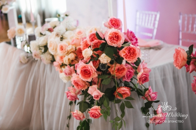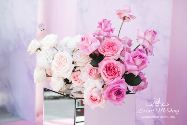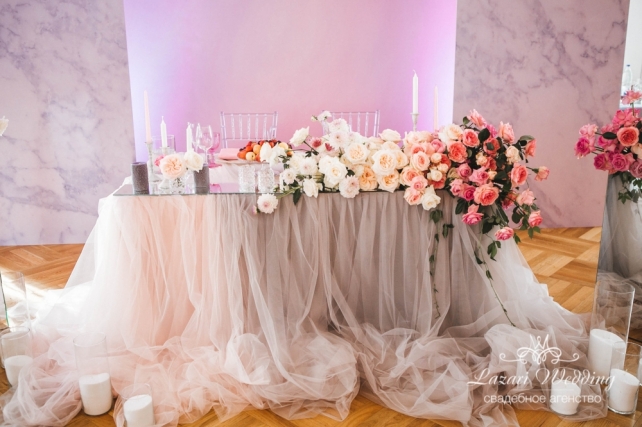 Сохранить 1 При нажатии на кнопку,статья сохранится в разделе"Закладки" в личном кабинете. Поделиться: Сохранить 1 При нажатии на кнопку,статья сохранится в разделе"Закладки" в личном кабинете. Свадьбы Мраморная нежность: летняя свадьба Кирилла и Татьяны 19 апреля 2018 3837 0 Цвет Розовый Стиль Современная Сезон Лето Место Москва Цвет Розовый Стиль Современная Сезон Лето Место Москва Свадебный организатор:Lazari Wedding Рады поделиться с вами стильной и изящной свадебной историей Кирилла и Татьяны. Этот свадебный день был действительно необычный. Наверное, утомившись от нежных классических стилей, наши молодожены для своей свадьбы взяли за основу грациозность аристократичного мрамора, разбавив его теплыми пыльно-розовыми оттенками.Утро невесты началось на 52 этаже башни Око в Москва Сити. Вид на город сверху настраивает на спокойствие, чувствуешь себя над всеми проблемами. Что и нужно для невесты в столь волнительный день. Съёмка на фоне урбанистической панорамы подчеркивала хрупкость и изящество невесты. Время прогулки и фотосессии пролетело незаметно, и настало время церемонии. К зоне регистрации вела нежная розовая ковровая дорожка в конце который, созданные как бы из цельных кусков мрамора, возвышались декоративные конструкции, обе стороны которых украшали зеркальные колонны с красивыми цветочными композициями, аналогичные композиции украшали президиум. Основой концепции был выбрал натуральный камень - мрамор, но не в его привычном цвете серо-белом, а редко встречающийся в природе розовый мрамор. Именно он подчеркивал уникальность свадебного торжества. В цветочном оформлении выбор пал на популярный «омбре». Розы переливом от темных с светлым каскадом спускались в композициях. Столы гостей украшали высокие прозрачные канделябры, что обеспечивало легкость и в то же время игру света. Танцпол украшала монограмма молодоженов, которая и была местом первого танца и выноса торта. Сам торт, из четырёх ярусов был приготовлен с четырьмя вкуснейшими начинками, чтобы гости могли попробовать многогранность вкусов нашей пары. Церемония прошла очень трогательно, а вот программа банкета была яркой, интересной и в меру насыщенной. Было все: много танцев, вкусная еда, много живого общения, трогательных слов и улыбок. Главным сюрпризом для гостей была песня в исполнении дуэта жениха и невесты. Сохранить 1 При нажатии на кнопку,фото сохранится в коллекциив личном кабинете. Lazari Wedding Организация свадьбы Сохранить 1 При нажатии на кнопку,фото сохранится в коллекциив личном кабинете. Мраморная нежность: летняя свадьба Кирилла и Татьяны Показать описание Свадебный организатор: Lazari Wedding Сохранить 1 При нажатии на кнопку,фото сохранится в коллекциив личном кабинете. Lazari Wedding Организация свадьбы Сохранить 1 При нажатии на кнопку,фото сохранится в коллекциив личном кабинете. Мраморная нежность: летняя свадьба Кирилла и Татьяны Показать описание Свадебный организатор: Lazari Wedding Сохранить 1 При нажатии на кнопку,фото сохранится в коллекциив личном кабинете. Lazari Wedding Организация свадьбы Сохранить 1 При нажатии на кнопку,фото сохранится в коллекциив личном кабинете. Мраморная нежность: летняя свадьба Кирилла и Татьяны Показать описание Свадебный организатор: Lazari Wedding Сохранить 2 При нажатии на кнопку,фото сохранится в коллекциив личном кабинете. Lazari Wed