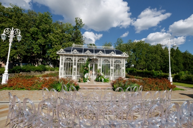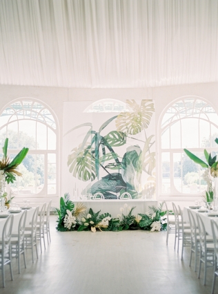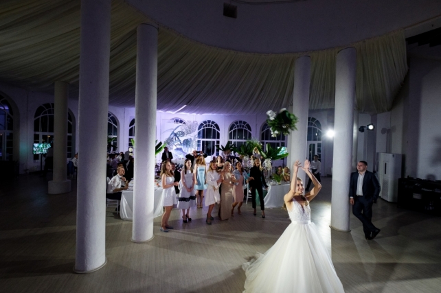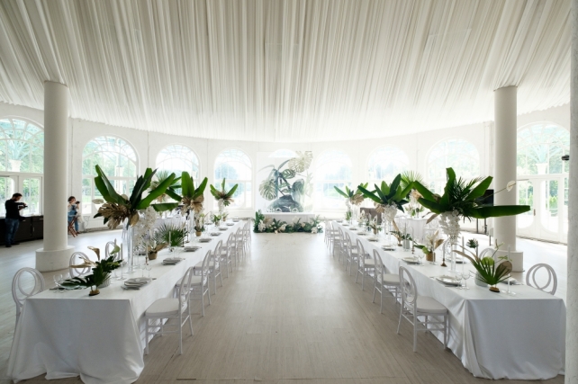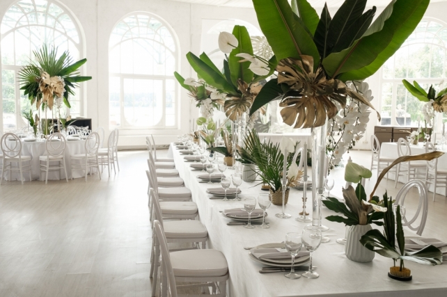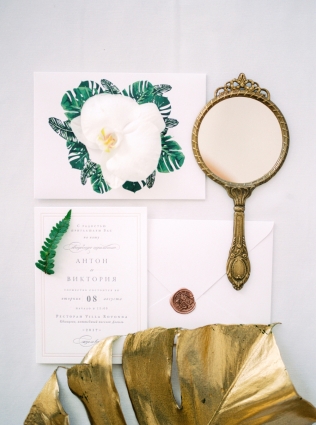 Сохранить 1 При нажатии на кнопку,статья сохранится в разделе"Закладки" в личном кабинете. Поделиться: Сохранить 1 При нажатии на кнопку,статья сохранится в разделе"Закладки" в личном кабинете. Свадьбы Стильные тропики. Свадьба Антона и Виктории. 07 мая 2018 3508 0 Цвет Зеленый Стиль Современная Сезон Лето Место Москва Цвет Зеленый Стиль Современная Сезон Лето Место Москва Свадебный организатор:Carpe Diem Декор:FLOWERBAZAR STUDIO Фотограф:Мальвина Фролова Фотограф:Алексей Малышев Видеооператор:Paramonova Movies Ведущий:Арсен Кипера Шоу-программа и Артисты:Группа "Жулики" Торт:BMB-Bakery Полиграфия:Print my dream ИДЕЯ И КОНЦЕПЦИЯАнтон и Вика – очень творческая пара. Невеста – fashion фотограф, а жених – архитектор и бизнесмен, поэтому для них нам было важно найти свежее и очень стильное решение. На создание концепции нас вдохновила любовь Антона и Вики к Майами. При этом на первой встрече они сказали, что очень хотят подчеркнуть красоту выбранной площадки, не перегружая ее декорациями и сделать это не банально. Так родилась идея сделать тропическое оформление в классическом интерьере «Виллы Ротонды». Такую смелую концепцию на данной площадке до нас никто не реализовывал.ВЫБОР ПЛОЩАДКИМестом проведения свадьбы стал ресторан "Вилла Ротонда". Поскольку в 2017 году это была одна из самых популярных площадок Москвы и Подмосковья, то нам еще больше хотелось сделать свадьбу ребят отличной от других. Решение сделать тропическое оформление в колониальном стиле оказалось очень верным и интересно смотрелось в классическом интерьере.ОФОРМЛЕНИЕРассадку гостей было решено сделать смешанной – часть гостей сидело за круглыми, а часть за прямоугольными столами. Таким образом, мы визуально удачно заполнили объемное пространство зала. Столы гостей украшали экзотические композиции с объемной листвой, которые невероятно стильно смотрелись с белым текстилем и мебелью. Праздничные акценты создавали золотые детали: вазы и отдельные листья, выкрашенные золотой матовой краской. Фоном за столом молодоженов стали красивые полотна ткани с принтами тропических листьев.Церемонию было решено проводить у беседки, визуально напоминающей оранжерею. Беседка послужила конструктивом для асимметричных тропических композиций. Важной деталью стала рассадка на церемонии – не классическая расстановка стульев по типу амфитеатра. При этом стулья были выбраны под стать беседке – прозрачные, отражающие свет солнца, они идеально дополнили картину.Для свадьбы мы создали очень интересный комплект полиграфии, который прекрасно подчеркивал стилистику свадьбы. Он, как и зал, с одной стороны был классическим и минималистичным, а, с другой, ярко выражал идею всего торжества. На конверте был изображен венок из тропических листьев, а внутри гостей ожидало классическое приглашение на плотной хлопковой бумаге и дресс-код. Карты рассадки также были оформлены в стиле конвертов – лаконичные белые карточки с изображением тропических листьев.СВАДЕБНЫЙ ДЕНЬСборы жениха и невесты было решено проводить на втором этаже Ротонды, где свет позволял делать очень красивые кадры, а декораторы оформили зону сборов невесты в тропическом стиле.Специально для съемки в коттеджном поселке, где находится ресторан, был арендован Кадиллак 1960 года, единственный экземпляр в России, который идеально вписался в концепцию ро