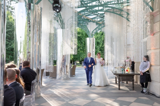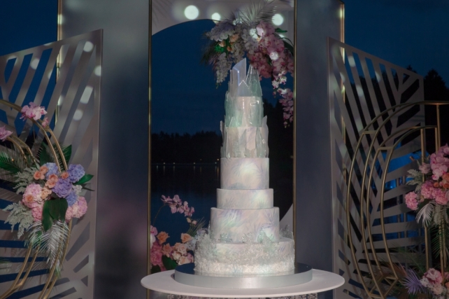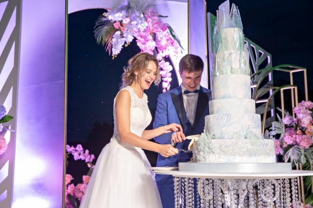 Сохранить 0 При нажатии на кнопку,статья сохранится в разделе"Закладки" в личном кабинете. Поделиться: Сохранить 0 При нажатии на кнопку,статья сохранится в разделе"Закладки" в личном кабинете. Свадьбы ICE&TROPICS. Свадьба Дмитрия и Дарьи. 11 июля 2018 3212 0 Цвет Белый Стиль Современная Сезон Лето Место Москва Цвет Белый Стиль Современная Сезон Лето Место Москва Свадебный организатор:MHoliday wedding Свадьба известного спортсмена, хоккеиста Дмитрия Вишневского и его избранницы Дарьи.Описание:Концепция Ice&Tropics появилась не случайно. Он - известный хоккеист, вся жизнь которого связана со льдом, он скромный, спокойный, рассудительный. Она - живая, веселая, настоящая, девушка искра. Именно поэтому возникла идея показать характеры наших молодоженов через тропики во льду. Необычное сочетание, не правда ли? Церемония:Пожеланием молодоженов было максимально оставить вид на красивейшее озеро в зоне церемонии. Поэтому мы использовали полупрозрачные конструкции и резные панели с узором в виде пальмового листа. Интересным решением также было превратить инициалы DD (Дарья и Дмитрий) в каркасные арт-объекты с вплетенной в них флористикой. В вечернее время зона церемонии трансформировалась под невероятной красоты вечернее шоу. Но об этом далее.Декор:В оформлении мы хотели сделать акцент на флористике. Благодаря подбору сложной цветовой гаммы цветов и сочетанию фактур и ледяных элементов, нам удалось создать гармоничную картинку. А на фоне льда цветы выглядели еще более нежными и изящными. Одним из элементов декора потолка стали полупрозрачные кубы с живыми цветами внутри, а также кубы с флористикой, как бы вырвавшейся наружу. Интересным решением также явилось оформление многослойного президиума, флористические элементы, проглядывающие сквозь полупрозрачные панели завораживали, от них невозможно было оторвать взгляд. Программа:Банкетная программа была насыщена необычными элементами и сюрпризами. Одним из сюрпризов стал первый танец молодоженов, закончившийся флешмобом с гостями, готовыми к безумным танцами уже в самом начале банкета. Поддержали музыкальное настроение и два музыкальных коллектива, одним из которых был шоу оркестр с духовыми инструментами, а второй - зажигательный кавер бэнд со всеми любимыми хитами.Вечернее шоу заслуживает отдельного внимания. Специально для него зону церемонии мы трансформировали в каток, постелив искусственный лед. Искушенной публике был представлен танец юных фигуристов, рассказавших своим танцем настоящую историю любви нашей пары. Дарья и Дмитрий познакомились будучи совсем юными, именно поэтому для финального номера мы нашли детей фигуристов, так похожих на молодоженов в детстве. Начался номер под музыку из музыкальной шкатулки, грозные мимы-кукловоды "руководили" движениями артистов, не давая им соединиться, что олицетворяло непреодолимые обстоятельства в жизни каждого человека, мешающие встретиться тем людям, которым суждено быть вместе. И только с развитием музыки в этом постановочном номере фигуристы смогли избавиться от оков, преодолев все препятствия, чтобы быть вместе. Так было и в истории нашей пары. Номер закончился фееричным фейерверком и огнепадами высотой в 10 метров. Незабываемое зрелище, которое покорило сердца молодоженов и всех гостей праздника.Здесь же при свете вечерних огней и в ат