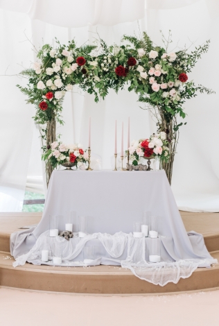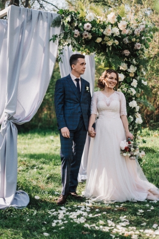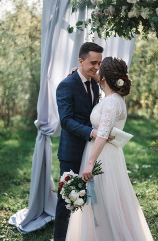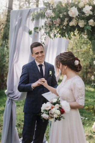 Сохранить 1 При нажатии на кнопку,статья сохранится в разделе"Закладки" в личном кабинете. Поделиться: Сохранить 1 При нажатии на кнопку,статья сохранится в разделе"Закладки" в личном кабинете. Свадьбы Свадьба Елены и Антона "Дыхание весны" 14 февраля 2019 3821 1 Цвет Зеленый Стиль Эко-стиль Сезон Весна Место Москва Цвет Зеленый Стиль Эко-стиль Сезон Весна Место Москва Декор:Florapolitika Ведущий:Сергей Рябинин Свадебный организатор:Florapolitika Свадьба Леночки и Антона для нас была запоминающейся. Во-первых, само наше знакомство с ребятами случилось на WFest. Помню, как Лена подошла и уверенно сказала: «шикарный стенд, я буду работать с вами»! Учитывая такое доверие, мы хотели свернуть для ребят горы.Кроме оформления молодые приняли решение доверить нам организацию всей свадьбы.Площадку выбрали практически сразу. Изначально ребята хотели ресторан или старинный особняк. Просмотрев с молодыми множество вариантов, в довесок решили предложить шатер недалеко от центра Москвы - и не ошиблись. Лена влюбилась в это место.И вот понеслась: переигрываем концепцию, совмещаем изысканность, весеннюю природу и дух майских праздников, а именно - шашлыки!Да-да, у ребят на велкоме были мини шашлычки на мангале, которые готовили прямо при них, а в это время бармен смешивал для гостей самые вкусные коктейли жонглируя шейкерами.Такая велком зона вызвала бурю восторга у гостей и у самих молодых.Наконец мы дошли до декора..Стилистику оформления тоже выбрали практически сразу. Лена хотела нежности, весенней легкости и немного ярких акцентов, а Антон просто хотел, чтобы любимой всё понравилось. Безумно рады, что смогли угадить обоим)Увы бюджет был ограничен, а хотелось многого... и, да ребята получили всё что хотели и даже больше!Было всё: благоухание весеннего сада, нежные марлевые раннеры на гостевых столах, ярко бордовые пионы, свечи ручной работы, антикварные вазы и подсвечники, каждая деталь оформления обладала с душой!Особенный восторг вызвал задник: два дерева выросшее за президиумом и сомкнувшие свои кроны над молодыми. Сколько ивовых ветвей ушло на его изготовление трудно сосчитать и конечно не поддаётся подсчётам труд наших флористов-декораторов, они настоящие волшебницы!В качестве комплементов гостям мы приготовили баночки с клубничным вареньем, оформленные тканевыми лоскутками в тон свадьба и шёлковыми ленточками.Каждая деталь оформления идеально сочеталась и дополняла друг друга.За атмосферу любви и веселья в зале отвечал замечательный ведущий, Сергей Рябинин, его молодые также утвердили с первой встречи. Сергей был вторым кого посмотрели и последним, они сказали друг другу Да!Пару слов об этом ведущем, всегда выезжает смотреть площадку, прорабатывает все детали до мелочей, полость проговаривает все свои действия с организаторами (что очень важно) запоминает имена всех гостей и в довесок играет на саксофоне. Очень жаль, что в прошлом сезоне отработали с ним всего две свадьбы.На протяжении всей свадьбы царила атмосфера домашнего уюта и одновременно торжественности. Никто из гостей не чувствовал себя забытым, каждый ощущал свою значимость и причастность к торжеству. А вся наша команда держалось где-то не подоплёку, но в тоже время в стороне, как незримый ангел хранитель, готовый каждую секунду оградить от всех проблем и решить любые вопросы (которые н