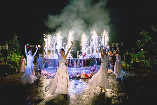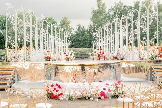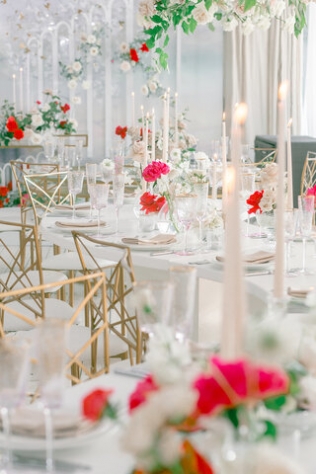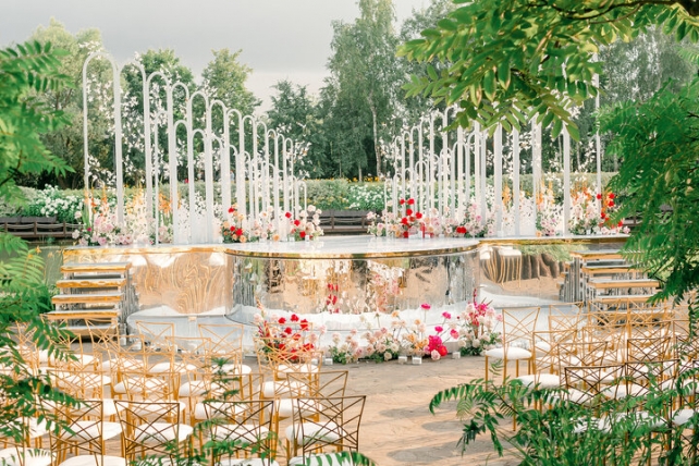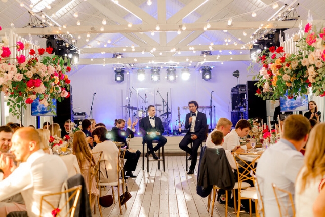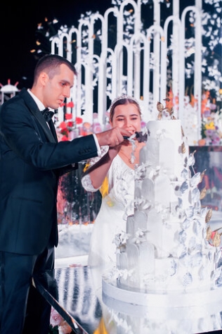 Сохранить 0 При нажатии на кнопку,статья сохранится в разделе"Закладки" в личном кабинете. Поделиться: Сохранить 0 При нажатии на кнопку,статья сохранится в разделе"Закладки" в личном кабинете. Свадьбы Свадьба Алины и Алексея. "В океане наших чувств" 08 февраля 2019 2628 0 Цвет Красный Стиль Современная Сезон Лето Место Москва Цвет Красный Стиль Современная Сезон Лето Место Москва Свадебный организатор:MHoliday wedding Невероятно, как два человека могут быть настолько разными и такими похожими одновременно. Алина и Алексей знакомы с детства. Это семейная традиция семьи невесты — определять выбор своей второй половины еще в школьные годы. Так познакомились ее бабушка с дедушкой, тетя с дядей и папа с мамой. Все они живут долго и счастливо и есть все основания полагать, что и наши молодожены проживут долгую и счастливую жизнь, будут наслаждаться ею и вспоминать свой первый семейный праздник с искренней улыбкой и теплотой!В любви человек раскрывается, окутывая пространство вокруг себя особой атмосферой. Наша пара Алина и Алексей источают настоящее счастье, заставляя улыбаться всех, кто находится рядом с ними. Мы испытали это невероятное чувство, когда они пришли к нам с просьбой помочь в организации своей свадьбы. Могли ли мы тогда подумать, насколько трогательным, нежным и душевным получится их праздник.Сборы Алины проходили размеренно, в окружении самых близких подружек. Не каждая невеста может похвастаться таким количеством искренних людей вокруг. Невеста — сама элегантность и утонченность, от ее счастливой улыбки невозможно было оторвать взгляд! В ходе создания образа было отдано предпочтение классическому платью, сшитому по специальному заказу у известного российского свадебного дизайнера Светланы Лялиной.WelcomeТолько представьте — вся территория загородного комплекса дружелюбно встречала гостей праздника, погружая с первых шагов в атмосферу приятной неги. Сама природа сделала шикарный подарок нашим молодоженам в виде прекрасной погоды. Очаровательный прудик с живой рыбой, которую можно было покормить, наблюдая, с какой благодарностью они принимают еду. За бокалом шампанского гости смогли спокойно пообщаться, ведь они все друг друга хорошо знают и не было ни одного лишнего человека. Пожалуй, эти моменты все гости еще долго будут вспоминать с особым теплом!ДекорДля Алины и Алексея мы подобрали уютную площадку с верандой, находящейся в уединенном зеленом уголке недалеко от Москвы.В рамках данной концепции мы сделали особый акцент на преображении пространства веранды, на которой проходил свадебный ужин — флористические композиции парили в невесомости, создавая ощущение легкости, световые гирлянды добавляли теплоты, а изысканная сервировка — шарма и утонченности.Особый акцент мы сделали на зоне, в которой проводилась вечерняя церемония клятв. Специально для этого события был спроектирован и выстроен подиум с настоящим водопадом. Арочные инсталляции повторяли форму волны, уходящей в разные стороны, а силуэты птиц, дополняющие общую картину, придавали ей легкости и воздушности.ПрограммаНаша пара была настроена на максимально расслабленную и неторопливую атмосферу, поэтому мы решили отказаться от плотной банкетной программы, оставив лишь уже ставшую классикой кавер-группу. Главной изюминкой вечера стали творческие сюр