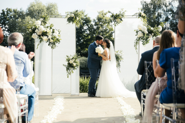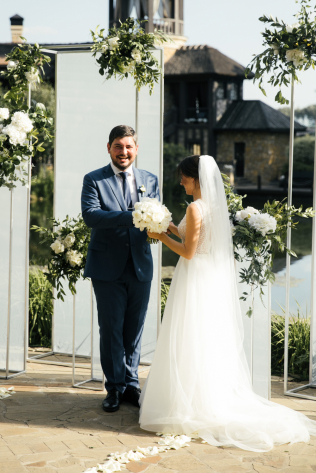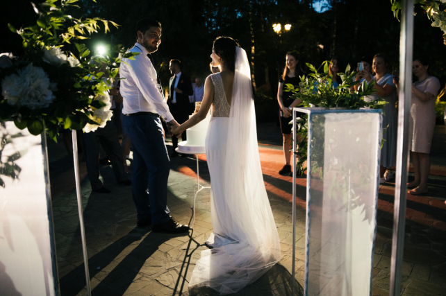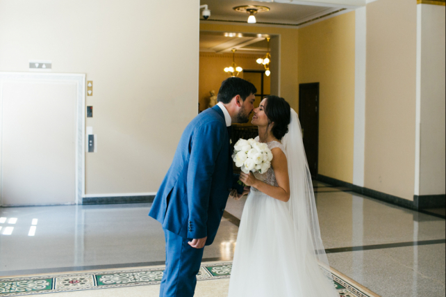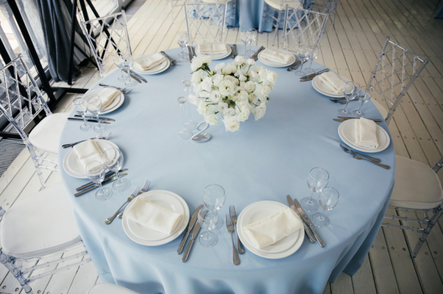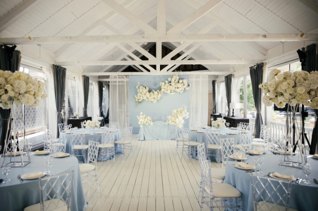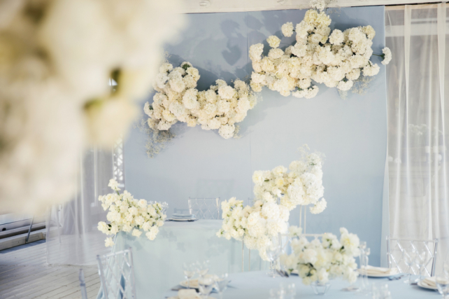 Сохранить 1 При нажатии на кнопку,статья сохранится в разделе"Закладки" в личном кабинете. Поделиться: Сохранить 1 При нажатии на кнопку,статья сохранится в разделе"Закладки" в личном кабинете. Свадьбы Свадьба Юли и Андрея. "Wacka Wacka, it's time for Africa" 17 сентября 2019 3812 0 Цвет Голубой Стиль Современная Сезон Лето Место Москва Цвет Голубой Стиль Современная Сезон Лето Место Москва Свадебный организатор:Kate & Leo Декор:Caxapdecor Фотограф:Уланов Сергей Невозможно рассказать про Юлю и Андрея, не упомянув их историю любви!Когда-то давно Андрей, еще даже не помышляющий о работе за границей загадал - "пусть следующая песня, которую я услышу, расскажет мне о том, где я встречу свою любимую", заиграла песня Шакиры "Wacka Wacka, it's time for Africa", Андрей тогда подумал - "какая чушь, где я, а где Африка..."Юля об Андрее узнала задолго до первой встречи. Когда Юля проходила собеседование в компанию, в которую в то же время проходил собеседование и Андрей, который учился в том же университете, что и Юля в Нижнем Новгороде. Но в том году у Юли не получилось с поездкой в Африку и она поехала туда годом позднее в 2014, даже несмотря на то, что в этот момент в Гвинее была эпидемия Эболы и все отговаривали ее от поездки.Предложение Андрей сделал в отпуске в Чикаго на Новогоднюю ночь, забронировав столик в одном из самых лучших ресторанов Чикаго на 94 этаже с панорамным видом на город. Но с погодой в тот день им не очень повезло и видимость была нулевая, ребята сидели буквально в облаках. После встречи Нового года Андрей сделал Юле новогодний подарок, а спустя несколько минут сказал, что у него есть еще один подарок и достал коробочку, встал на колено и сделал предложение! И за пару минут после этого сюрприза все облака рассеялись и наконец открылся потрясающий вид на весь город и на озеро Мичиган. Это было очень неожиданно и очень красиво!Подготовка к свадьбе проходила дистанционно, так как ребята живут и работают в Сенегале. Одним из самых важных желаний у Юля и Андрея было найти открытую, просторную площадку у воды, с красивым ландшафтом, в которую идеально впишется легкая облачная концепция.Желание было исполнено моментально, мы нашли идеальное площадку с панорамными окнами по их пожеланию. Нашей задачей было не перегружать декор излишними деталями, а аккуратно и лаконично вписать его в существующий интерьер ресторана. Флористическое наполнение мы тщательно продумывали на протяжении нескольких месяцев, в первую очередь отталкиваясь от предпочтений Юли. Мы оформили свадьбу в бело-голубых пастельных оттенках. Для банкетного зала были выбраны круглые столы, которые были украшены низкими и высокими цветочными композициями, гармонирующими с большой композицией из белоснежных цветов в форме облака над столом пары.Зона выездной регистрации была выполнена из шести прямоугольных фигур, на которых повторялся узор с президиума и с основных банкетных столов, а дорожка к зоне церемонии была украшены лепестками белых роз, что создавало общую атмосферу легкости и свободы. За ночь до свадьбы Юля заселилась в отель, в просторный панорамный номер с видом на центр Москвы, где в приятном волнении вдали друг от друга они написали клятвы, и зачитали их уже на выездной церемонии перед самыми близкими людьми не из самых близких городов Москвы.После окончания церемонии все переместились в зал, где уже в