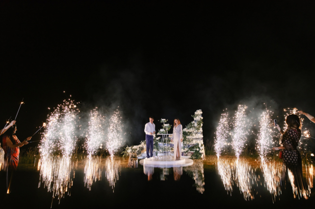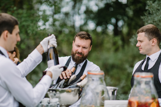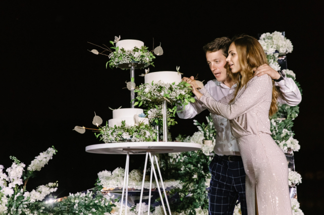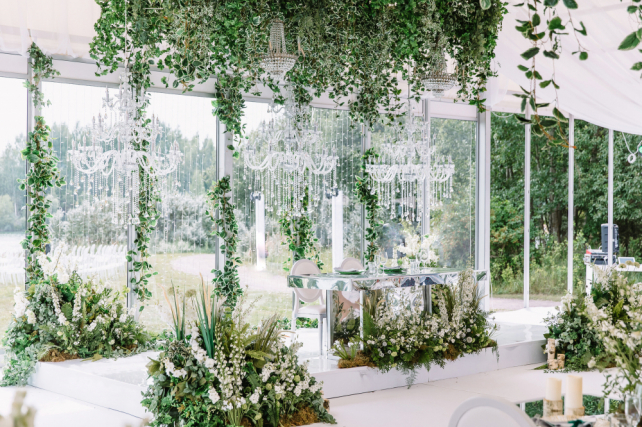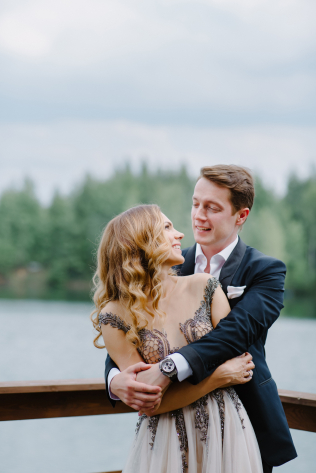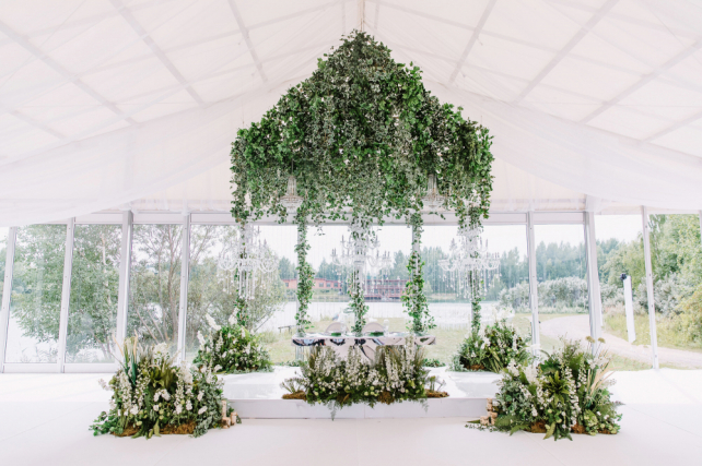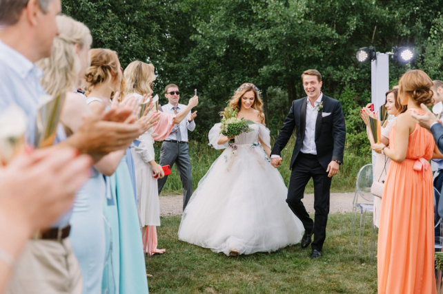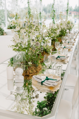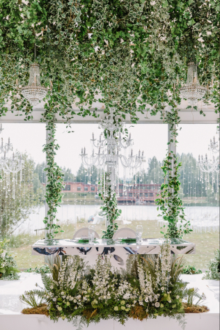 Сохранить 0 При нажатии на кнопку,статья сохранится в разделе"Закладки" в личном кабинете. Поделиться: Сохранить 0 При нажатии на кнопку,статья сохранится в разделе"Закладки" в личном кабинете. Свадьбы Свадьба Натальи и Павла. "Любовь, похожая на сон" 06 ноября 2019 3028 0 Цвет Зеленый Стиль Современная Сезон Лето Место Москва Цвет Зеленый Стиль Современная Сезон Лето Место Москва Фотограф:Слава Семенов Видеооператор:Михаил Матыженко Ведущий:Сократилин Дмитрий Флорист:White Decor Свадебный организатор:Студия Ольги Купцовой Молодые, яркие, красивые, успешные, а самое главное – счастливые! Именно такие Паша и Наташа. От их совместной энергии не только зажигаются звезды на небе, но и солнце может светить ярче! Паша и Наташа хотели масштабный веселый праздник, но при этом полностью лишенный вычурности и пафоса. Они хотели сделать его для каждого гостя особенным. Впрочем, как и всегда, все свадьбы, которые планирует наша студия отражают отношения внутри любящей пары и отношения пары к своим друзьям и близким. Локацией свадьбы было решено выбрать любимое место отдыха Паши и Наташи – загородный клуб «Лисья нора», ведь именно здесь у ребят было множество счастливых моментов. Визуальная концепция свадьбы совместно со студией декора White Decor рождалась в несколько этапов. Мы перебрали множество концепций и элементов декора пока не отсекли все лишнее и не нашли «свое» то, что было бы созвучно для Паши и Наташи. С одной стороны, хотелось свежести и природных образов, так как само расположение площадки на зеленой территории и близость воды обуславливают этот визуальный ряд. Тем не менее, точно не хотелось преобладания стиля «рустик». Нам нужно было подчеркнуть торжественность и масштаб события. Повезло, что шатер для свадебного ужина остеклен панорамными окнами по периметру, что придает пространству воздушность и ощущение близости природы. Мы выбрали два лаконичных цвета для палитры оформления: чистый и светлый белый и благоухающий летним зноем зеленый. Для придания изысканности и изящности декору были использованы глянцевые и зеркальные поверхности, хрустальные люстры. Зона церемонии также поддерживала всю визуальную концепцию: зеркальная полукруглая конструкция, в которой отражались зелень и вода, прозрачные невесомые стулья. За время свадебного дня Наташи и Паша несколько раз сменили свои наряды. У Наташи было три образа: дневной лаконичный для прогулки, образ лесной нимфы в пышном платье, красиво открывающим плечи для церемонии и искрящееся вечернее платье для завершающей части праздника. Паша также сменил во второй части вечера строгий костюм на более свободные клетчатые брюки и кеды. Наташа очень творческий и увлекающийся человек. Самые ее страстные увлечения – это дизайн, мода и парфюмерия. Поэтому для гостей был организован парфюмерный мастер-класс по созданию собственного аромата. Паша и Наташа очень любят веселье и шутки. Приглашением на свадьбу стал ироничный видеоролик. Но ребята решили не останавливаться на этом, а пойти еще дальше и разыграть гостей на самой свадьбе. Во время церемонии жених и невеста появились на лодке на озере, и в самый ответственный момент оба рухнули в воду. Конечно же, все гости не сразу поняли, что это шутка, но через мгновение «настоящие» Паша и Наташа уже весело вместе шагали к зоне церемонии, которую 
