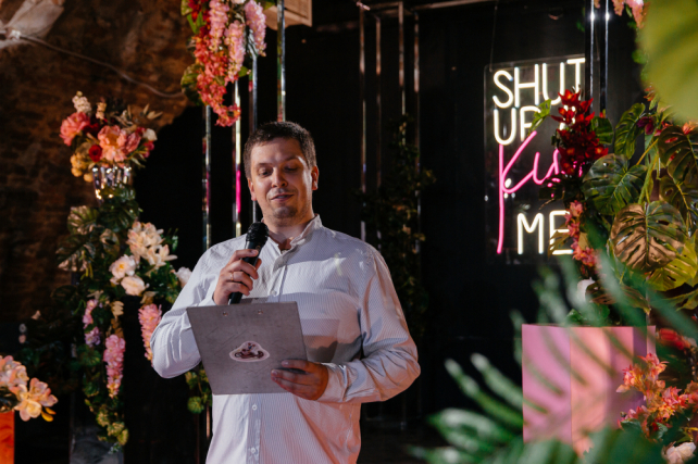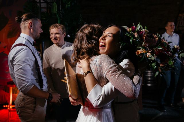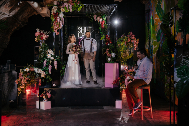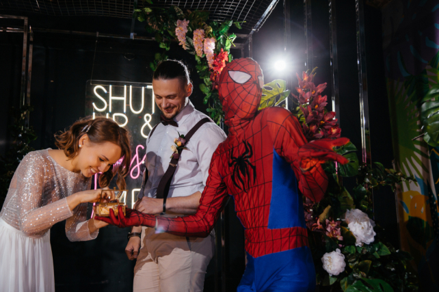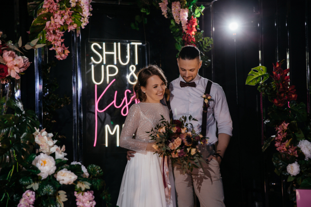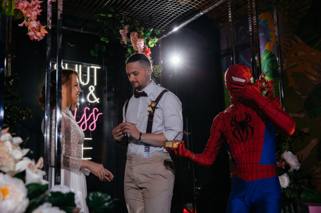 Сохранить 2 При нажатии на кнопку,статья сохранится в разделе"Закладки" в личном кабинете. Поделиться: Сохранить 2 При нажатии на кнопку,статья сохранится в разделе"Закладки" в личном кабинете. Фотопроекты «Shut up and kiss me»! 22 января 2020 2597 0 Концепция:Skazka Project «Помню, мне снились блестки, пайетки, цветы. Ни малейшего понимания как это должно быть, где, но, разумеется, все должно было быть феерично и необычно в самом прямом смысле этого слова»… С таким набором пожеланий, обратилась к нам невеста Кристина, а точнее ее подруга, которая после своей свадьбы, организованной нами, понимала, что без нас никак! Произошло главное, как говорится, звезды совпали и сама Кристина, ее подруга, а затем и жених загорелись от предложенных нами идей. И началась подготовка к проекту, который не оставил равнодушным никого, кто был к нему причастен.Одной из главных наших задач, совместно с парой, было донесение нового видения на процесс проведения свадьбы, ведь большинство гостей привыкло к более классическому варианту: регистрация в ЗАГСе, богемный автомобиль для молодоженов, банкет в ресторане и т.п. И мы с этой задачей справились на 100 процентов!Ребята до последнего не знали окончательный вариант декора, так как на подготовку у нас было меньше месяца, а Кристина со Стасом «жили» на работе, и придуманная шутка «свадьба по Whatsapp» была вовсе не шуткой, если вы понимаете, о чем мы. Но полностью доверившись нам, жених с невестой, конечно же, не прогадали. К гостям Стас и Кристина выезжали на мощном байке, что смотрелось очень драйвово, а на зоне welcome, гостей, помимо бокалов с шампанским, ждали еще и бутылочки с пивом (мужская компания была очеень довольна), на закуску мы оставили чипсики, ну какое пиво без чипсов?! Все присутствующие могли развлечь себя игрой в настольный теннис или покидать мяч в баскетбольное кольцо, кто-то даже совмещал. Отдельное умиление вызывала самоед Коди, наряженная в юбку-пачку, ей мы посвятили предыдущую статью.Но самое главное, угадайте, кто во время выездной регистрации Стаса и Кристины выносил им обручальные кольца? 1,2,3… Человек-паук! Это было настолько зрелищно и полностью unusual! Несмотря на все описанное, свадьба в формате вечеринки вышла очень гармоничной и стильной, где мы продумали все до мелочей. Получилась свадьба, которая исполнила для каждого что-то свое: самоед для фотографов, человек-паук для видеографа, новый формат для организаторов, отдых для родителей, яркое событие для гостей, свадьба мечты для невесты, мотоцикл для жениха.Не бойтесь фантазировать, креативить, соединять ваши интересы и воплощать их в реальность! Сохранить 0 При нажатии на кнопку,фото сохранится в коллекциив личном кабинете. Skazka Project Организация свадьбы Сохранить 0 При нажатии на кнопку,фото сохранится в коллекциив личном кабинете. «Shut up and kiss me»! Показать описание Концепция: Skazka Project Сохранить 0 При нажатии на кнопку,фото сохранится в коллекциив личном кабинете. Skazka Project Организация свадьбы Сохранить 0 При нажатии на кнопку,фото сохранится в коллекциив личном кабинете. «Shut up and kiss me»! Показать описание Концепция: Skazka Project Сохранить 0 При нажатии на кнопку,фото сохранится в коллекциив личном кабинете. Skazka Project Организация свадьбы Сохранить 0 При нажатии на кнопку,фото сохранится в коллекциив личном кабинете. «Shut up and kiss me»! Показать описание Концепция: Skazka Project Сохран