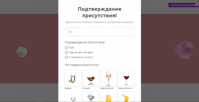 Акция! Скидка на сайт-приглашение 1500 руб! Блоги 20 августа 2020 938 0 Web-invite, Полиграфия и детали декора Сохранить 0 Поделиться: Сохранить 0 До 31 августа цена на сайт-приглашение на свадьбу Premium 1 всего 2000 р, вместо 3500 р. Ваша экономия - 1500 рублей!Приятный дизайн с анимацией стильно смотрится на любом устройстве, от смартфона до ноутбука.Всего за 2000 руб, Вы получаете полноценный свадебный сайт, в котором можете рассказать гостям свою историю, о себе, как Вы познакомились, как Вы сошлись)Также показать свою любимые моменты в фотографиях или видео Love story.Кстати, любой блок, который Вам не нужен, можно убрать! Или добавить недостающий блок с информацией!Расскажите гостям как будет проходить Ваш свадебный день, указав расписание с адресами мест, которые Вы будете посещать!Самое удобное - это подтверждение присутствия гостей и ответы на вопросы: кто будет присутствовать один или придет с парой, кто что предпочитает пить или есть, кому нужен трансфер, а кто будет на машине. Любые вопросы, какие захотите.А ответы и подтверждение придут Вам на email или в Telegram. Очень удобно, не правда ли?!Также в этом шаблоне есть блоки контакты с прямой ссылкой на мессенджер или соц.сеть, пожелания гостям о подарках! И блок с ссылкой на будущий фотоотчет со свадьбы!Срок изготовления этого сайта - от 1 часа!Подробнее ознакомиться с макетом и заказать сайт, Вы можете по ссылке: сайт-приглашение на свадьбу Premium 1С наступающим праздником!)Ваш web-invite.ru Web-invite, Полиграфия и детали декора Сохранить 0 Поделиться: Сохранить 0 Читайте также Сайт-приглашение на день рождения! Сайт-приглашение на свадьбу! Современные приглашения или как удивить гостей и сэкономить кучу времени! теги приглашение на свадьбу | онлайн-приглашение | сайт-приглашение | пригласительные | свадебное приглашение Комментарии (0) Отправляя заявку Вы автоматически подтверждаете согласие на обработку персональных данных согласно политики конфиденциальности