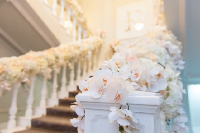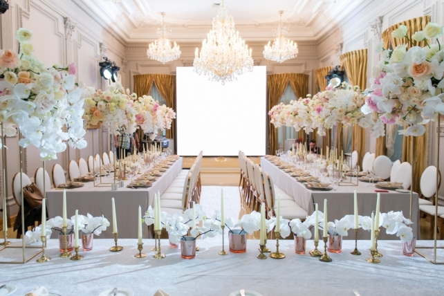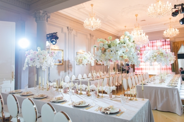 Классическое оформление свадьбы в частном особняке Блоги 15 июня 2017 3537 0 Fleurage Decor, Декор свадьбы Сохранить 0 Поделиться: Сохранить 0 Свадебный сезон-2017 мы открыли оформлением свадебного вечера в частном особняке. Классический стиль оформления банкетного зала и парадной лестницы был предопределён и задан интерьерами особняка. Нам было важно подчеркнуть убранство самого особняка, поэтому во флористике была выбрана белая цветовая гамма с розовыми и кремовыми оттенками.Wedding decor in private mansion from Fleurage Decor on Vimeo.Перила парадной лестницы были украшены цветочными гирляндами из гортензий, роз и орхидей. На верхней площадке лестницы мы разместили консоли и вазоны с цветочными композициями, а на стене повесили огромное панно с объемной светящейся монограммой молодоженов. Лестница служила и зоной церемонии, и фотозоной для молодоженов и гостей.В банкетном зале мы постелили декоративный пол глянцевого бежевого цвета, т.к. нам важно было сохранить старинный паркет особняка. Столы были расставлены в форме буквы П - два боковых стола и президиум. Для посадки гостей были выбраны очень популярные сейчас стулья из белой кожи с золотой отделкой.Текстиль для банкетных столов шили на заказ, тщательно подбирая узор и оттенок. Для каждого гостя была сделана персональная сервировка: подстановочная тарелка медного цвета, комплект сервировочных тарелок необычной формы, золотые приборы, комплект бокалов с золотой гравировкой и банкетная салфетка с кольцом.Цветочные композиции были собраны на высоких металлических консолях. В составе композиций было около 10 сортов роз, гортензии и большое количество живых орхидей, а диаметр композиций был более 100 см.Вдоль центра столов мы также разместили композиции из орхидей в стеклянных стаканчиках с медным напылением и антикварные латунные подсвечники со свечами.Монтаж на площадке шел 28 часов, включая работу ночью (не считая подготовительных работ в студии в течение трех суток), а в процессе монтажа было задействовано более 25 человек, из которых 12 человек- флористы-декораторы!!! Ну а подготовка самого проекта с момента поступления заявки заняла у нас меньше двух недель.Мы гордимся грамотно спланированной и четко организованной работой нашей команды, иначе в столь сжатые сроки мы не смогли бы реализовать такой масштабный проект!Фотограф - Таня MintОрганизатор - MHoliday-wedding Fleurage Decor, Декор свадьбы Сохранить 0 Поделиться: Сохранить 0 Читайте также Дизайн-проект: вот так мы работаем над подготовкой каждого мероприятия Backstage c монтажа в ресторане «Шампань» теги свадьба | особняк | лестница | парадная | монограмма | инициалы | розы | орхидеи | гортензия | сервировка Комментарии (0) Отправляя заявку Вы автоматически подтверждаете согласие на обработку персональных данных согласно политики конфиденциальности