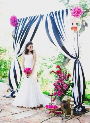 Черный цвет и свадьба: смелость и нонконформизм Блоги 05 декабря 2017 2777 2 Alma Deco, Декор свадьбы Сохранить 0 Поделиться: Сохранить 0 «В черном и белом цветах есть идеальная гармония. Их красота абсолютна». Коко Шанель «Сорок лет понадобилось мне, чтобы открыть: черный — король всех цветов». Пьер Огюст Ренуар Свадьба – одно из важных событий в жизни каждого человека. Женского пола - особенно.) Для кого-то она – шанс воплотить детские мечты, примерить и побывать, пусть и на один день, в роли сказочной принцессы из старых, добрых, диснеевских…Хотя, признаемся честно, от таких образов уже давно и не слабо подташнивает, и, будем надеяться, что поколение «взрощенных-на-старых-добрых» уже или переварило, или однажды-таки примерило образ и закрыло этот гештальт. Постмиллениалам в плане концептуального выбора проще всего – их зачастую не сдерживают стереотипы, свобода самовыражения носит не бунтарский характер, а показывает лишь собственные ценности, добавляя изрядную долю иронии, в том числе само-. Плюс повсеместный постмодернизм с его пропагандой отказа от универсальности, иерархии и возведения в Абсолют каких-либо ценностей, в т.ч. эстетических, с единственной, непререкаемой и ничем не ограниченной свободой. Собственного говоря, к чему мы все это? К тому, что готовясь к такому важному празднику, некоторые невесты (они есть, мы верим!), могу позволить себе свободу и в выборе основополагающей палитры. Поговорим о, пожалуй, самом смелом ее варианте – черном цвете. Вообще, черный цвет изначально получил свою популярность среди модельеров и дизайнеров как раз благодаря тому, что символизировал собой нарушение запретов. Впоследствии, он полюбился многим благодаря своей графичности, возможностью как никакой другой подчеркивать форму и являться прекрасным основой для любого цветового акцента. Для многих он ассоциируется со скорбью и смирением, для многих он – любимый – воплощение стиля, роскоши и изящества. Итак, для начала покажем вам черный цвет в качестве небольших акцентов. Это, в свою очередь, позволит включить-таки его в палитру (пусть и не в качестве основы) и при этом остаться с менее либеральными родственниками в дружеских отношениях.)) Белый в качестве основного с небольшими черными акцентами – извечная и непреклонная классика:Так любимый многими стиль ар-деко сложно представить, так или иначе, без черного цвета:В комбинации белого и черного хотим предостеречь от достаточно распространённой ошибки одновременного использования этих двух цветов в равных пропорциях. Получается «зебра», которая берет на себя все внимание, от нее быстро устают глаза и остальные предметы декора (да и люди, что уж там), просто не воспринимаются:Обязательно какой-то из цветов должен быть основным. И тогда от тех же полосок не рябит в глазах и они не привлекают к себе слишком много внимания:А вот вариант противоположный первому – «сгущаем краски» и теперь черный выступает в качестве основы. При этом не отказываемся и от белого! Еще одно прочтение классической палитры. (Да, и родственники тоже пока могут быть спокойны))) Надеемся, те, кто читают эти строки с нетерпением ждут еще более смелых решений. И мы вас не разочаруем! Уже поддались «черной магии» такие привычные всем продукты, как мороженое, хлеб, сыр (ну и бургеры, куда ж без них), и пр., а словосочетание «чер