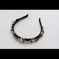"Очарование ночи"- красивый ободок с агатом, барочным жемчугом, натуральным жемчугом, белым опалом и черной шпинелью.