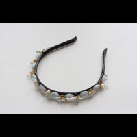 "Аквамарин"- ободок с камнями амазонита, аквамарина, жемчуга с добавлением украшения из стекла