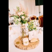 свадьба в стиле эко-рустик с бирюзовыми акцентами, номер стола и композиция в эко-стиле