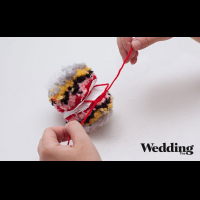 Детали для необычной свадьбы: программа торжества и помпоны для гостей, помпон перевязать посередине