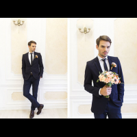 Зимняя свадьба: тёплое и уютное оформление, образ жениха, темно-синий костюм