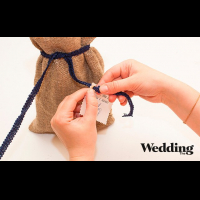 завязать мешок, прикрепить тесьмой этикетку