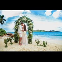 Свадьба на Сейшелах, церемония бракосочетания, молодожёны около арки