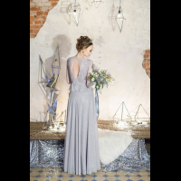 Ледяная геометрия: свадебная фотосессия в студии, серое платье невесты, букет
