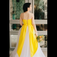 яркая свадьба с совами, платье невесты